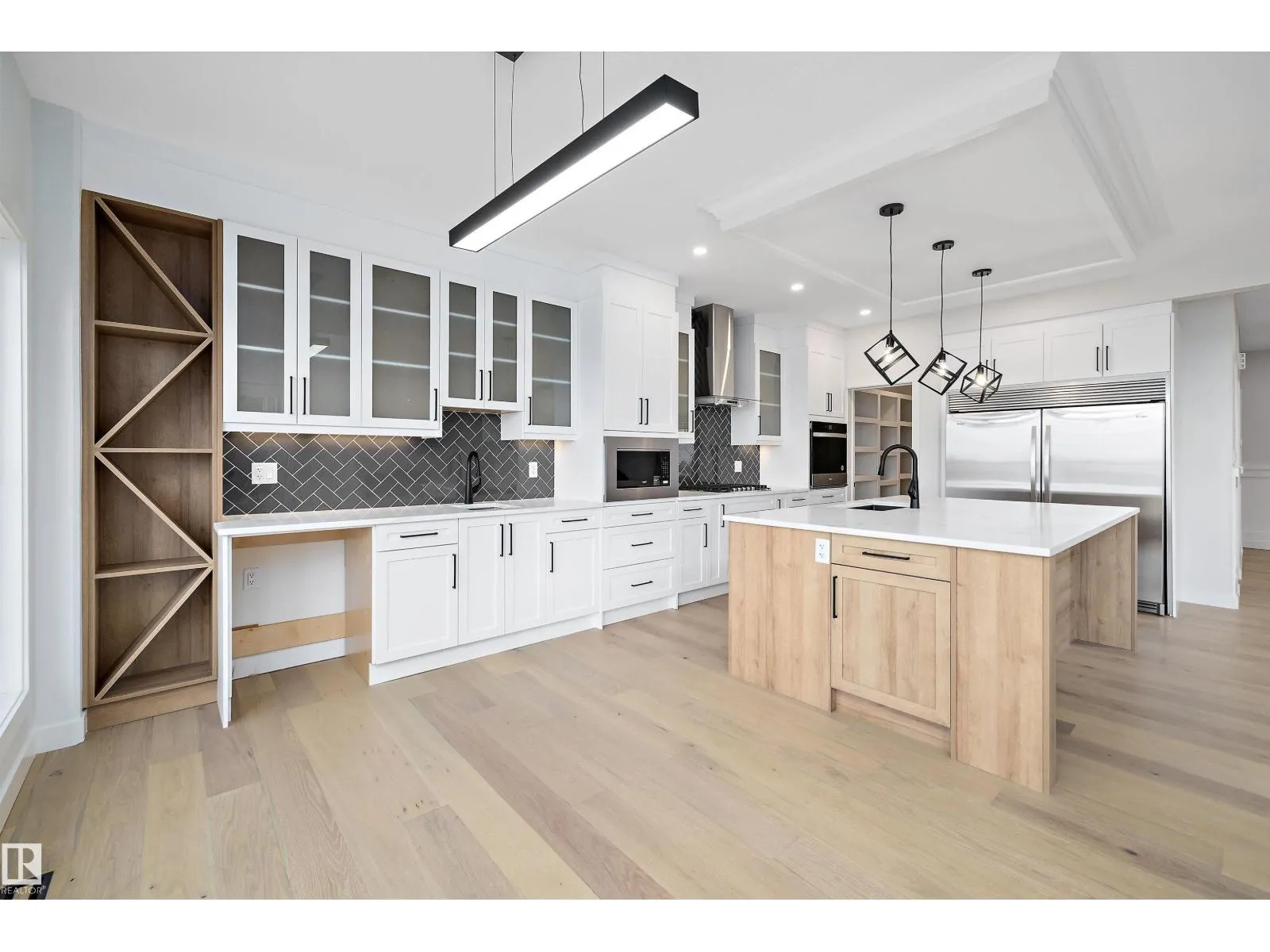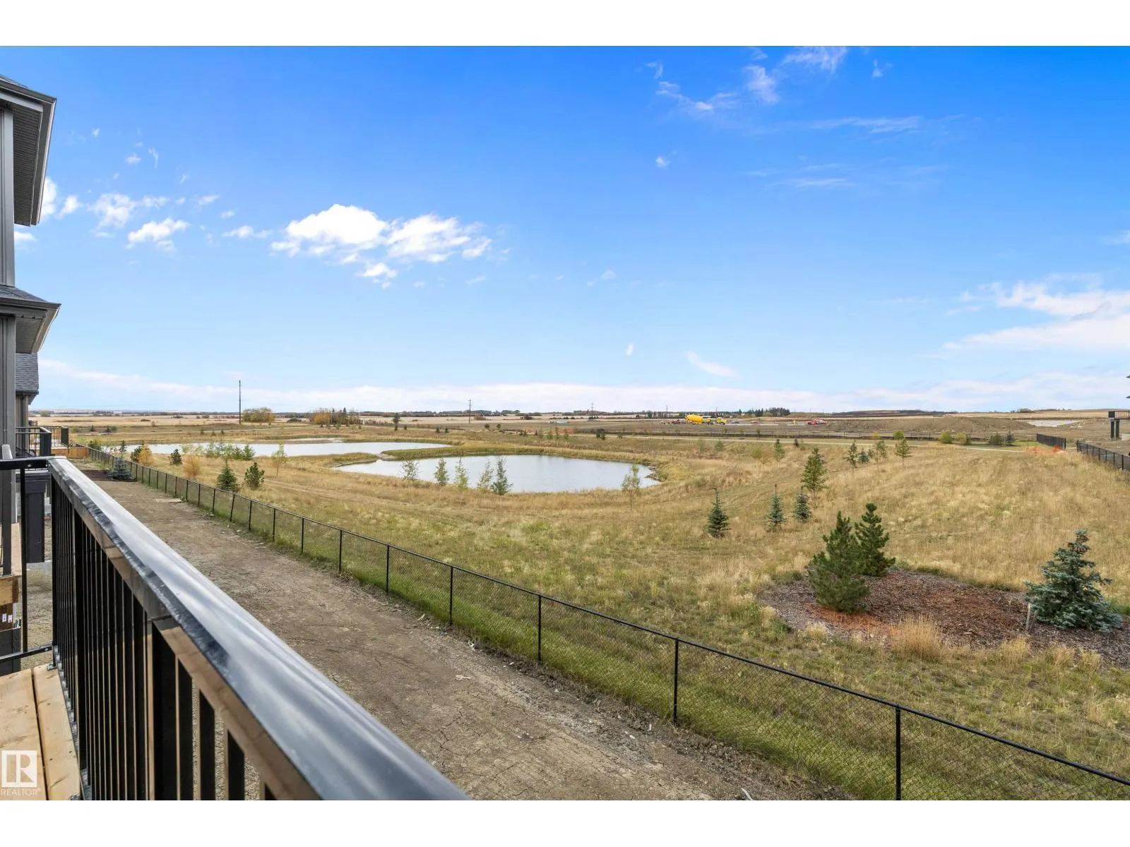 Location, Location, Location! Welcome to this brand new WALKOUT BACKING ON TO THE POND, almost 2400 SQFT 2 storey New Castle 1B model by award winning Blackstone Homes in Chérot St. Albert. This home won the best home with BILD 2023. Upon entering, you will be welcomed by nice foyer leading to a much needed den, mudroom with built ins & walk through pantry leading to chef dream kitchen offering built in appliances with fridge/freezer combo & huge island. Dining area with wet bar. Great room offers 18 feet open to below ceiling with linear fireplace finished with wood/tile & 3D ceiling. The 2nd floor offers 3 good size bedrooms, 2 baths, bonus room. Master bedroom is huge with beautiful spa like ensuite offering double sinks, shower & freestanding tub, huge WIC. Other features -9' main/basement ceiling, MDF shelving, Maple railing, Black plumbing/Lighting fixtures, upgraded quartz, rear deck and New Home Warranty. Great location - Easy access to Ray Gibbons Dr., close to shopping & playground (id:27476)