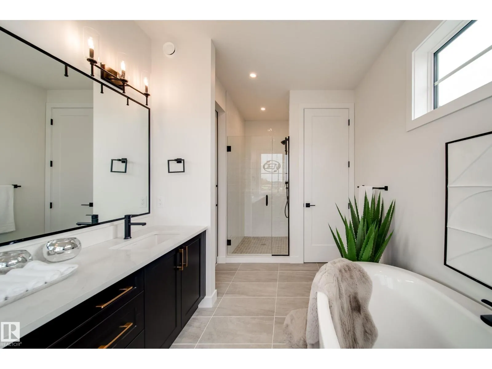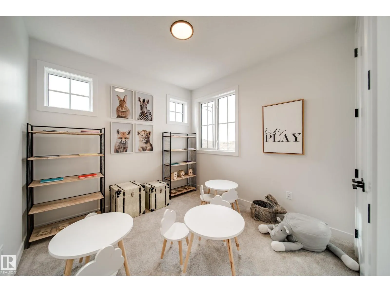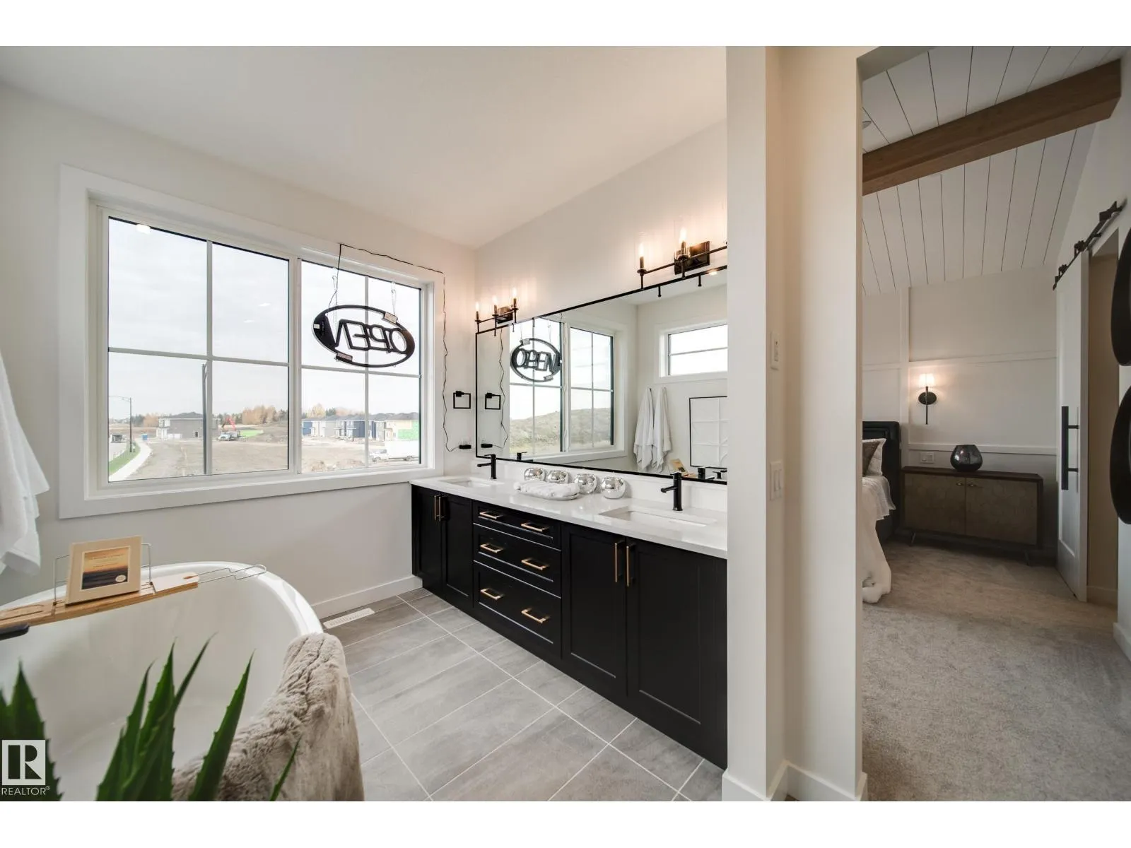 Welcome to The Vantablack by AWARD WINNING builder Justin Gray Homes, perfectly set on a 30â pocket cul-de-sac lot in Cherot. This over 2500 sqft UPGRADED masterpiece blends luxury & functionality in a Modern Farmhouse colour palette by CM Interiors, showcasing sleek black cabinetry & timeless Carrera QUARTZ counters. The open to below great rm fills the home w/natural light, complemented by 9â ceilings, 8â doors, HARDWOOD floors, & a cozy GAS fireplace. An oversized dbl garage leads to a mudrm w/custom MDF built-ins, connecting to a walkthru pantry w/JG's signature archways,to a chef inspired kitchen w/huge island, & premium DOVETAIL cabinetry. A bright den & 1/2 bath complete the main. Upstairs features 3 spacious bdrms, incl. a dreamy primary retreat w/VAULTED ceilings, panelled feat. wall, spa-inspired 5 pc ensuite & massive WIC w/DIRECT access to laundry. Steps to parks,& near future schools & rec center - where luxury, comfort & craftsmanship meet. Photos of similar model&layout/finishes may vary. (id:27476)