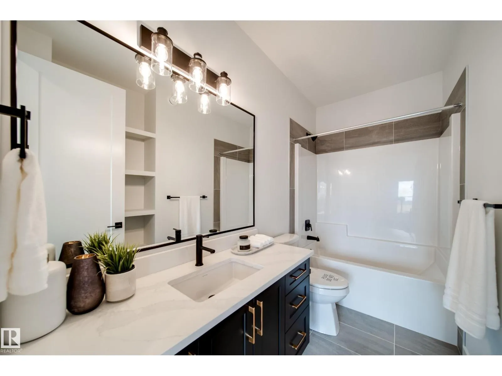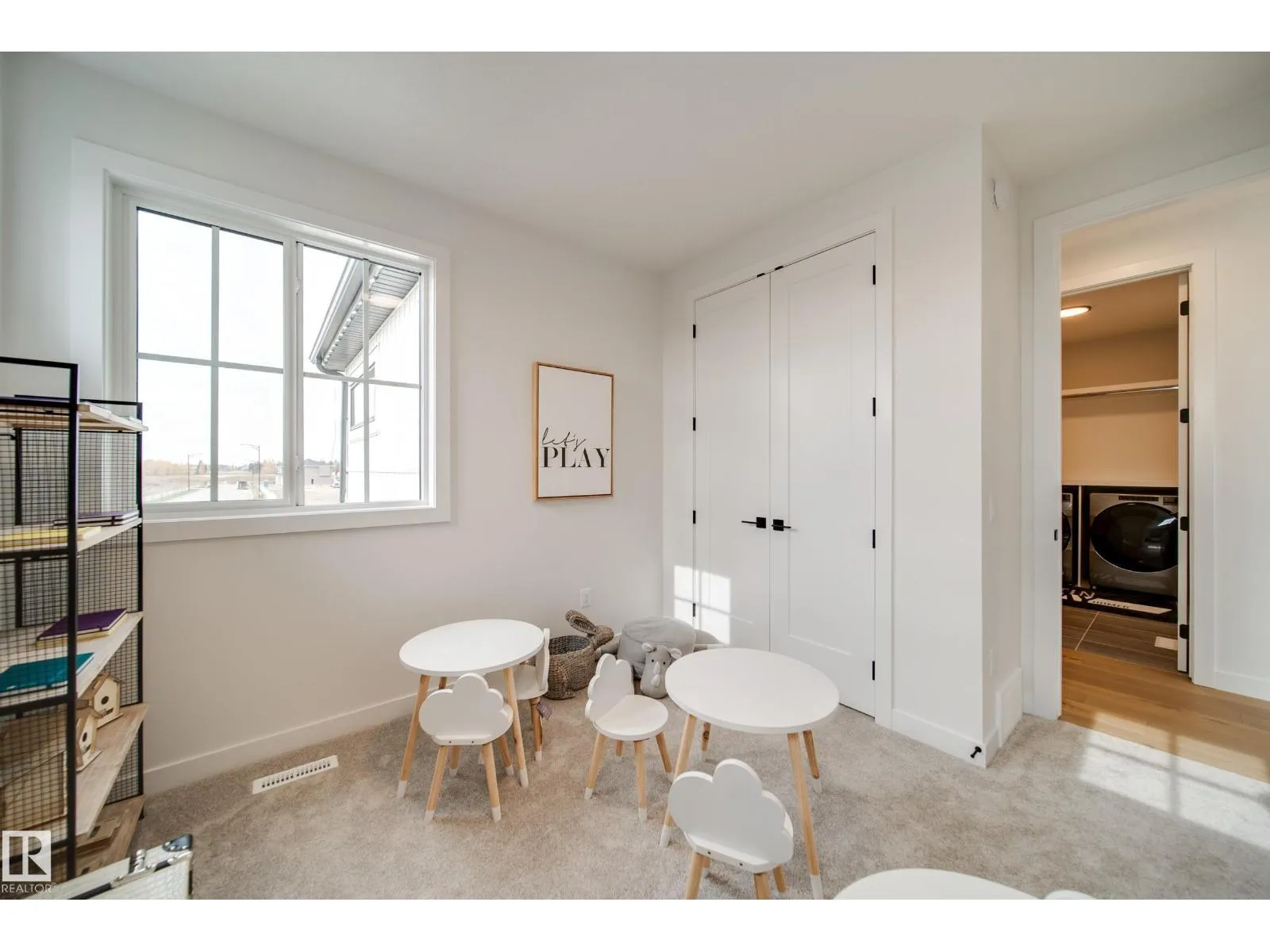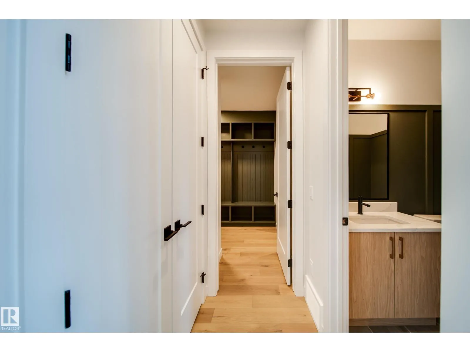 Welcome to The Vantablack by AWARD WINNING builder Justin Gray Homes, perfectly set on a 30â pocket cul-de-sac lot in Cherot. This over 2500 sqft UPGRADED masterpiece blends luxury & functionality in a Modern Farmhouse colour palette by CM Interiors, showcasing sleek black cabinetry & timeless Carrera QUARTZ counters. The open to below great rm fills the home w/natural light, complemented by 9â ceilings, 8â doors, HARDWOOD floors, & a cozy GAS fireplace. An oversized dbl garage leads to a mudrm w/custom MDF built-ins, connecting to a walkthru pantry w/JG's signature archways,to a chef inspired kitchen w/huge island, & premium DOVETAIL cabinetry. A bright den & 1/2 bath complete the main. Upstairs features 3 spacious bdrms, incl. a dreamy primary retreat w/VAULTED ceilings, panelled feat. wall, spa-inspired 5 pc ensuite & massive WIC w/DIRECT access to laundry. Steps to parks,& near future schools & rec center - where luxury, comfort & craftsmanship meet. Photos of similar model&layout/finishes may vary. (id:27476)