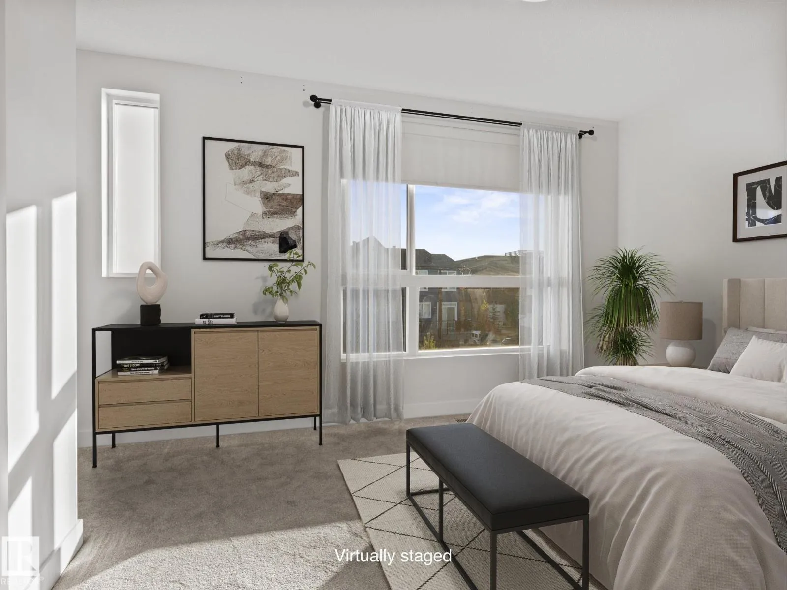 Welcome to this nearly NEW townhome in the beautiful Jensen Lakes community of St. Albert! Enjoy MAINTENANCE-FREE living just steps from the BEACH, parks, trails, dining, and theatre. This STYLISH home offers an open-concept layout with 2 bedrooms and 2.5 modern bathrooms. NATURAL LIGHT pours in through large windows, creating a warm, welcoming space for entertaining or relaxing. The SLEEK kitchen features white cabinetry, quartz countertops with a breakfast bar, and stainless-steel appliances. It flows seamlessly into the SPACIOUS living and dining areas and opens to a CHARMING upper deck. Upstairs, you'll find 2 PRIMARY SUITESâeach with its own ensuite and closetâplus a convenient laundry area. The ground level includes a MASSIVE tandem garage, utility space, and access to a fenced yard and green space. Whether you're starting out or downsizing, this home is move-in ready, low maintenance, and ideally locatedâit truly rates a perfect 10/10! (id:27476)