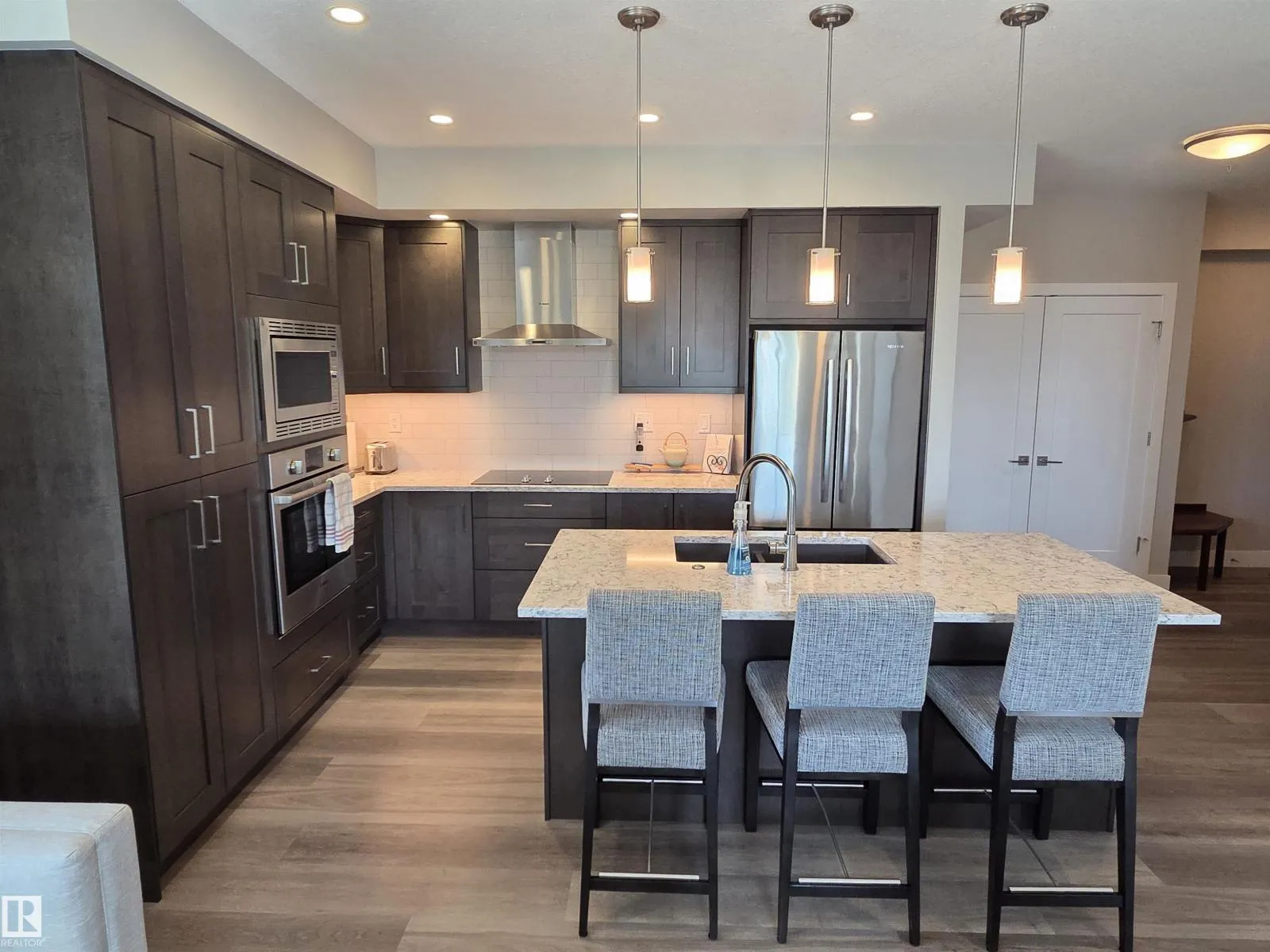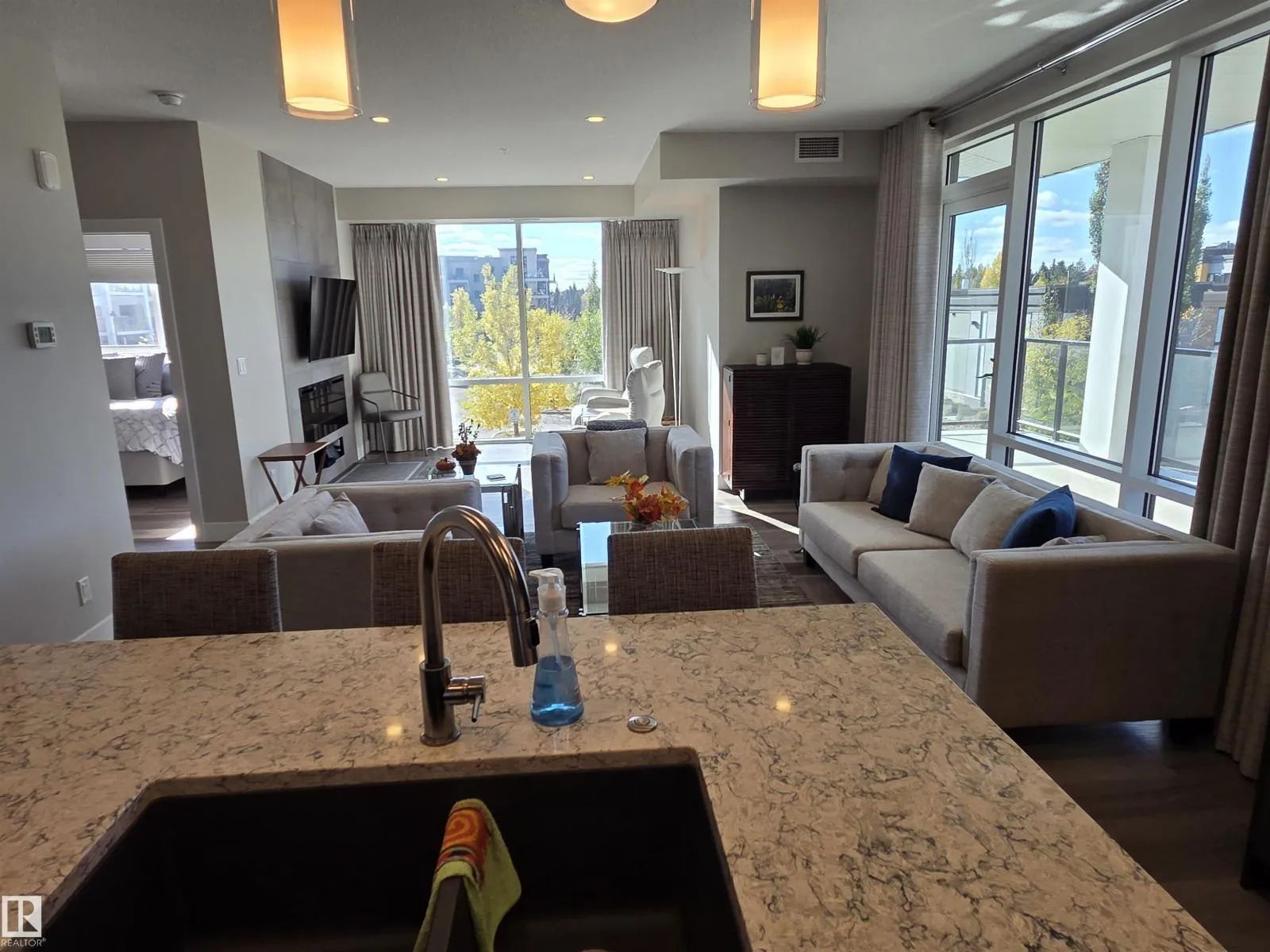 Rare Find! Oversized One Bedroom Suite on a corner! 1,030 sf decorated by a professional interior designer. Floor to ceiling window walls on 2 sides allows natural light to flood this unique floor plan. Solid concrete construction offers enhanced privacy and lifestyle, as well as fire safety. Premium features include; 9 ft ceilings, oversized windows, quartz countertops, plank & porcelain tile flooring, 5 pc ensuite bath, forced air heating & A/C, Bosch appliance pkg etc. Large covered balcony (over 200 sq ft) with gas & water hookups. Underground parking included with oversized storage space. Botanica's well designed amenities include; an impressive lobby, spacious event centre, fitness facility, rooftop patio, 3 guest suites & plenty of visitor parking. All within step of the tranquil Sturgeon River Valley with over 65 kms of walking trails. Enjoy the boutique shopping, Mercato Italian Market, unique restaurants & professional services, right outside your front door. Low condo fees includes gas & water. (id:27476)