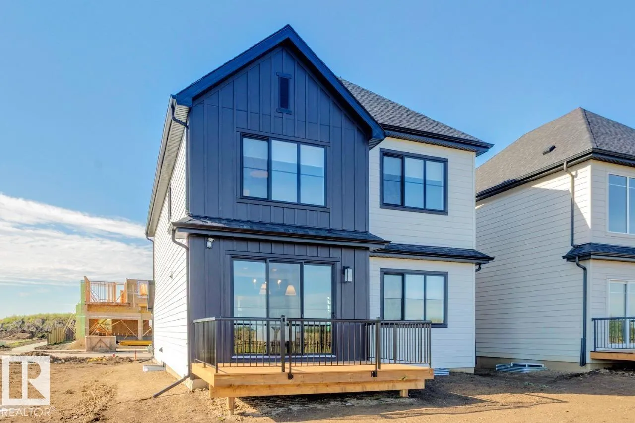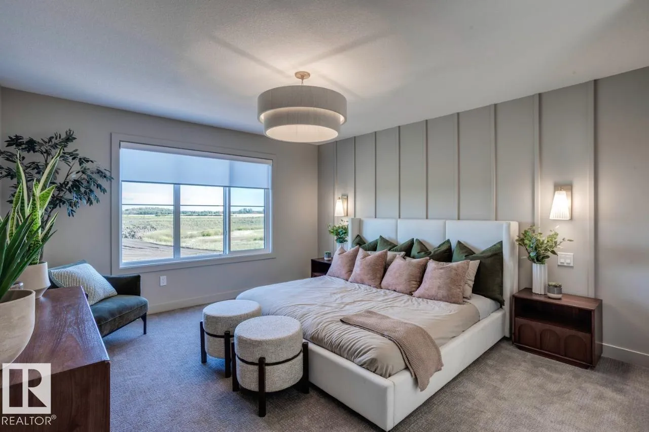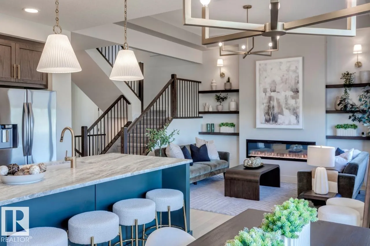 Discover the Bridgeport II showhome, a stunning 2,316 sq ft coastal farmhouse-style home that blends charm, comfort, and style. Featuring 3 bedrooms, 2.5 baths, and an open-concept main floor, this home welcomes you with a grand foyer leading to a spacious great room with a tray ceiling and striking 60' electric fireplace. The chef-inspired kitchen offers a large island, walk-through pantry, and designer finishes throughout. Upstairs, enjoy a raised and vaulted bonus room, convenient laundry, and a serene primary bedroom with a luxurious 5-piece ensuite and expansive walk-in closet. Thoughtful details, warm tones, and natural textures create a timeless aesthetic, while the coastal elevation adds undeniable curb appeal. Nestled in St. Albertâs sought-after Jensen Lakesâoffering beach access, parks, and schoolsâthis showhome perfectly balances elegance and livability. (id:27476)
