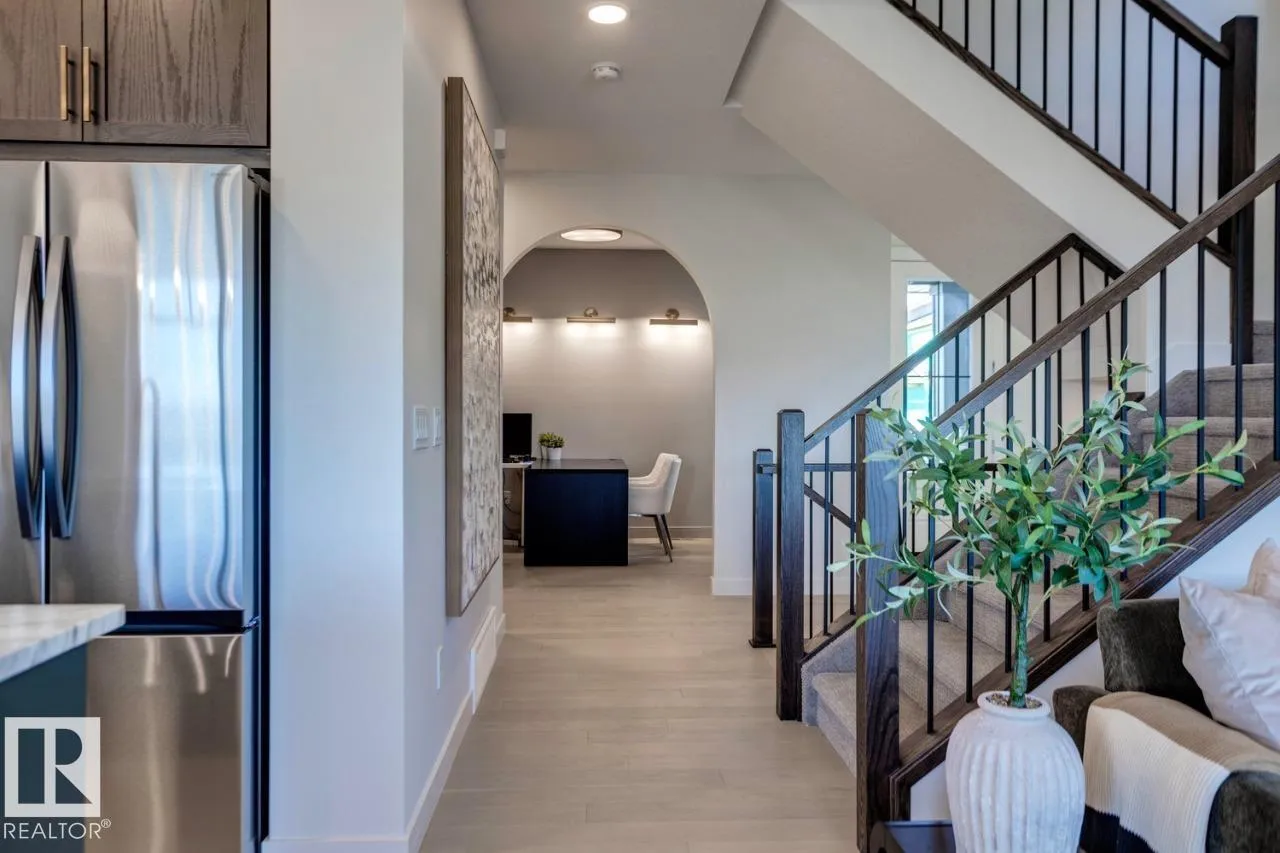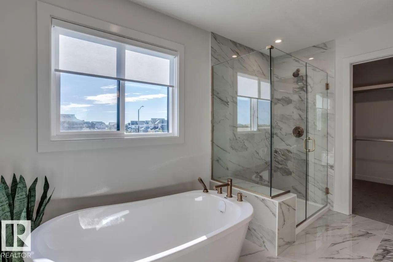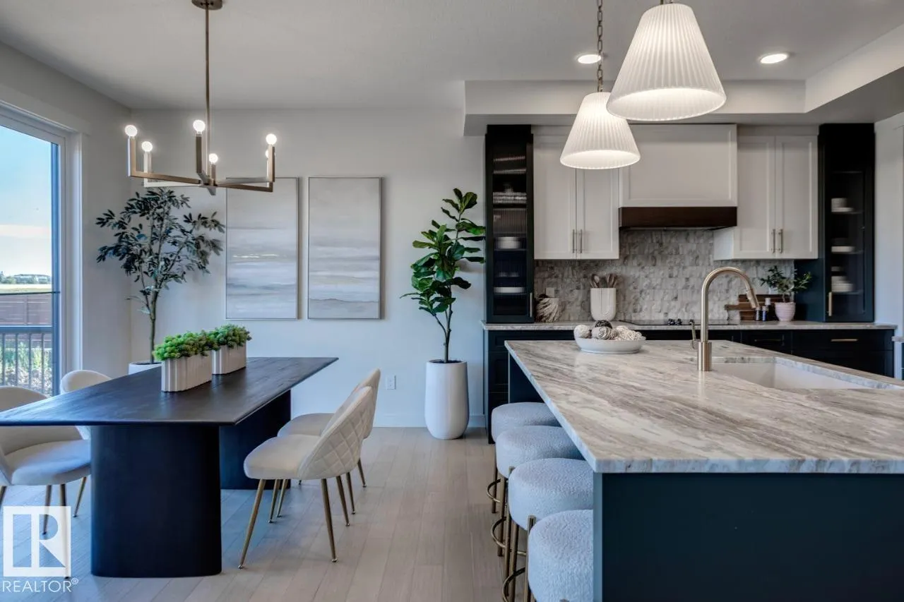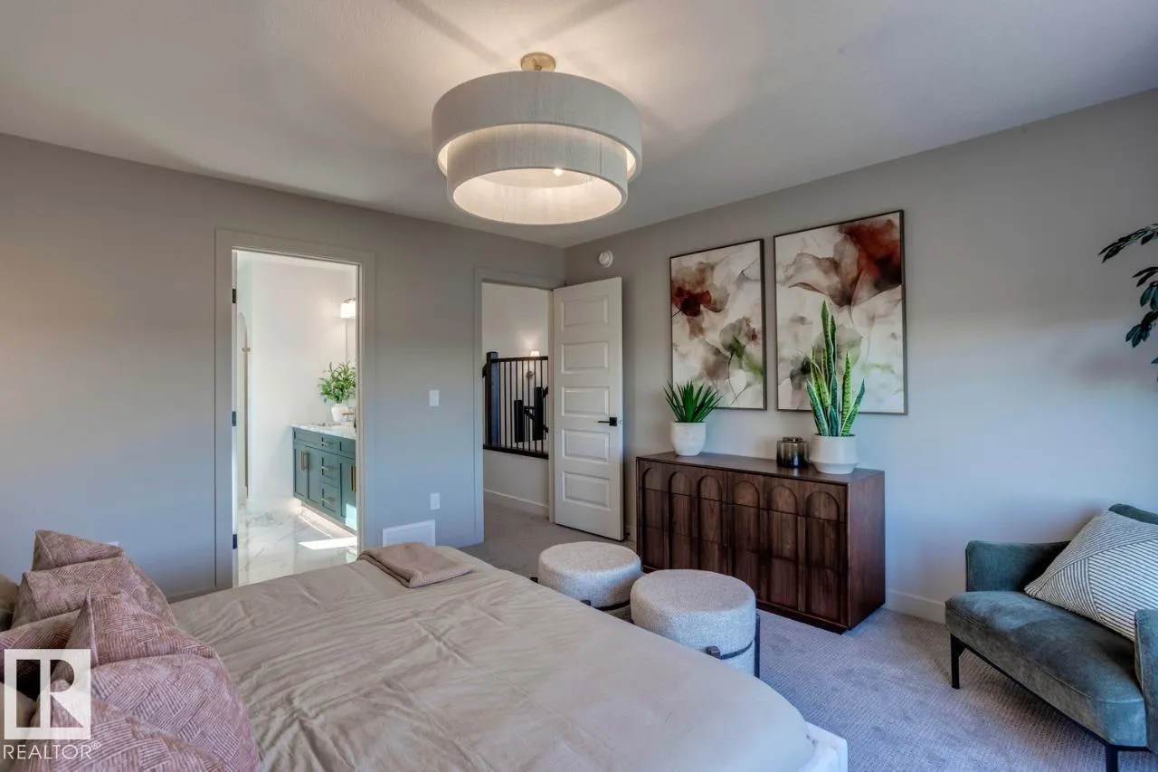 Discover the Bridgeport II showhome, a stunning 2,316 sq ft coastal farmhouse-style home that blends charm, comfort, and style. Featuring 3 bedrooms, 2.5 baths, and an open-concept main floor, this home welcomes you with a grand foyer leading to a spacious great room with a tray ceiling and striking 60' electric fireplace. The chef-inspired kitchen offers a large island, walk-through pantry, and designer finishes throughout. Upstairs, enjoy a raised and vaulted bonus room, convenient laundry, and a serene primary bedroom with a luxurious 5-piece ensuite and expansive walk-in closet. Thoughtful details, warm tones, and natural textures create a timeless aesthetic, while the coastal elevation adds undeniable curb appeal. Nestled in St. Albertâs sought-after Jensen Lakesâoffering beach access, parks, and schoolsâthis showhome perfectly balances elegance and livability. (id:27476)