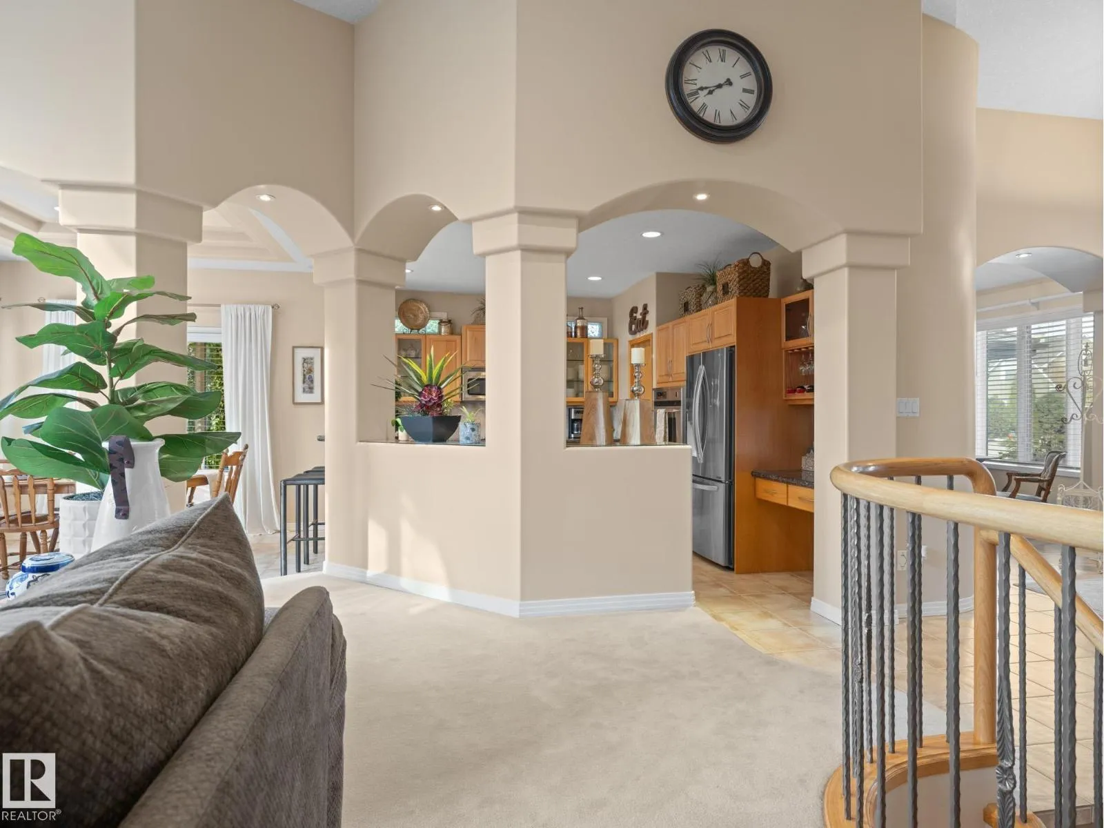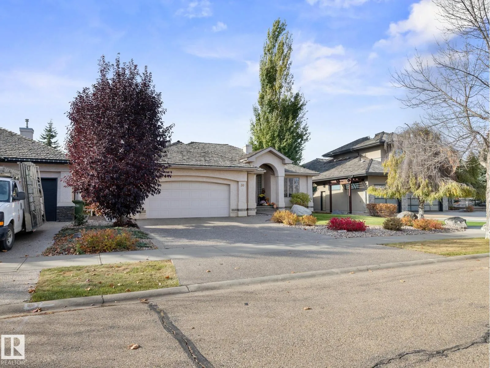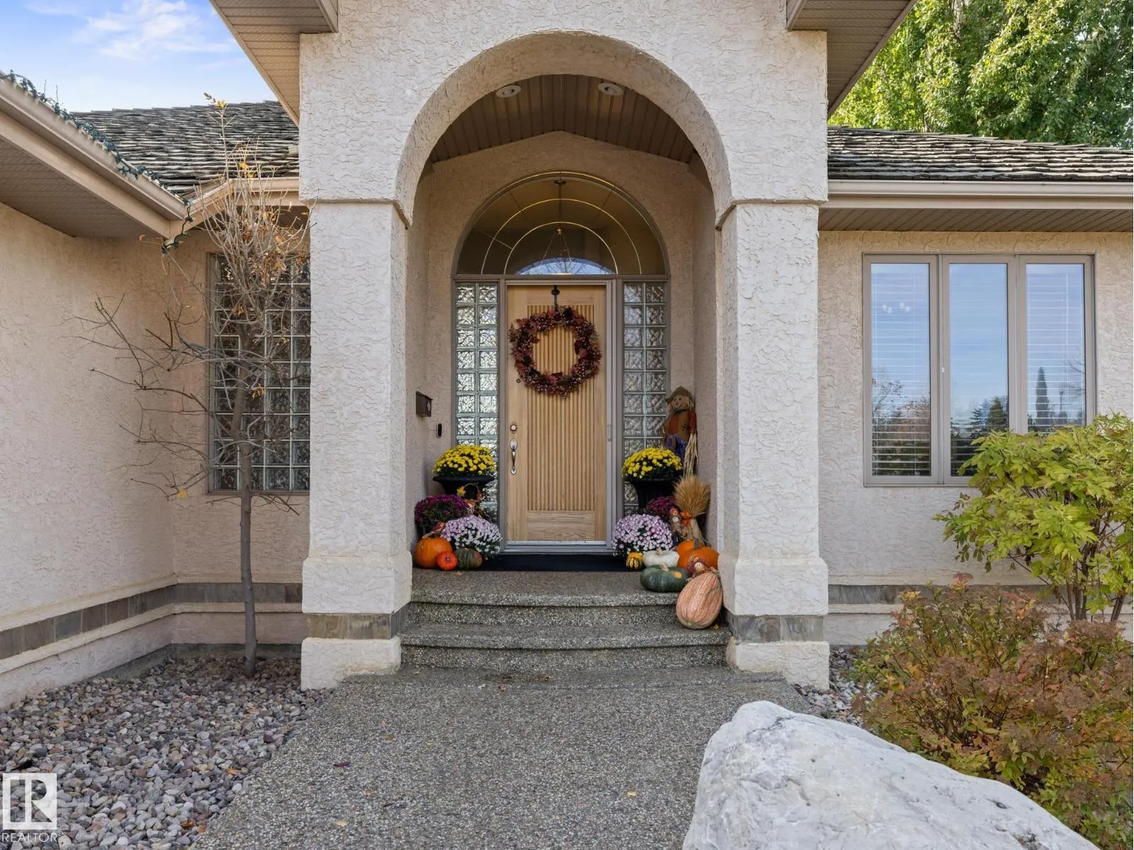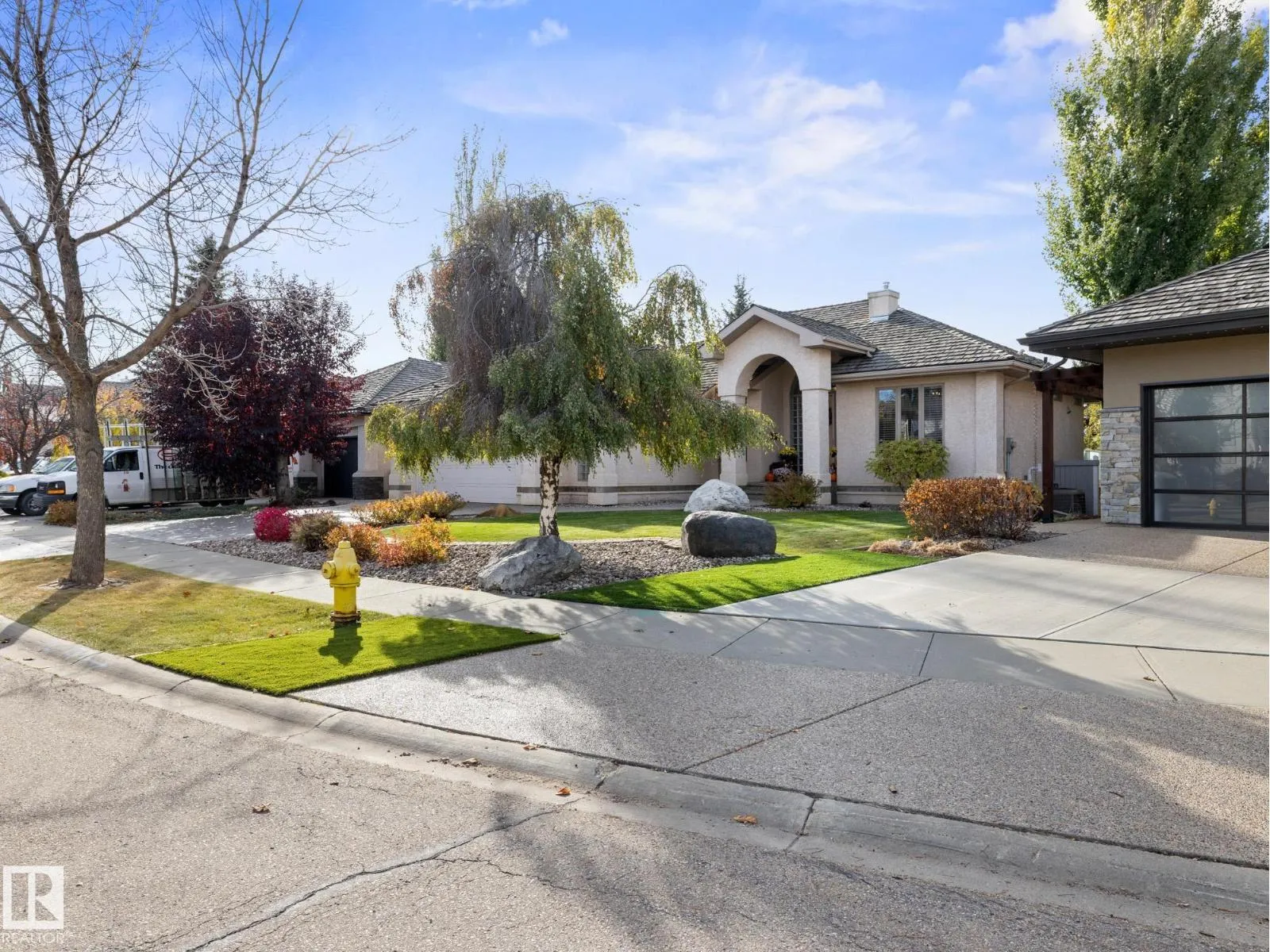 LOVELY FORMER SHOWHOME. This executive bungalow is located on one of St. Albert's most prestigious crescents with view of nature in back. Highly coveted location. 1750 sq. ft. on main floor with a fully developed walkout basement in total 3400 sq. ft. Your family will love this elegant home built by Design Innovations. Main floor has an open concept with kitchen overlooking living room and large eating nook. Warm oak cabinets with granite counter tops, large island, and walk-in pantry. Vaulted ceilings. Entertain in style with this large formal dining room. Primary bedroom is large with beautiful ensuite. Natural light throughout home. IN FLOOR HEATING on main flr tile. WALKOUT basement w. family room, 4 piece bathroom, and two large bedrooms and IN FLOOR HEATING. A/C ('14), Newer Furnace and 1 h.w. tank is newer ('20), Fresh Paint. Gorgeous landscaping complete with paving stones and flowers. Enjoy the view of nature from your main floor. Walk to RiverLot 56 for X-skiing, Botanical Gardens, Golf. (id:27476)