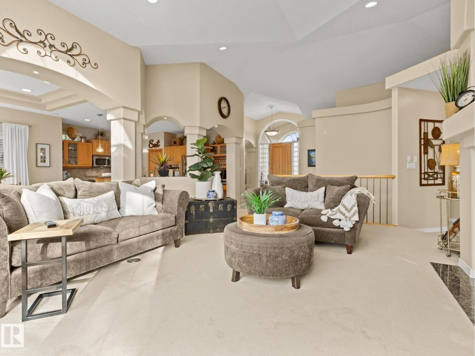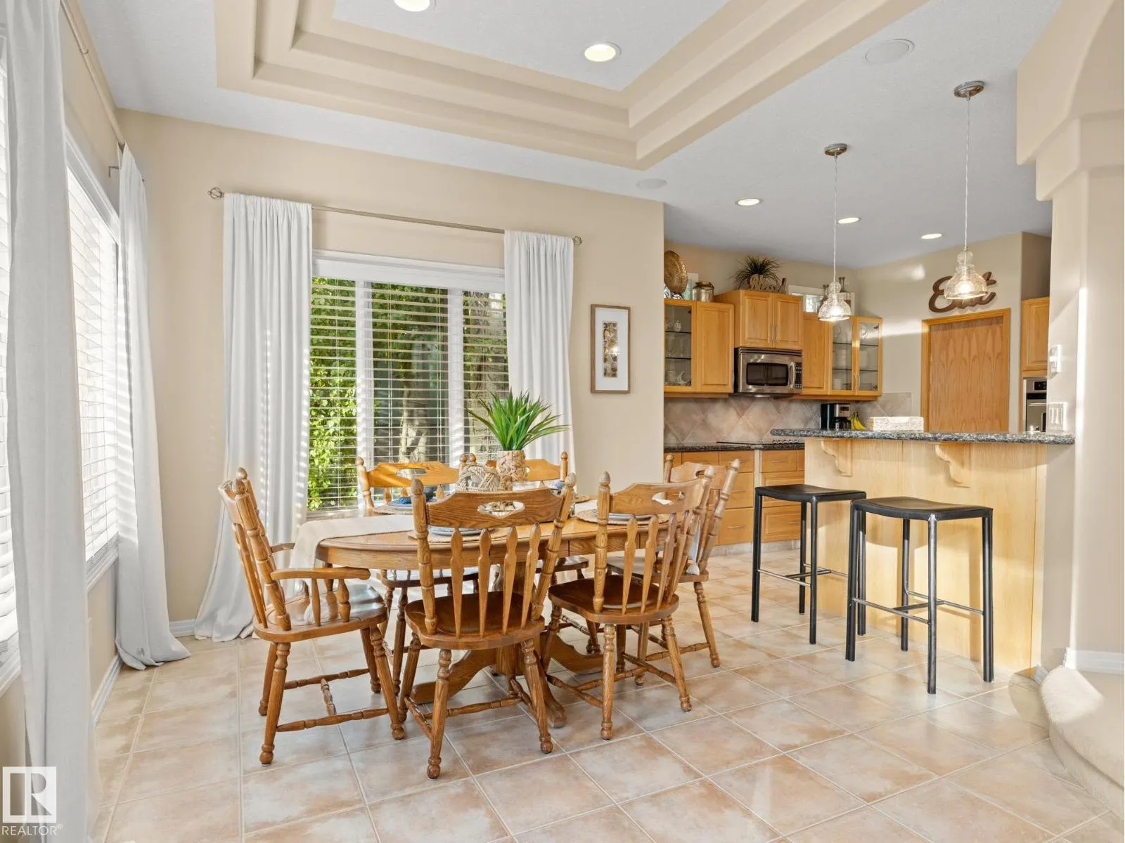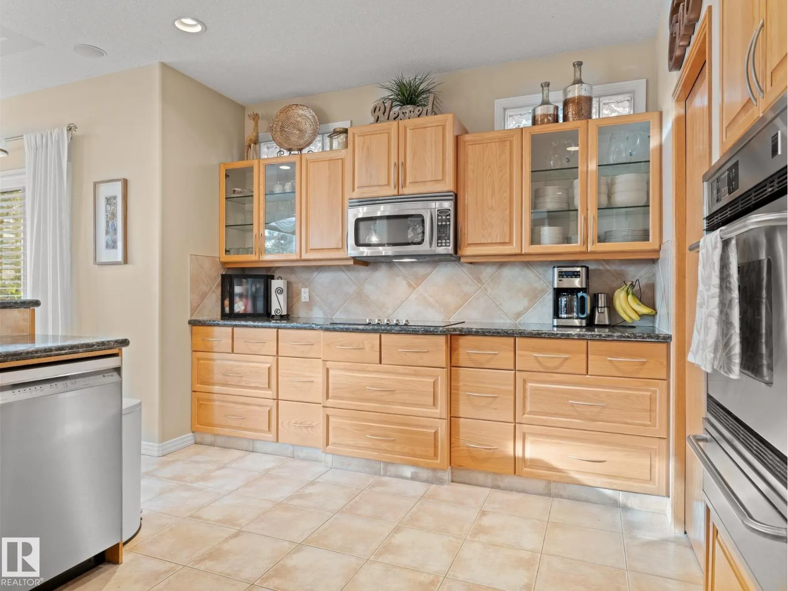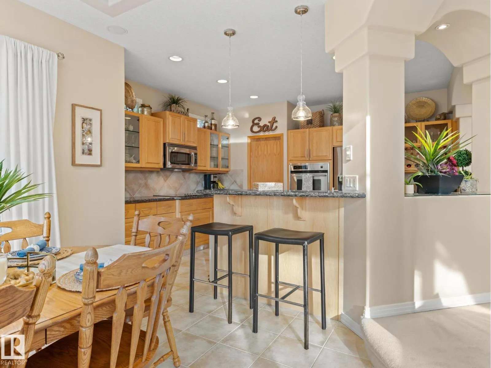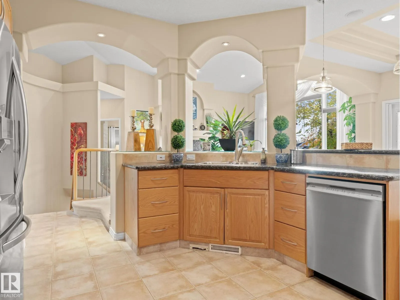 LOVELY FORMER SHOWHOME. This executive bungalow is located on one of St. Albert's most prestigious crescents with view of nature in back. Highly coveted location. 1750 sq. ft. on main floor with a fully developed walkout basement in total 3400 sq. ft. Your family will love this elegant home built by Design Innovations. Main floor has an open concept with kitchen overlooking living room and large eating nook. Warm oak cabinets with granite counter tops, large island, and walk-in pantry. Vaulted ceilings. Entertain in style with this large formal dining room. Primary bedroom is large with beautiful ensuite. Natural light throughout home. IN FLOOR HEATING on main flr tile. WALKOUT basement w. family room, 4 piece bathroom, and two large bedrooms and IN FLOOR HEATING. A/C ('14), Newer Furnace and 1 h.w. tank is newer ('20), Fresh Paint. Gorgeous landscaping complete with paving stones and flowers. Enjoy the view of nature from your main floor. Walk to RiverLot 56 for X-skiing, Botanical Gardens, Golf. (id:27476)