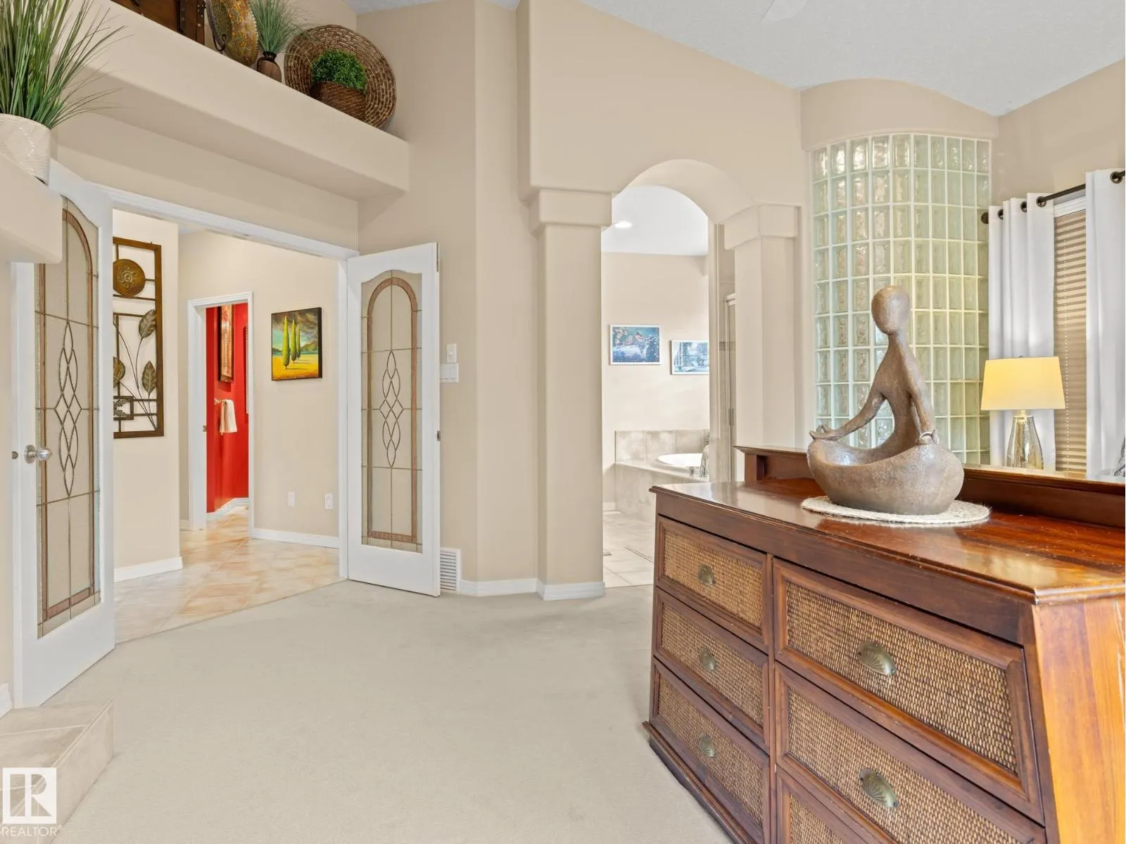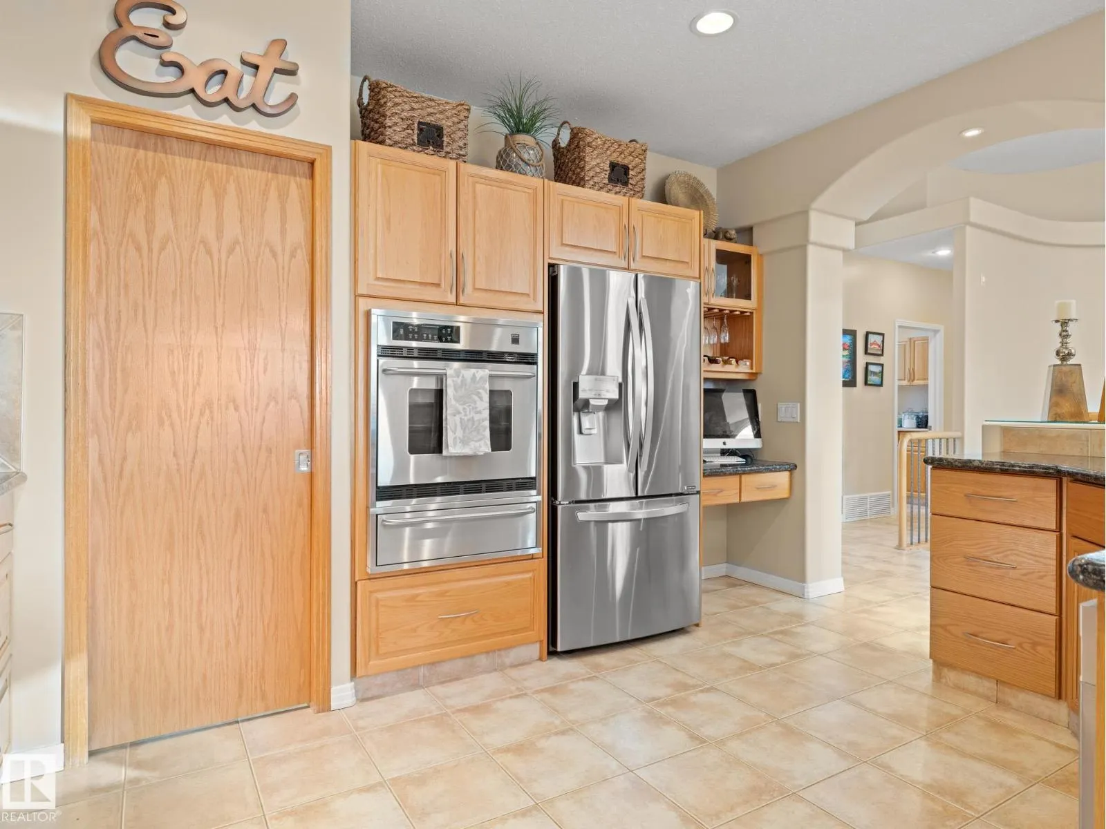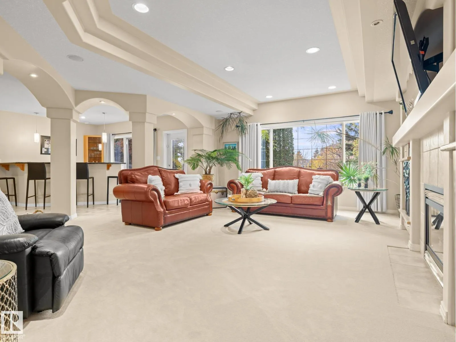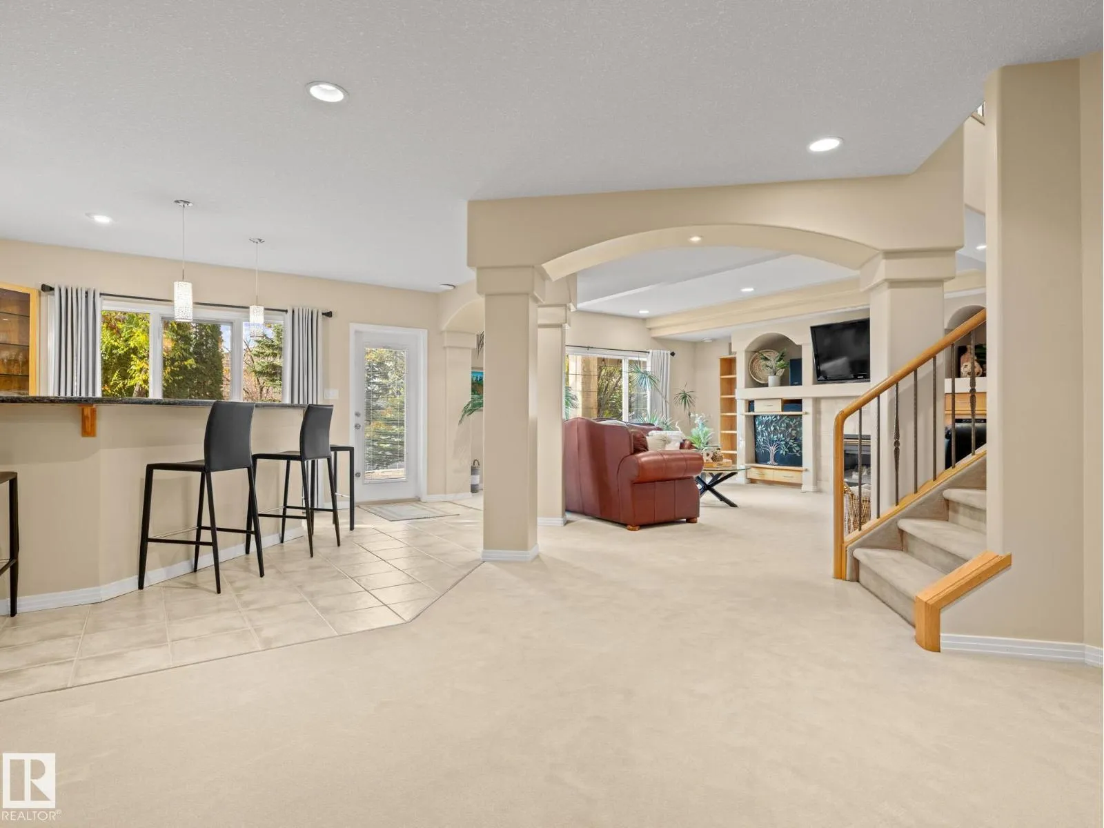 LOVELY FORMER SHOWHOME. This executive bungalow is located on one of St. Albert's most prestigious crescents with view of nature in back. Highly coveted location. 1750 sq. ft. on main floor with a fully developed walkout basement in total 3400 sq. ft. Your family will love this elegant home built by Design Innovations. Main floor has an open concept with kitchen overlooking living room and large eating nook. Warm oak cabinets with granite counter tops, large island, and walk-in pantry. Vaulted ceilings. Entertain in style with this large formal dining room. Primary bedroom is large with beautiful ensuite. Natural light throughout home. IN FLOOR HEATING on main flr tile. WALKOUT basement w. family room, 4 piece bathroom, and two large bedrooms and IN FLOOR HEATING. A/C ('14), Newer Furnace and 1 h.w. tank is newer ('20), Fresh Paint. Gorgeous landscaping complete with paving stones and flowers. Enjoy the view of nature from your main floor. Walk to RiverLot 56 for X-skiing, Botanical Gardens, Golf. (id:27476)