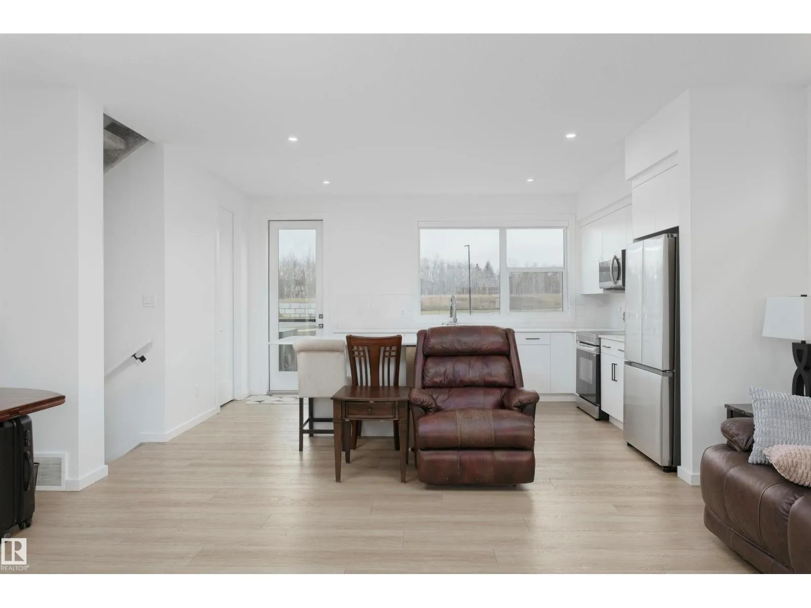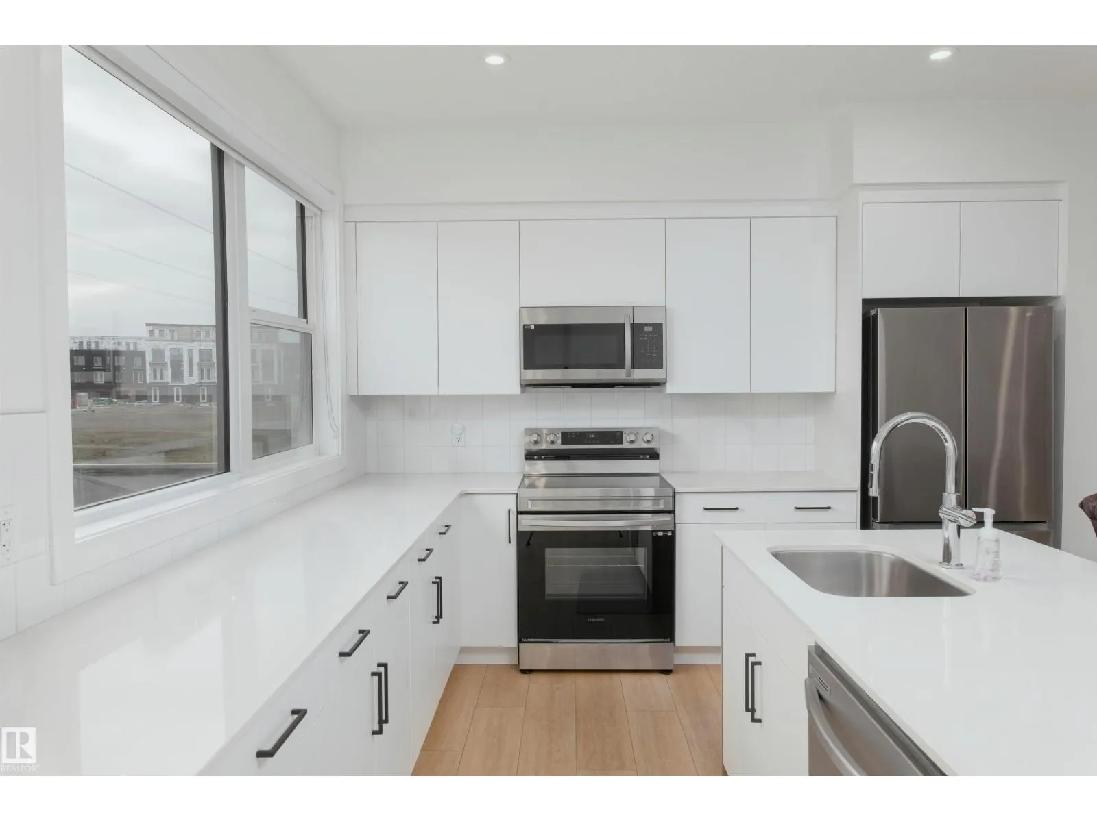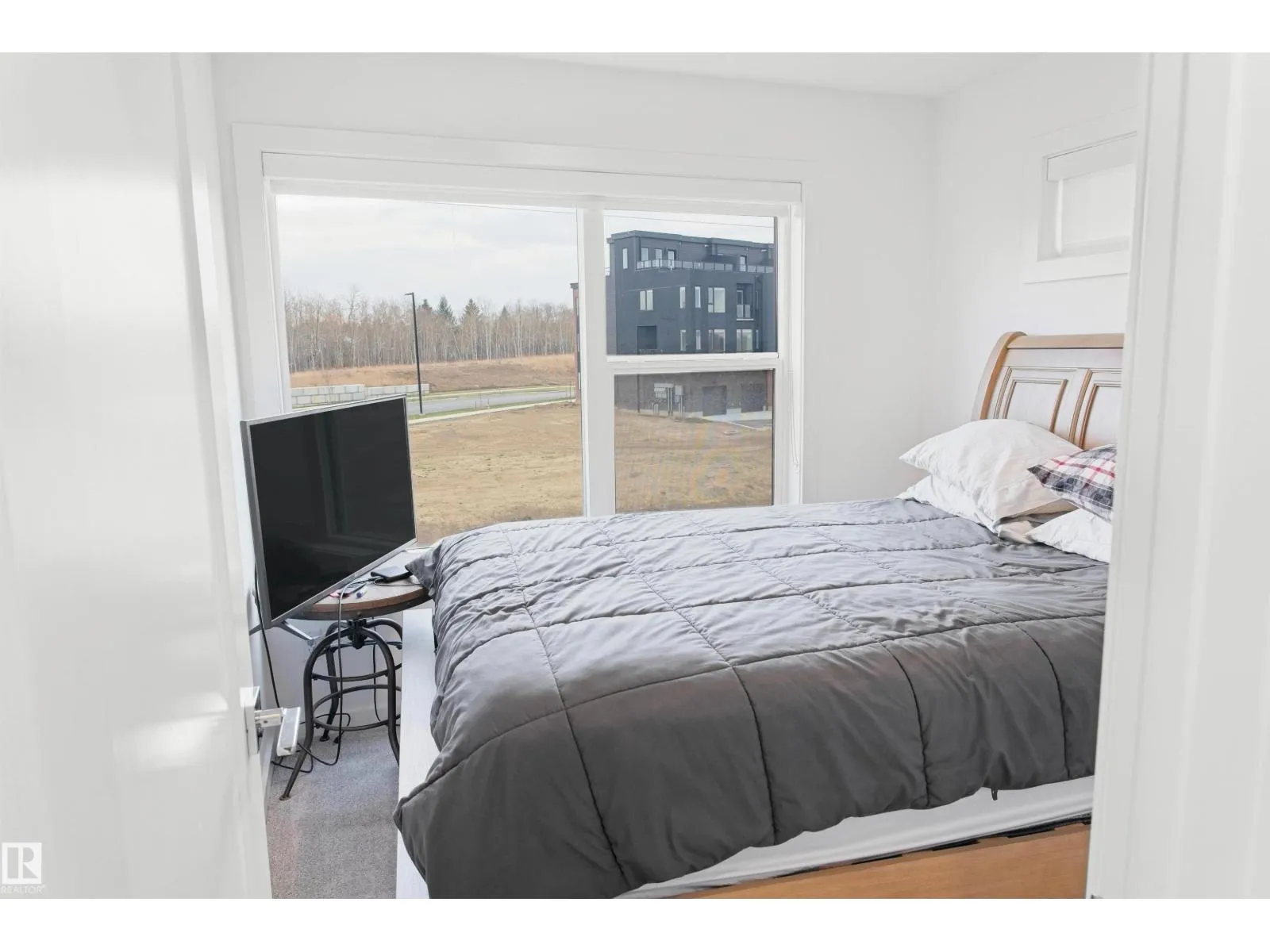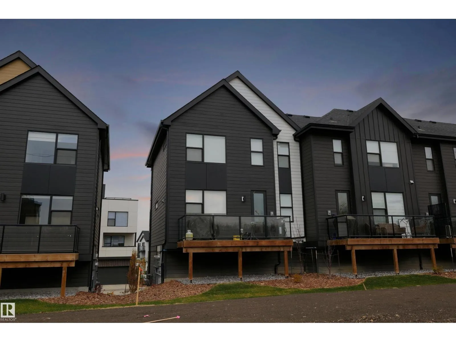 Experience modern living in this beautifully designed end-unit townhome, ideally located in one of St. Albertâs most sought-after communities. Thoughtfully crafted for comfort and style, the open-concept main floor welcomes you with abundant natural light and an upgraded kitchen featuring sleek cabinetry, stainless steel appliances, and ample counter space. Upstairs, the spacious primary suite offers a private ensuite and generous closet space, while the second bedroom and full bath provide versatility for guests or a home office. Enjoy year-round comfort with central A/C, a double attached garage, and an end-unit position that offers additional light and privacy. Surrounded by parks, schools, and everyday amenities, this home blends modern design with low-maintenance living in a prime St. Albert setting. (id:27476)