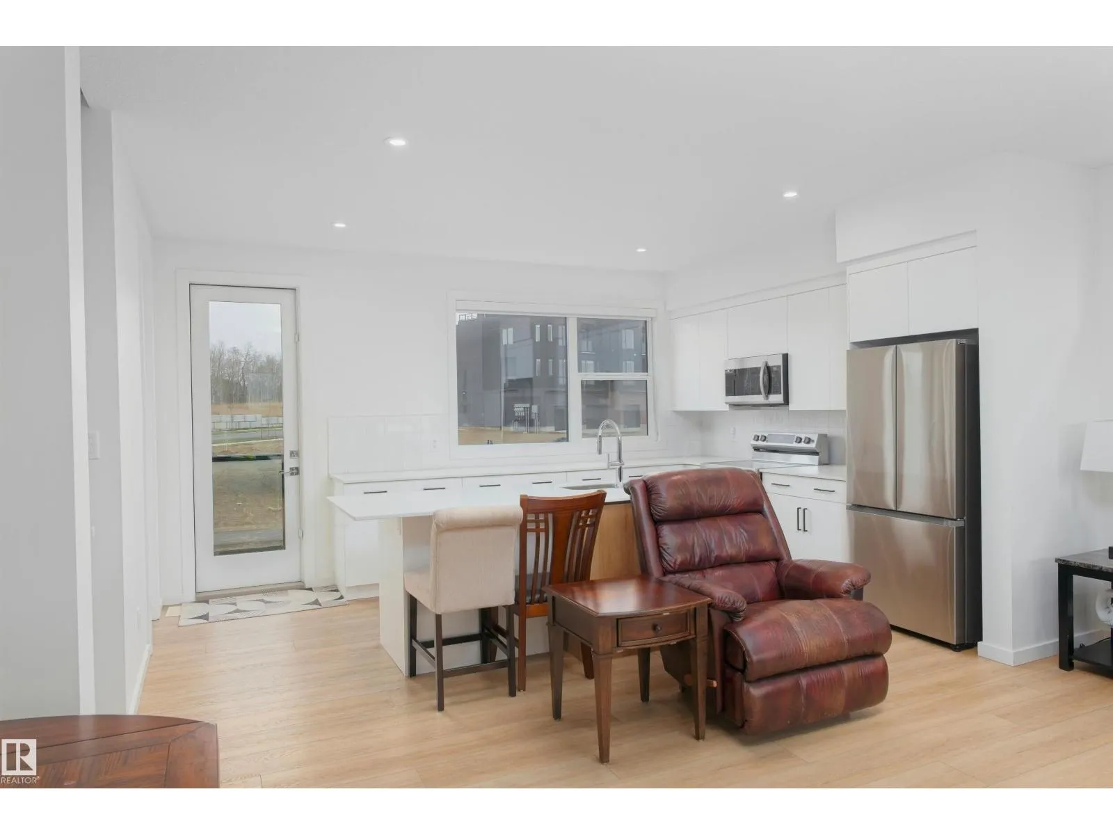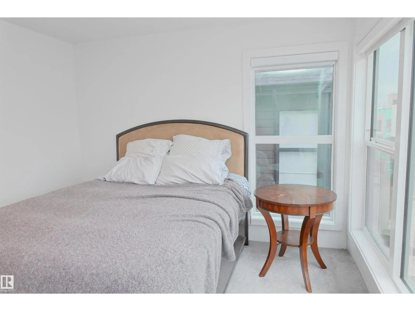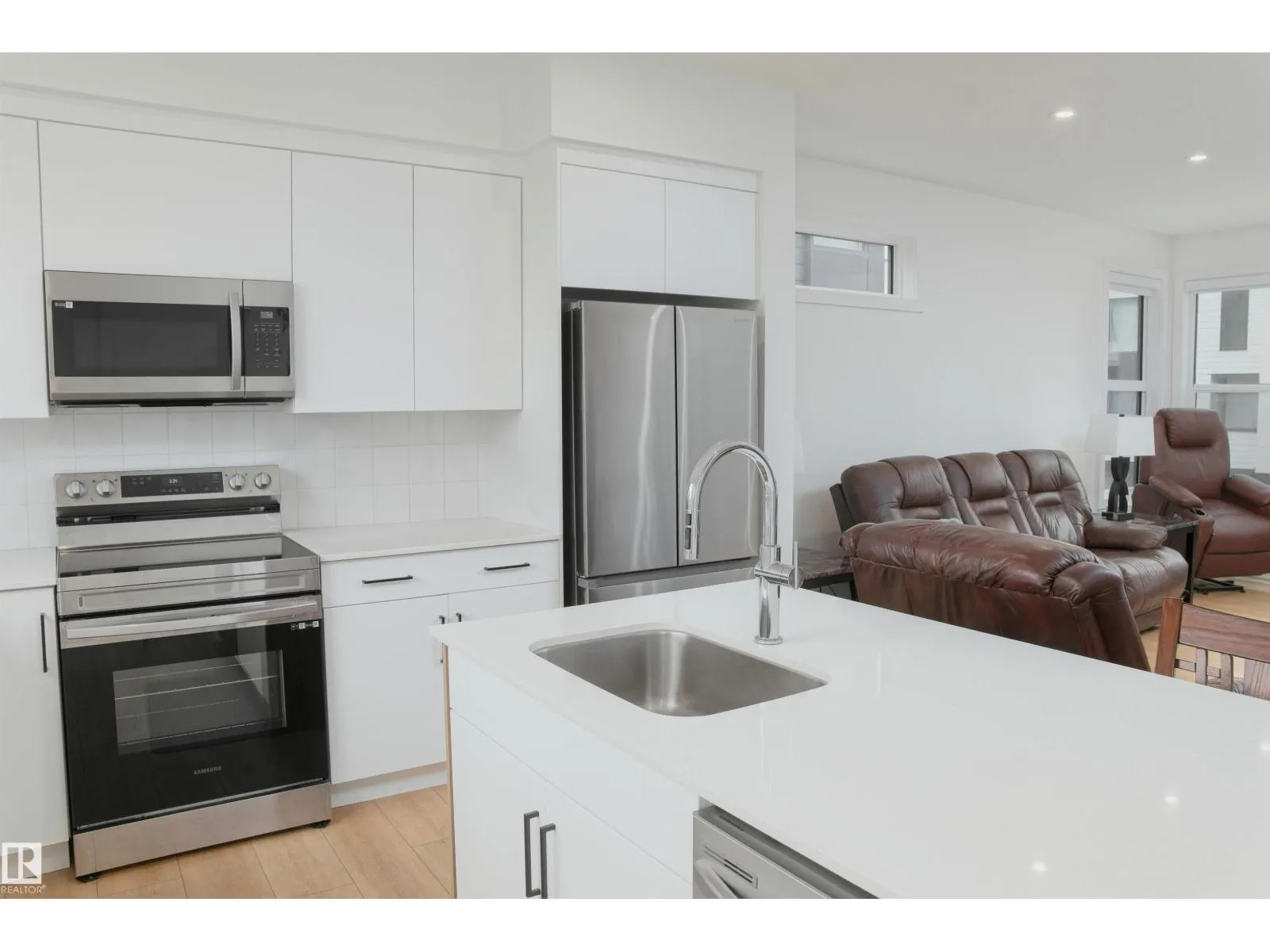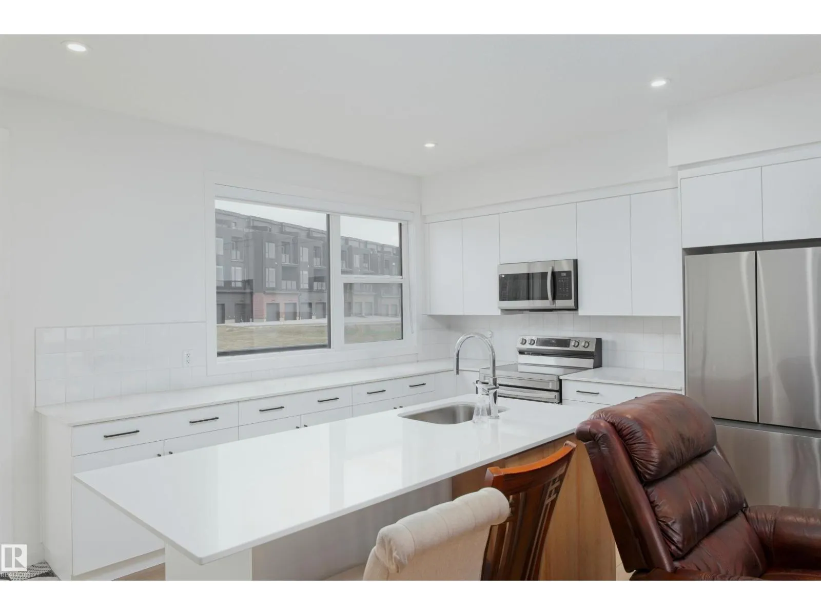 Experience modern living in this beautifully designed end-unit townhome, ideally located in one of St. Albertâs most sought-after communities. Thoughtfully crafted for comfort and style, the open-concept main floor welcomes you with abundant natural light and an upgraded kitchen featuring sleek cabinetry, stainless steel appliances, and ample counter space. Upstairs, the spacious primary suite offers a private ensuite and generous closet space, while the second bedroom and full bath provide versatility for guests or a home office. Enjoy year-round comfort with central A/C, a double attached garage, and an end-unit position that offers additional light and privacy. Surrounded by parks, schools, and everyday amenities, this home blends modern design with low-maintenance living in a prime St. Albert setting. (id:27476)