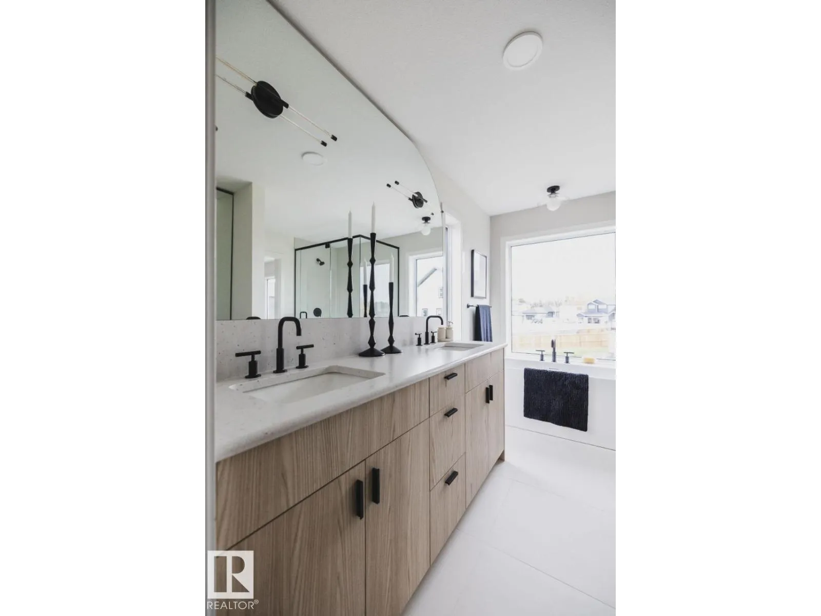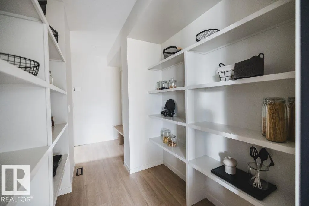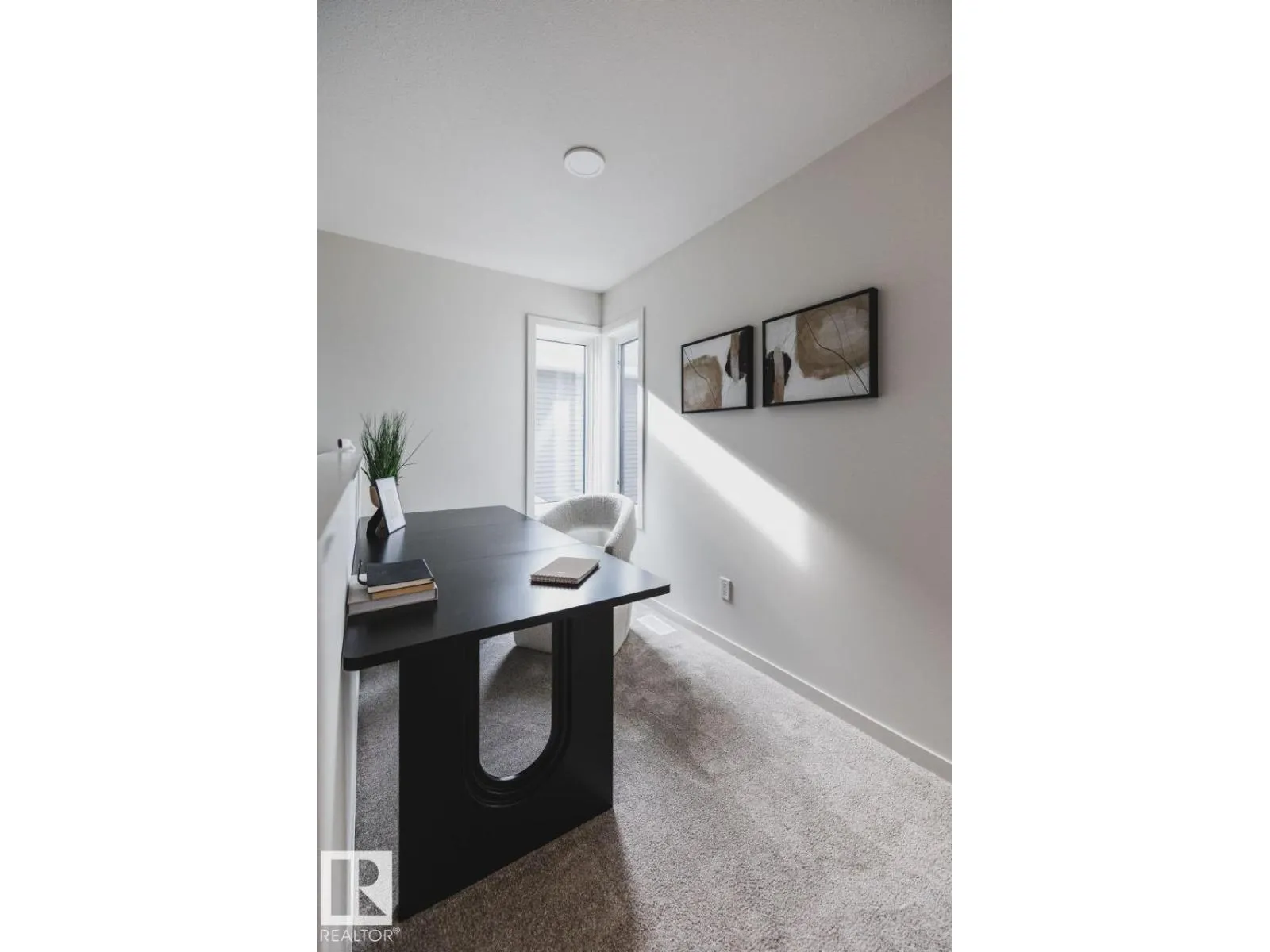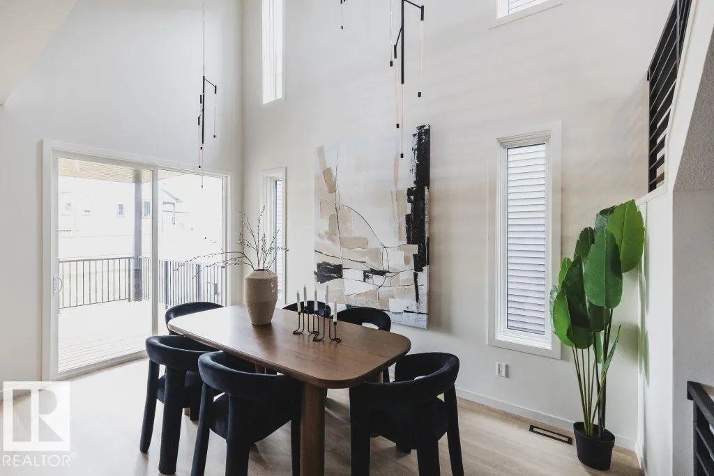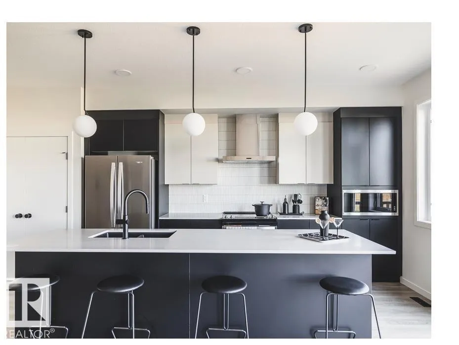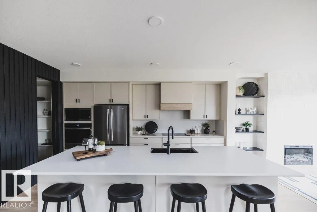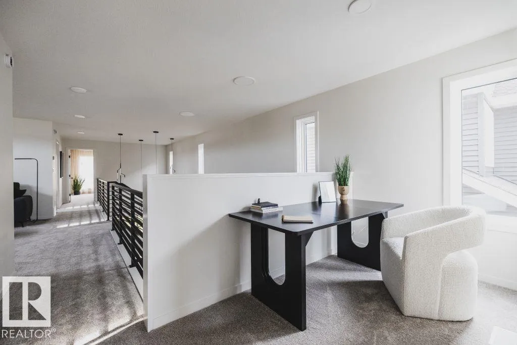 Welcome to the Entertain Vista 24 by Cantiro Homes! With 3 bedrooms and 2.5 bathrooms, this gorgeous home balances style & functionality. The main floor offers a bright foyer, a dining area open to above, and patio doors that extend your living space to the covered rear deck. A walkthrough pantry leads to a large kitchen with upgraded built in chefs appliance package, flowing seamlessly into the living room with oversized windows and a modern electric tile fireplace. Vertical metal railing adds a clean, contemporary touch throughout the main and upper floors. Upstairs, two open-to-below areas create an airy, light-filled atmosphere. A central bonus room and corner tech space provide flexible options for an office and play area. The primary bedroom includes a spacious ensuite with double vanities and a built-in makeup desk, leading into an expansive walk-in closet and conveniently connected laundry room. *photos are for representation only. Colours and finishing may vary* (id:27476)