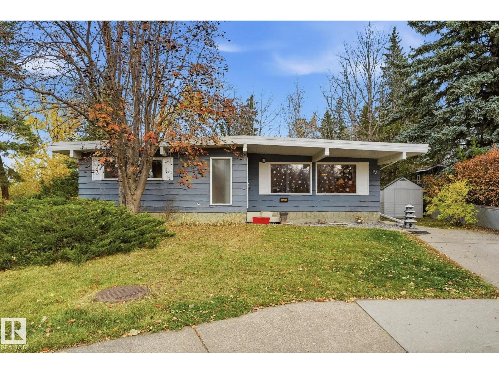Welcome to 19 Greenbrier in St. Albert. This EXPANSIVE BUNGALOW (almost 1,600 SQFT) has been impeccably maintained by the current family for over 40 years. Offering 4 BEDROOMS on the main level, 2 Bathrooms (1 Full & 1 Half), and a spacious living room overlooking the beauty tree-lined streets of Grandin. This peaceful EXTRA LARGE LOT is surrounded by trees and backs onto a small forest - perfect space for kids to explore & have fun! With the WILD ROSE ELEMENTARY SCHOOL just a few steps away, the kids can walk themselves in just a few short minutes. The Basement is Fully Finished with a 5th bedroom, Massive Rec room, Office/Den, Laundry room, plenty of storage and a thoughtfully designed utility room. Enjoy a very private backyard with fire pit and lots of space to play. Priced to sell, this home won't last long! (id:27476)