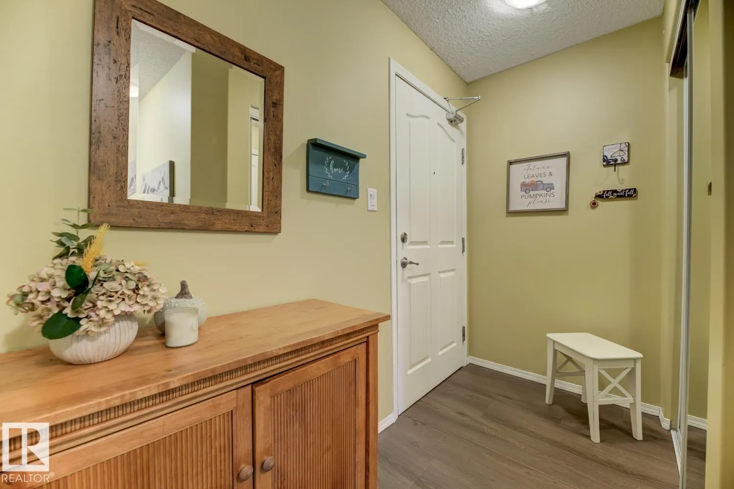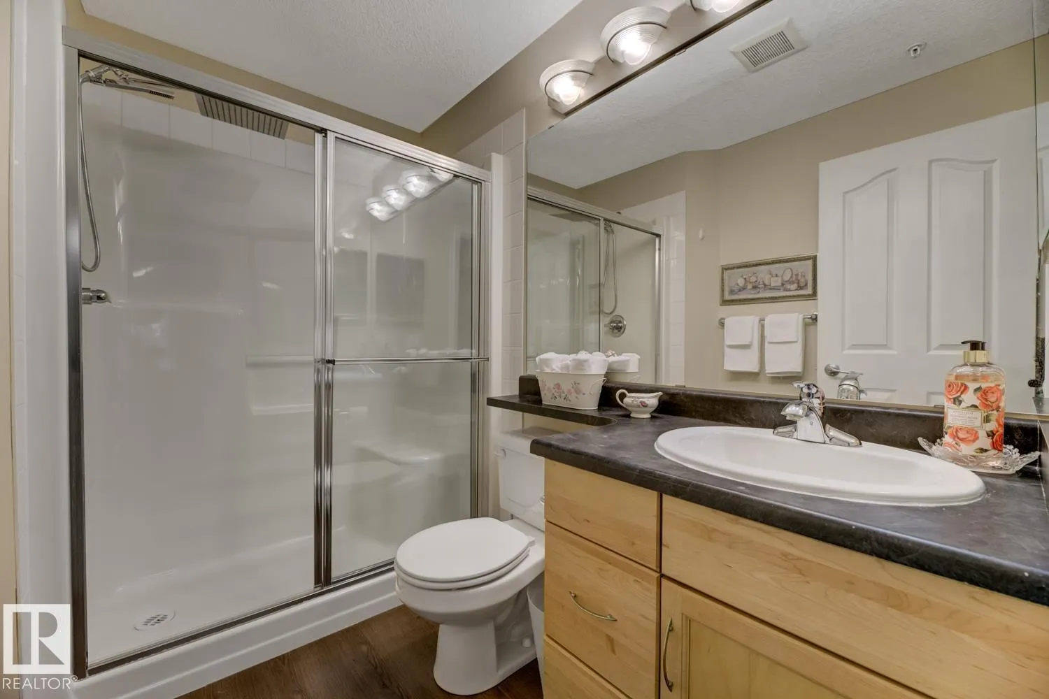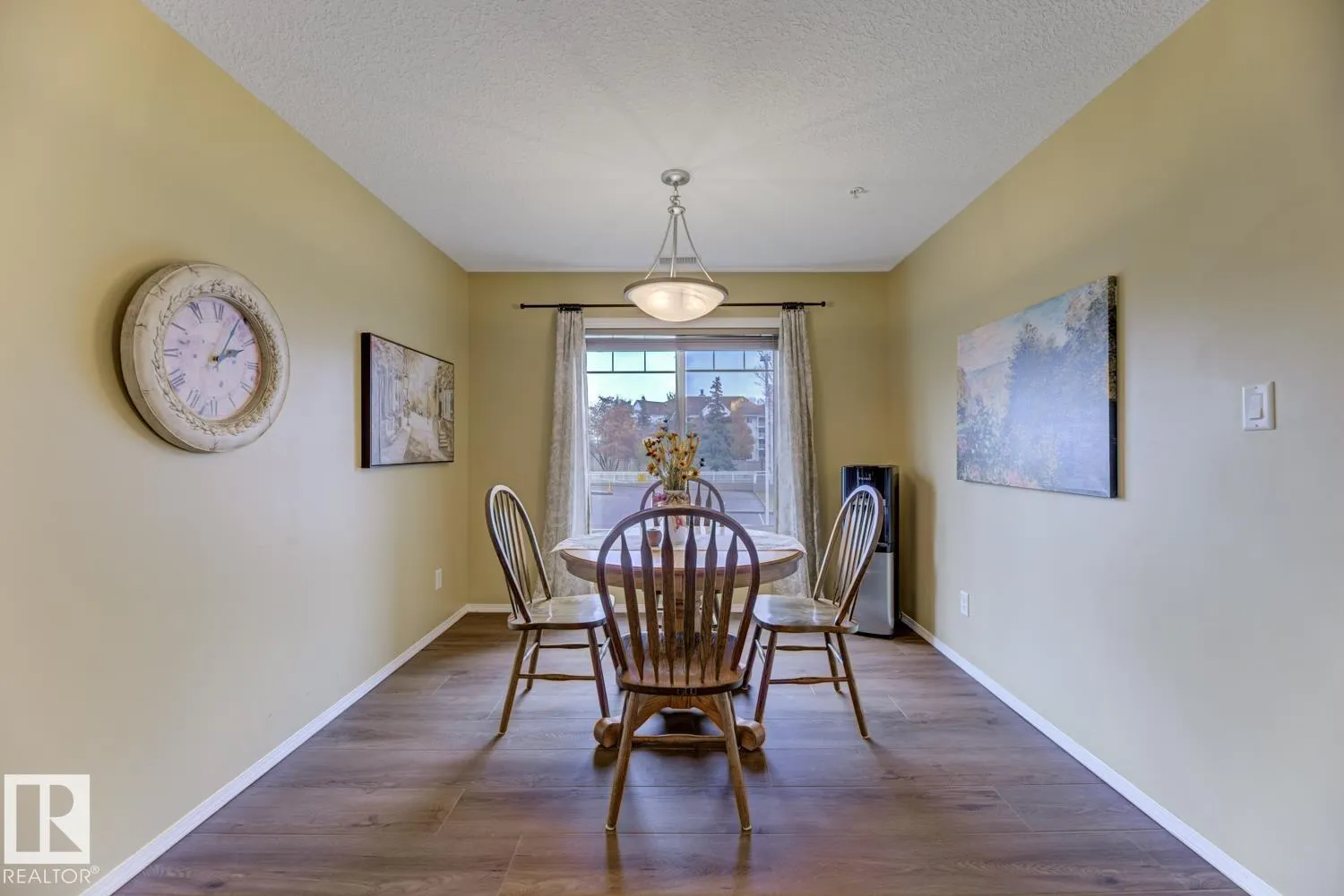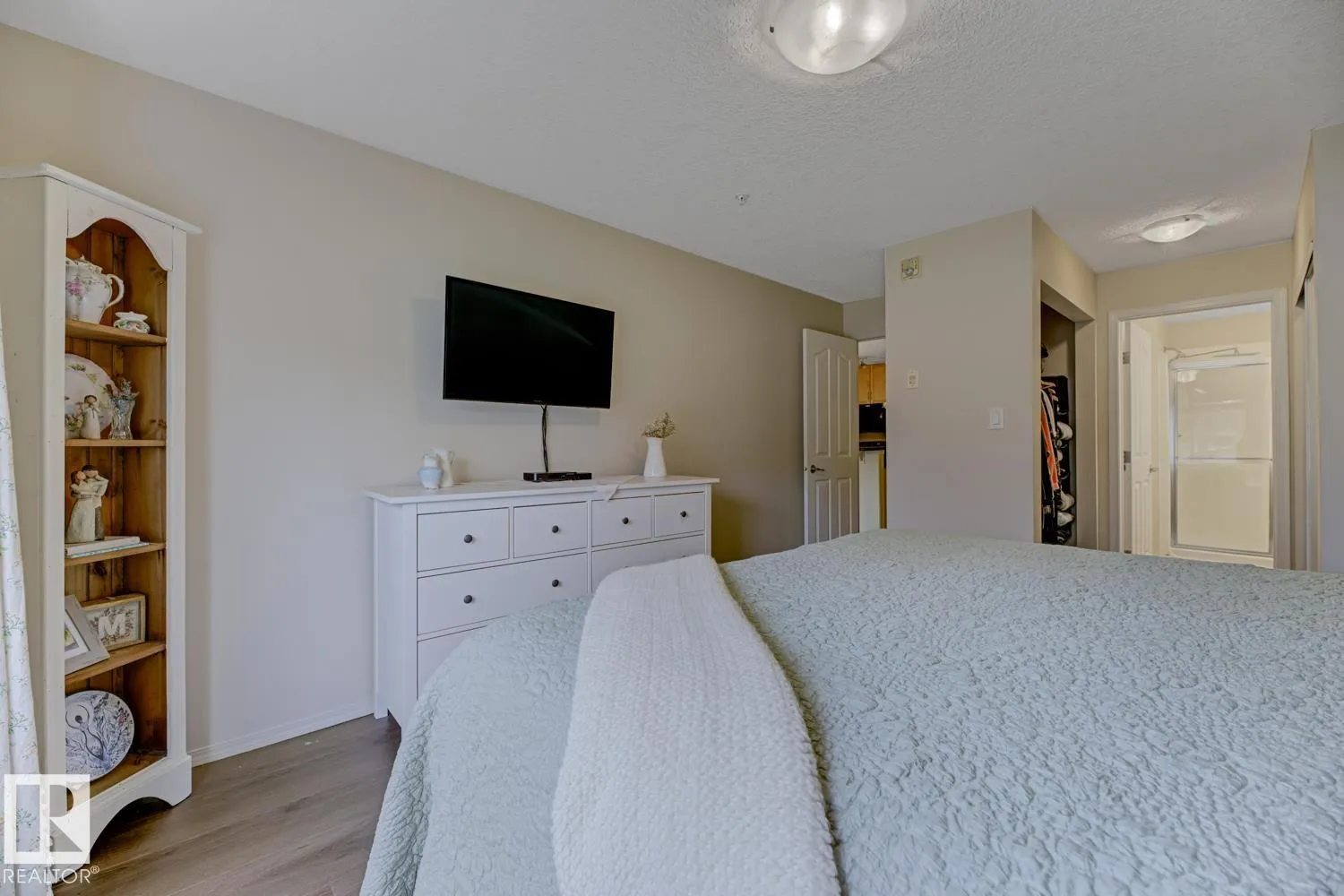 Executive Corner Unit in Mission Hill Grande! This immaculate condo offers nearly 1,034 sq. ft. of elegant, open-concept living with stylish vinyl plank flooring throughout. The gourmet kitchen features updated appliances, custom maple cabinetry, and a large central island that opens to the bright dining and living area perfect for entertaining. Unwind by the cozy gas fireplace or step through the patio doors to your private wraparound balcony with a gas BBQ hookup. The spacious primary suite includes double closets and a 3-piece ensuite. A generous second bedroom, 4-piece main bath, and oversized in-suite laundry/storage room complete the layout. Enjoy the convenience of a heated underground parking stall with storage cage, located just steps from the stairs. Mission Hill Grande offers exceptional amenities, including a social lounge, guest suite, exercise room, and ample visitor parking. Condo fees include heat and water. (id:27476)