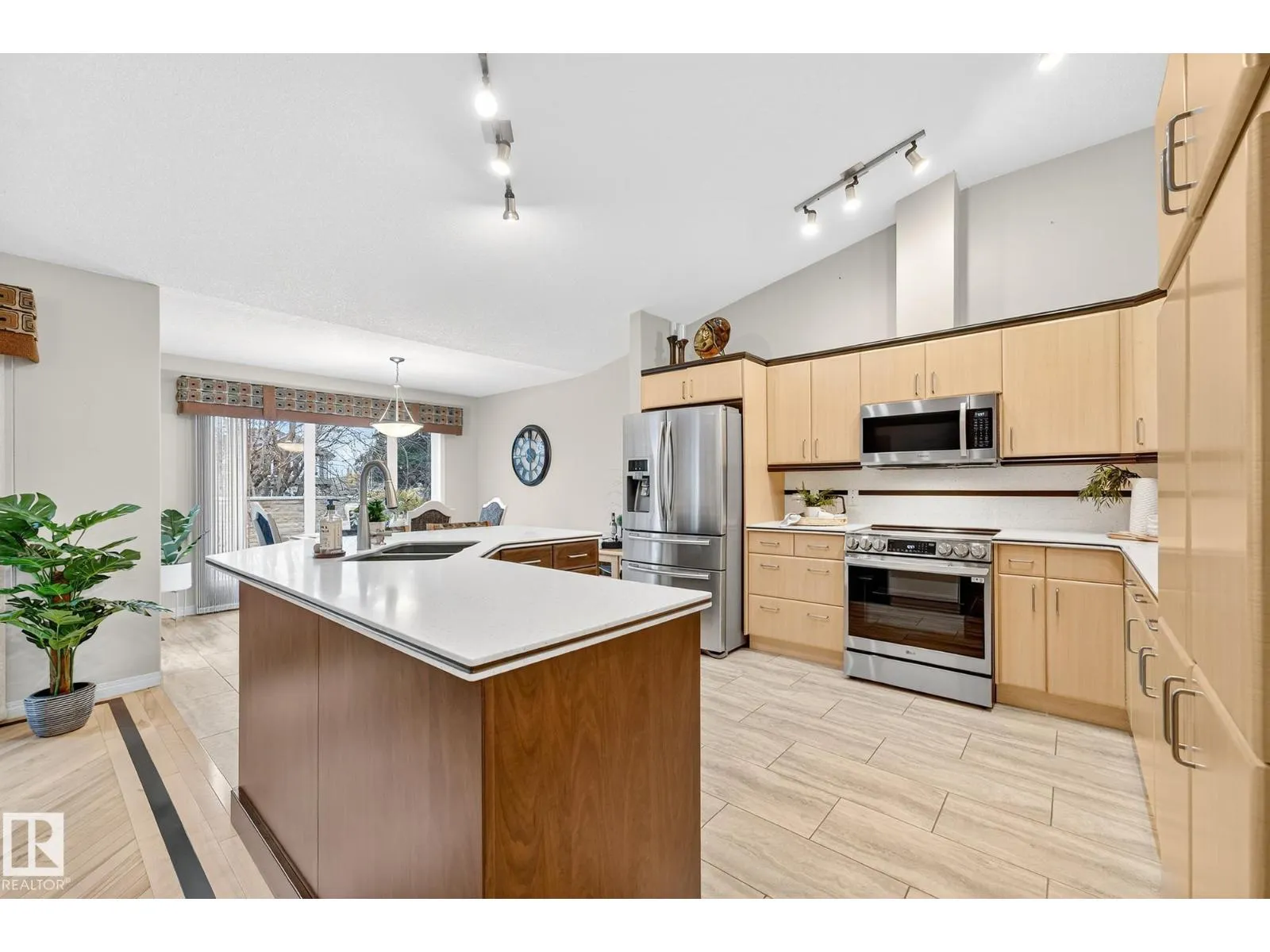 Welcome to EDGEWOOD ESTATES, a highly sought-after 55+ adult complex nestled in the heart of Erin Ridge. This WELL-MAINTAINED, original-owner home features HARDWOOD & VINYL PLANK flooring with vaulted ceilings. The spacious kitchen offers a large island & plenty of cabinetry. The great room is complete with a cozy gas f/p. The dining nook opens to a PRIVATE DECK with pergola & no neighbours behind you. Upstairs, you'll find a massive primary suite with huge walk-in closet & 3pce ensuite. A den with skylight & separate laundry room complete this level. The f/f basement includes a large family room with built-in storage, addt'l bedroom, 4pce bathroom, & an expansive storage room plus a separate utility room with NEWER FURNACE (2020). Enjoy central A/C during the summer months. The oversized double attached garage is a HANDYMAN'S PARADISE, complete with infrared heater & huge workbench. This well-managed complex offers a peaceful, LOW-MAINTENANCE LIFESTLYE steps from walking trails, restaurants & shopping. (id:27476)