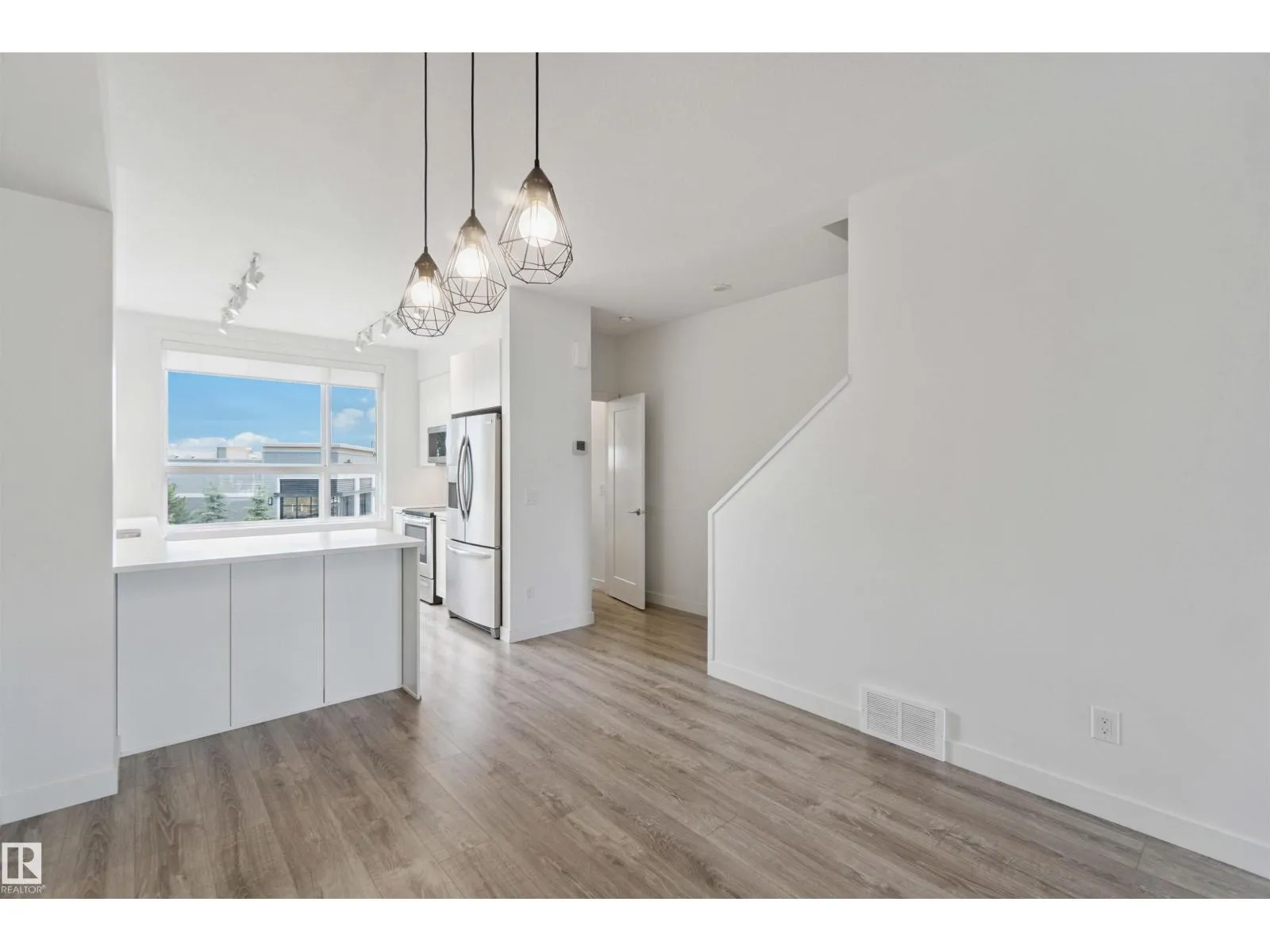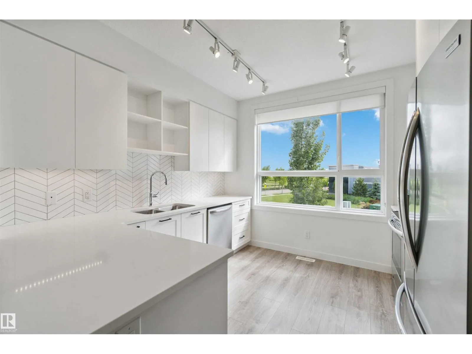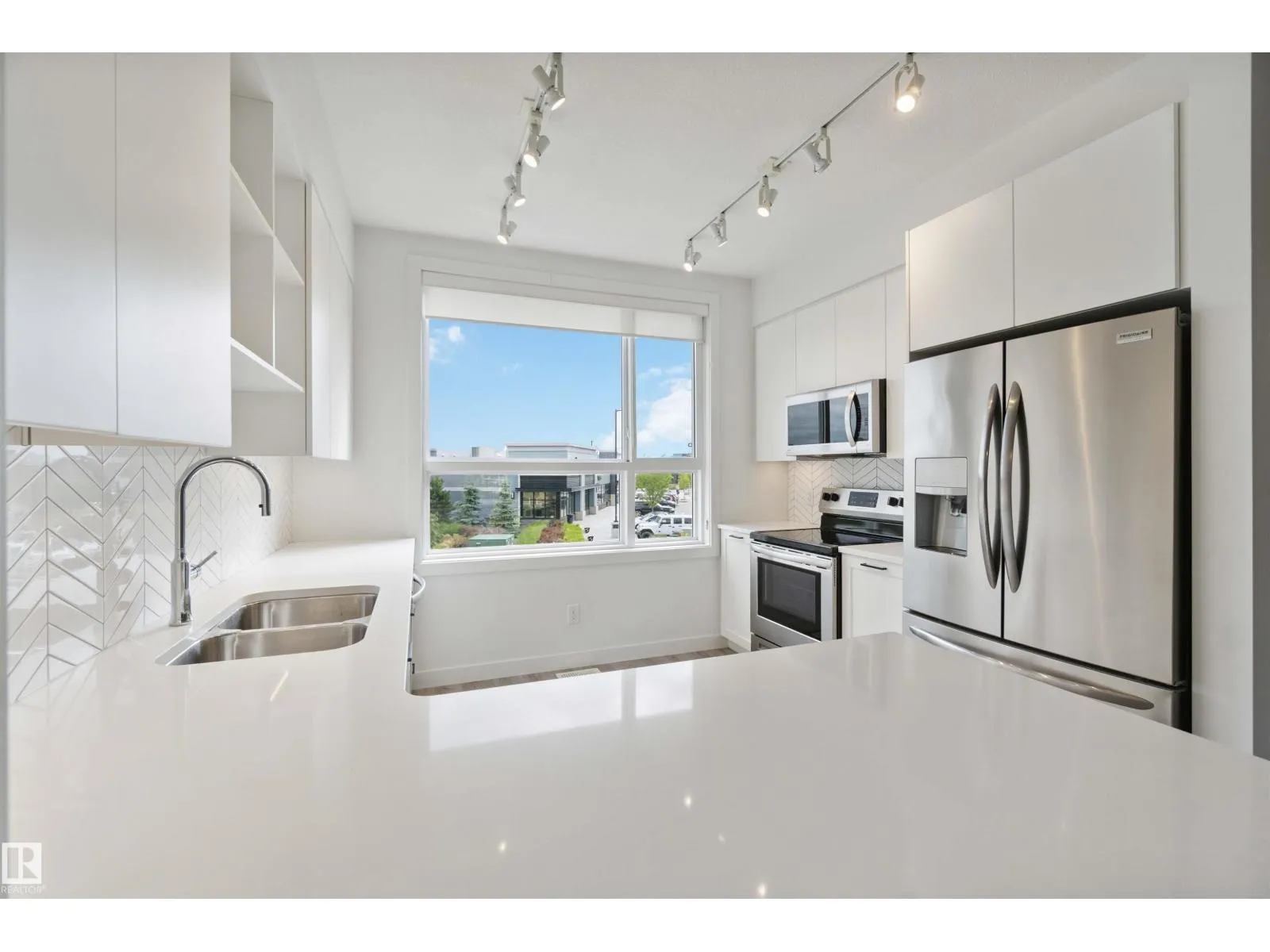 Welcome to Jensen Lakes, one of St. Albertâs only two lake-access communities! This stunning 2-bedroom, 2-bath townhouse offers a perfect blend of modern style and comfort. As you enter, youâll be greeted by a bright, open-concept living room filled with natural light streaming through large windows. The modern kitchen features sleek white cabinetry, stainless steel appliances, and plenty of counter space for entertaining or everyday living. Upstairs, youâll find two spacious bedrooms, each with its own private ensuiteâideal for guests or family. The double tandem garage provides ample parking and can easily be transformed into a third bedroom, home gym, or den. Enjoy cozy evenings by the stunning white fireplace feature wall, and stay cool all summer with central air conditioning. Experience luxury lake living at its finestâwhere you can swim, kayak, and relax just steps from your door in beautiful Jensen Lakes. (id:27476)