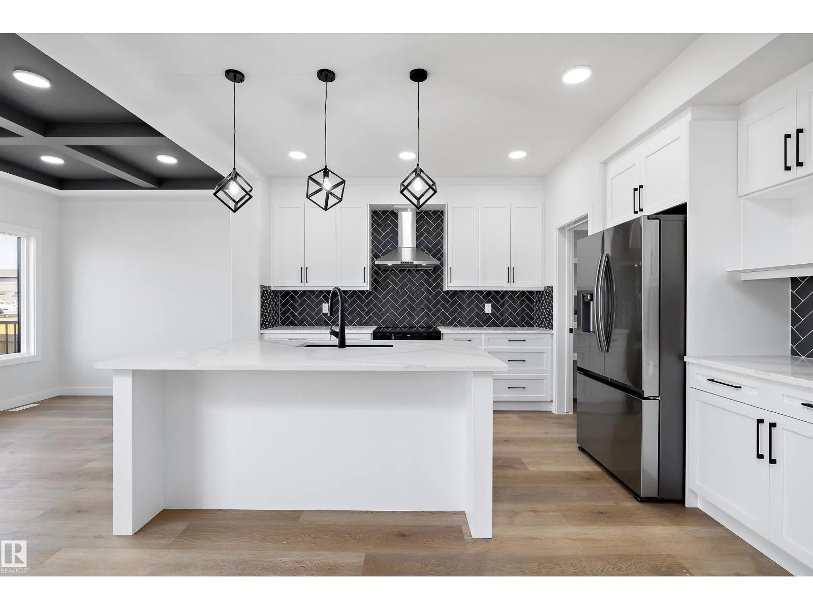 Welcome to this brand new 2179 SQFT, Lancaster II Model by award winning builder Blackstone Homes in upscale community of Cherot. The exceptional architectural & magnificent PARIS theme Playground makes this neighbourhood unique. As you enter, will be welcomed by nice foyer leading to a main floor bedroom perfect for work from home days/guest room, mudroom with built ins, walk through pantry leading to beautiful kitchen. Great room offers linear fireplace with feature wall, large kitchen & dining area with coffered ceiling. The 2nd floor offers 3 big size bedrooms, 2 full baths, bonus room & laundry room. Master bedroom is huge with beautiful spa like ensuite offering 2 sinks, shower & freestanding tub, huge WIC with access to the laundry room. Other features-9' main/basement ceiling, Separate entrance, maple railing, feature walls, MDF shelving, black fixtures, rear deck with metal railing, upgraded quartz and New Home Warranty. Great location - backing pond and close to park/Ray Gibbons/shopping. (id:27476)
