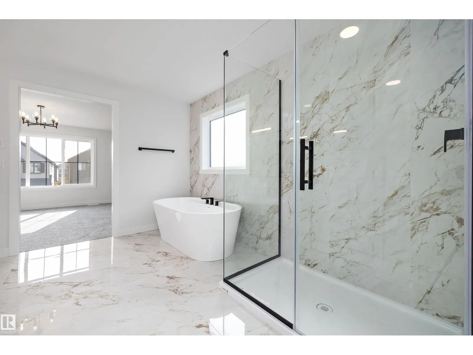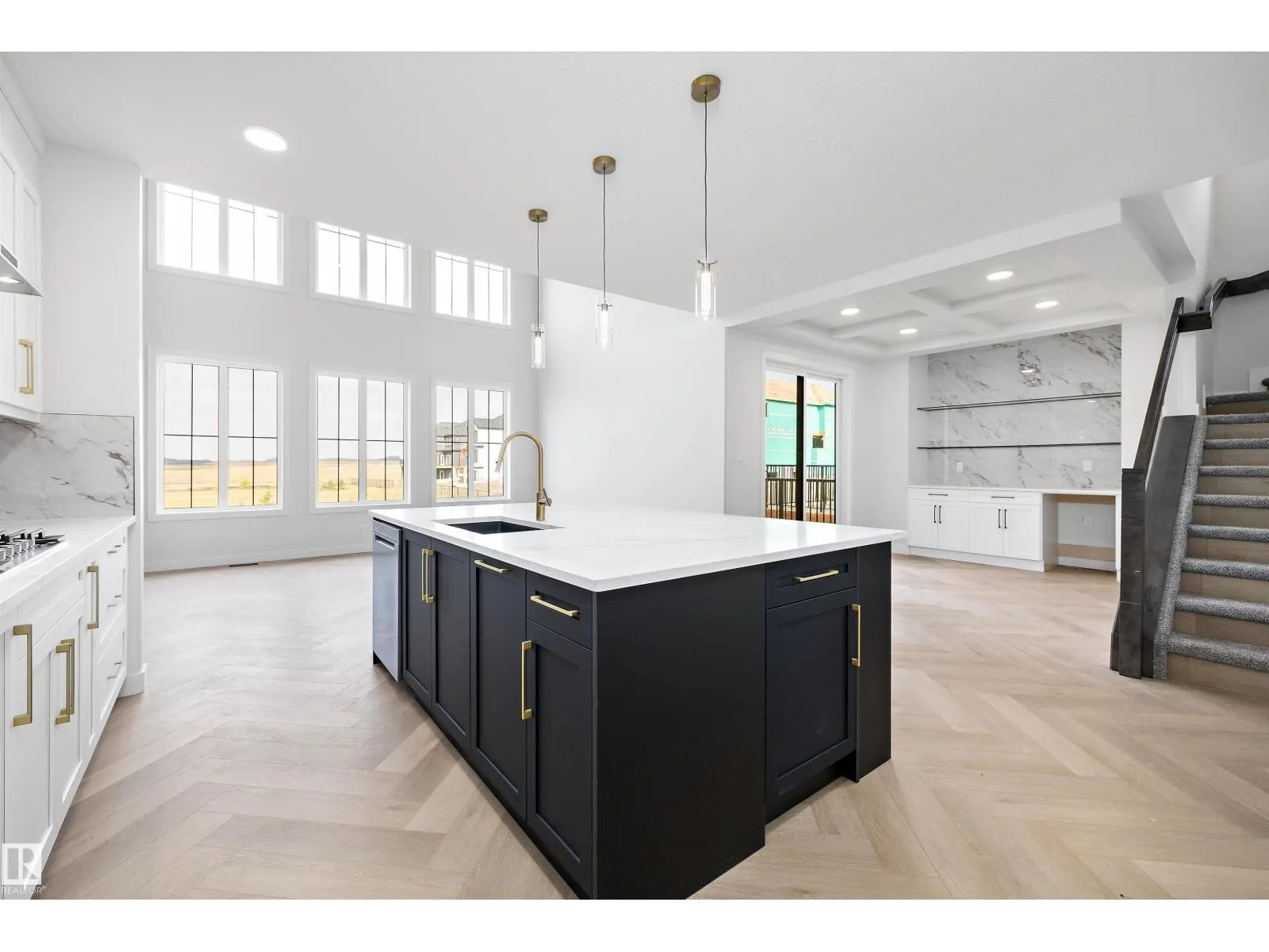 Welcome to this beautiful WALKOUT 2381 SQFT award winning OXFORD model by BLACKSTONE HOMES in Cherot, in St. Albert offering the exceptional architectural & magnificent PARIS Playground making this neighbourhood unique. This model won the best home with BILD awards 2024. As you enter, you will be impressed by the huge foyer, main floor den, dining room with bar, great room offering open to below high ceiling with coffered ceiling, linear fireplace with stone, chef's dream kitchen offering fridge/freezer combo, up to the ceiling, soft closing cabinets with huge island, built in appliances, much needed mudroom with built ins & bench. On the 2nd floor you will find 3 bedrooms, 2 baths, laundry room, bonus room with fireplace & overlooking the great room. Master bedroom offers luxury ensuite with double sink, frameless upgraded shower, tub & huge WIC. Other features - 9' main/basement ceiling, upgrade quartz , MDF Shelving, black plumbing & fixtures, New Home Warranty. Close to all amenities & Ray Gibbons DR. (id:27476)