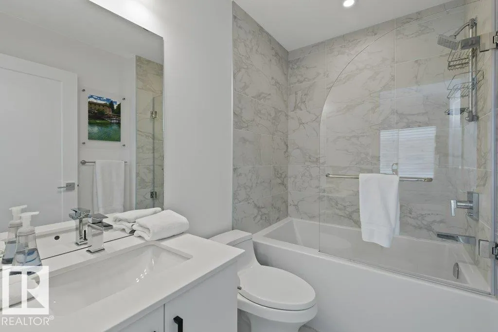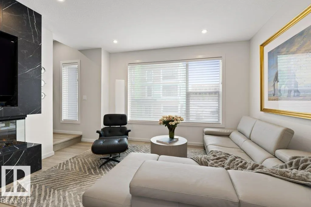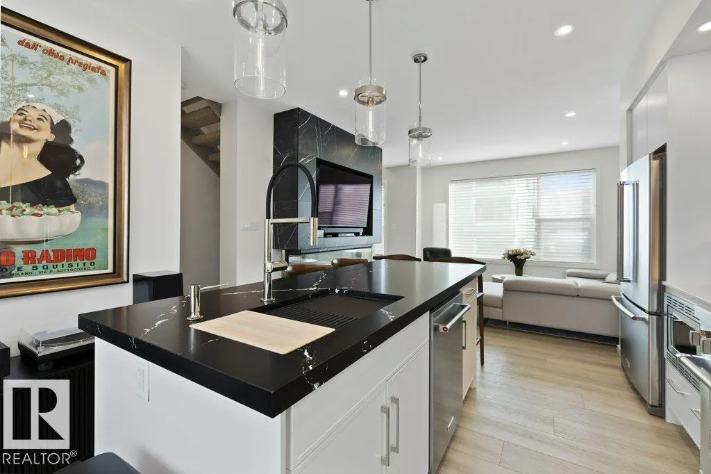 Welcome to Midtown by Averton, a luxurious townhome community like no other in St. Albert. With over $150,000 in UPGRADES, ROOF TOP PATIO & the best views in the complex this gorgeous 3-storey home is BETTER THAN NEW. Featuring 2 bedrooms both w/luxurious ensuites & custom closets, chef inspired kitchen and elegant dining area. Upgrades include a custom kitchen w/extra cabinet storage, floating shelves, Professional Series Kitchen Aid appliance package, bar fridge, gas stove, luxury vinyl plank flooring, whole house soft water system, Air Conditioning, charcoal & UV Light Air Filtration, exquisite imported light fixtures, Kohler intelligence toilet, Kohler sinks & hand towel bars plus Hunter Douglas Silhouette blinds. Top it off with a completely finished double attached garage w/ POLYASPARTIC COATED FLOOR & TESLA EV CHARGING UNIT. Enjoy a luxurious, low maintenance lifestyle like no other. Say goodbye to shoveling snow, cutting grass & building maintenance. But don't wait, this home will not last! (id:27476)
