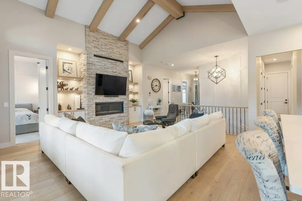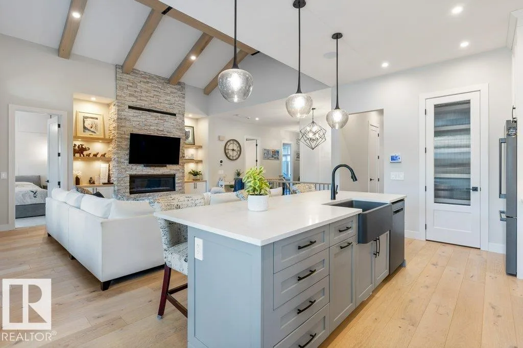Welcome to this exquisite executive bungalow, situated on a large, beautifully landscaped lot. Every inch of this property exudes quality & comfort. Step inside & be greeted by an open-concept great room featuring soaring vaulted ceilings, striking stone fireplace & expansive windows that bathe the home in natural light. The chef-inspired kitchen is a showstopper, boasting a Bosch appliance package, gas cooktop & custom coffee station. The main floor primary suite is a luxurious retreat, complete with a 5-pc ensuite featuring dual vanities, a deep soaker tub & walk-in shower. The main floor office provides the perfect work-from-home space. Downstairs, the fully finished basement offers two spacious bedrooms, family room, games area & wet bar, making it an entertainerâs dream. Enjoy outdoor living on the covered deck, overlooking the manicured yardâa serene & private escape for morning coffee or evening gatherings. The triple garage comes with an EV plug-in. Central A/C and home automation throughout! (id:27476)