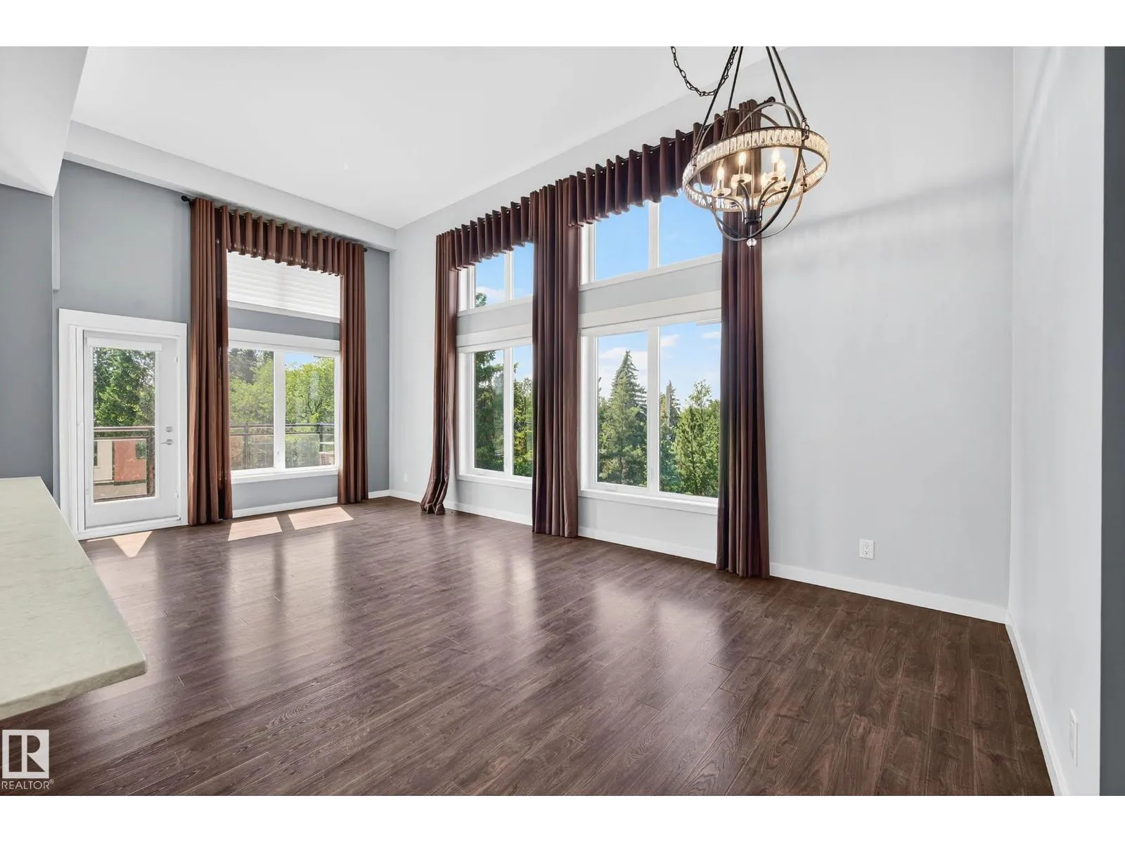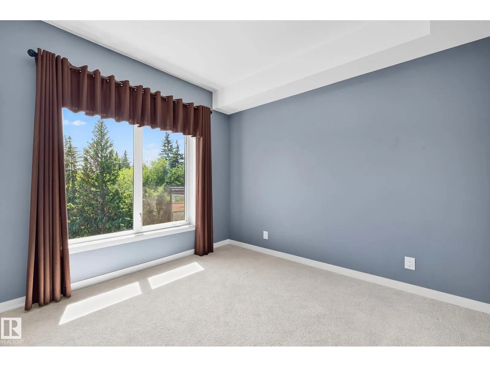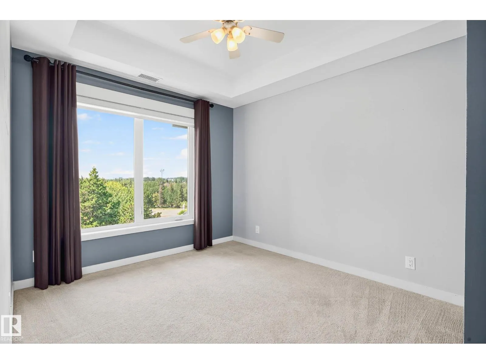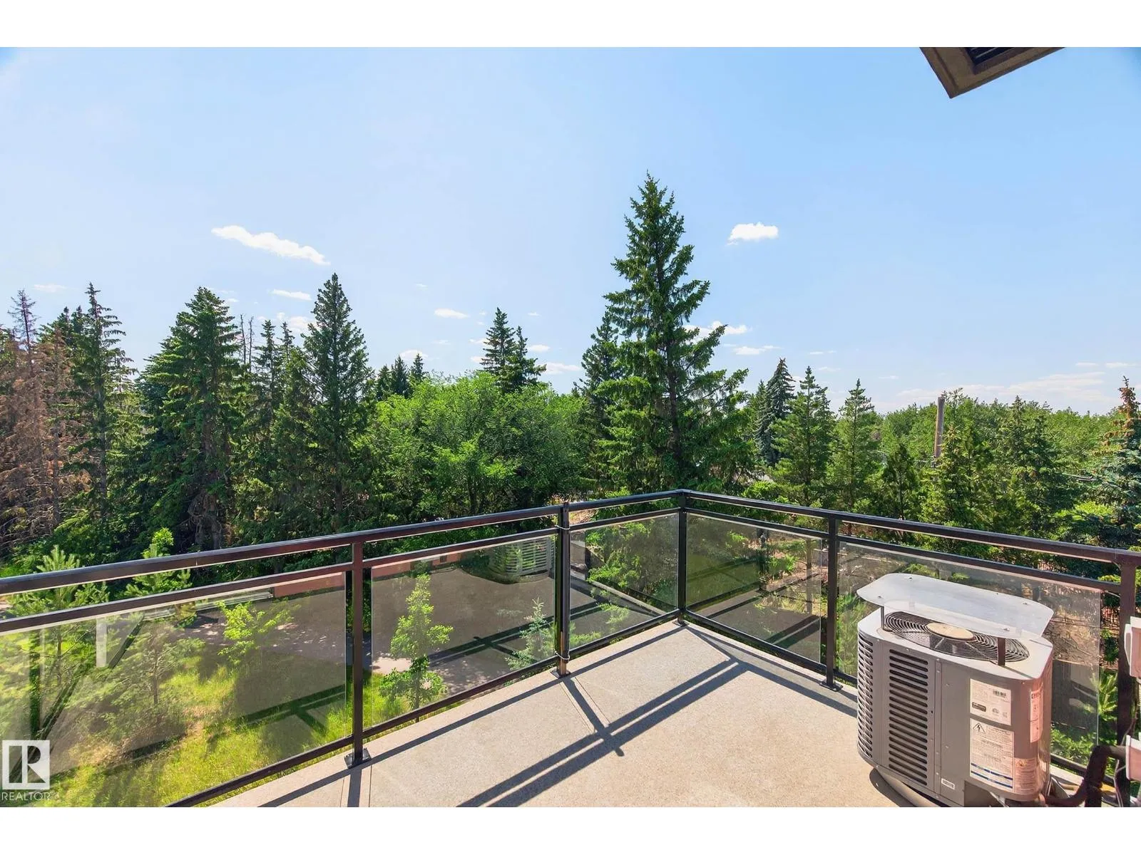 Penthouse end unit with fantastic view of Grenadier Park, and the City skyline. 3 bedrooms plus den with 13 ft ceilings, awesome kitchen with granite countertops and stainless appliances. The large primary bedroom includes shelving, walk in closet, 3 piece ensuite bath. Two more bedrooms and a den make this unit feel larger than life. Upgrades include fixtures, custom built shelving in all closets and pantry, remote control blinds, higher profile toilets, and extra drawers in vanities. Comes with 2 titled underground parking stalls plus storage space. The views from the balcony lit up with the lighted railings, are excellent! Great location with access to the Farmers Market, downtown St Albert and all amenities, public transit close by and easy access to Anthony Henday on Sir Winston Churchill Ave. Creme de la Creme! (id:27476)