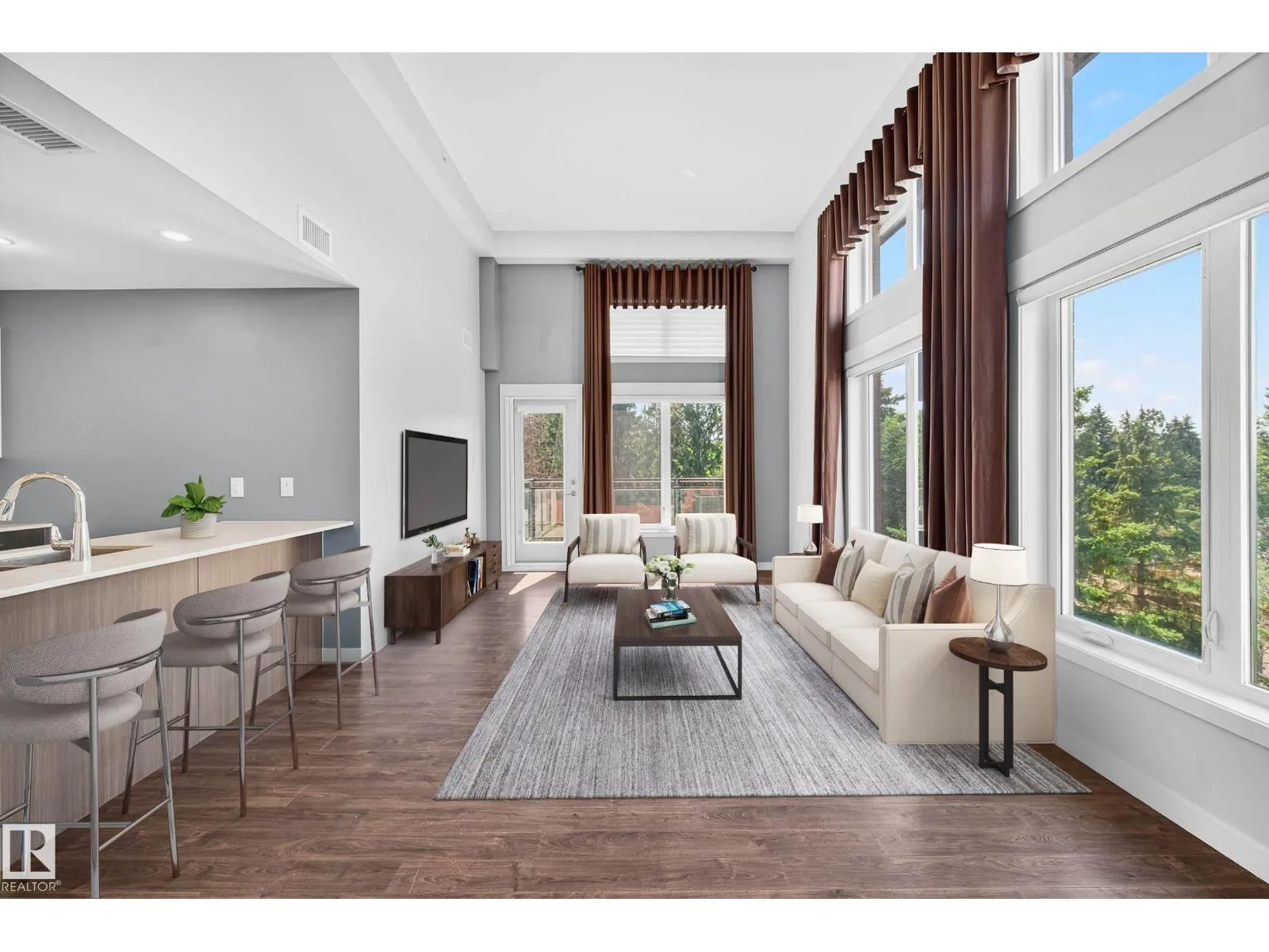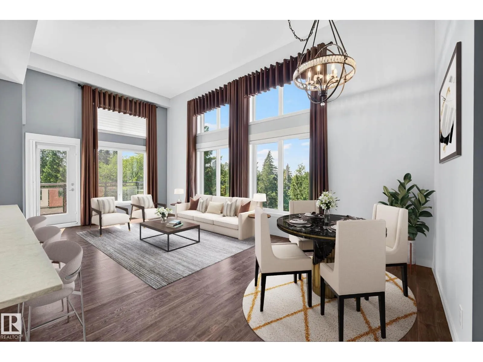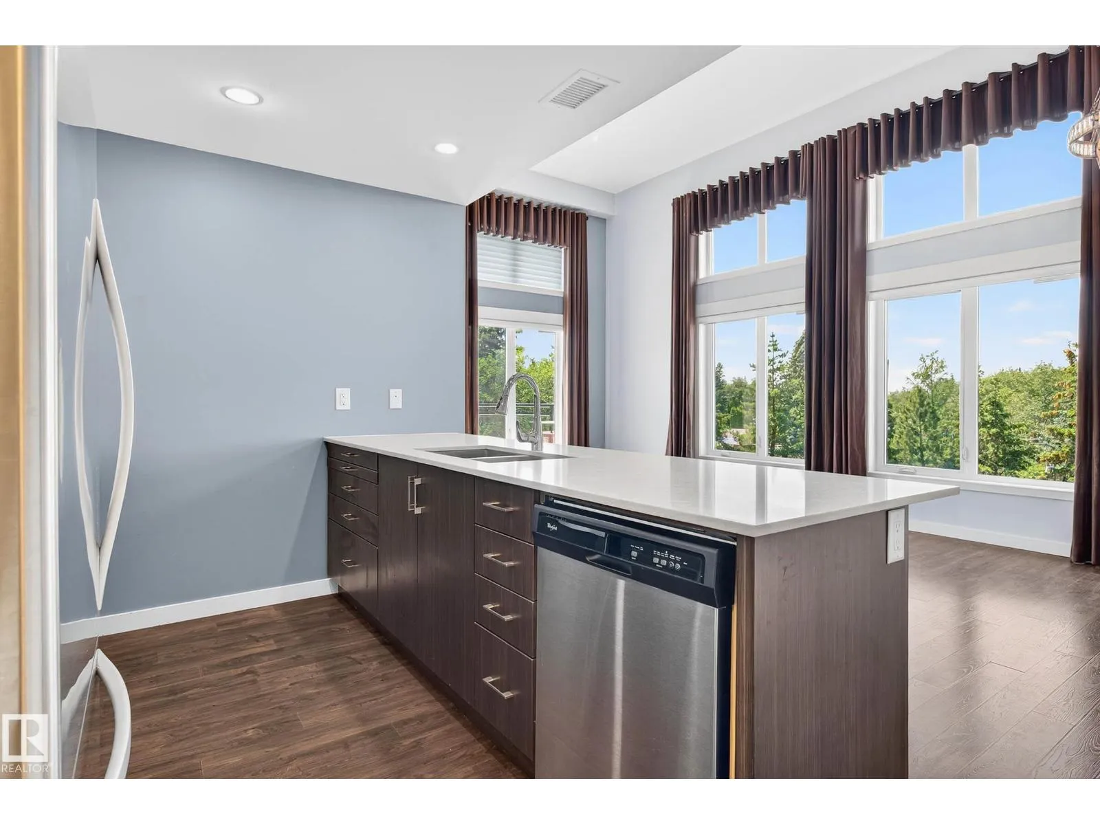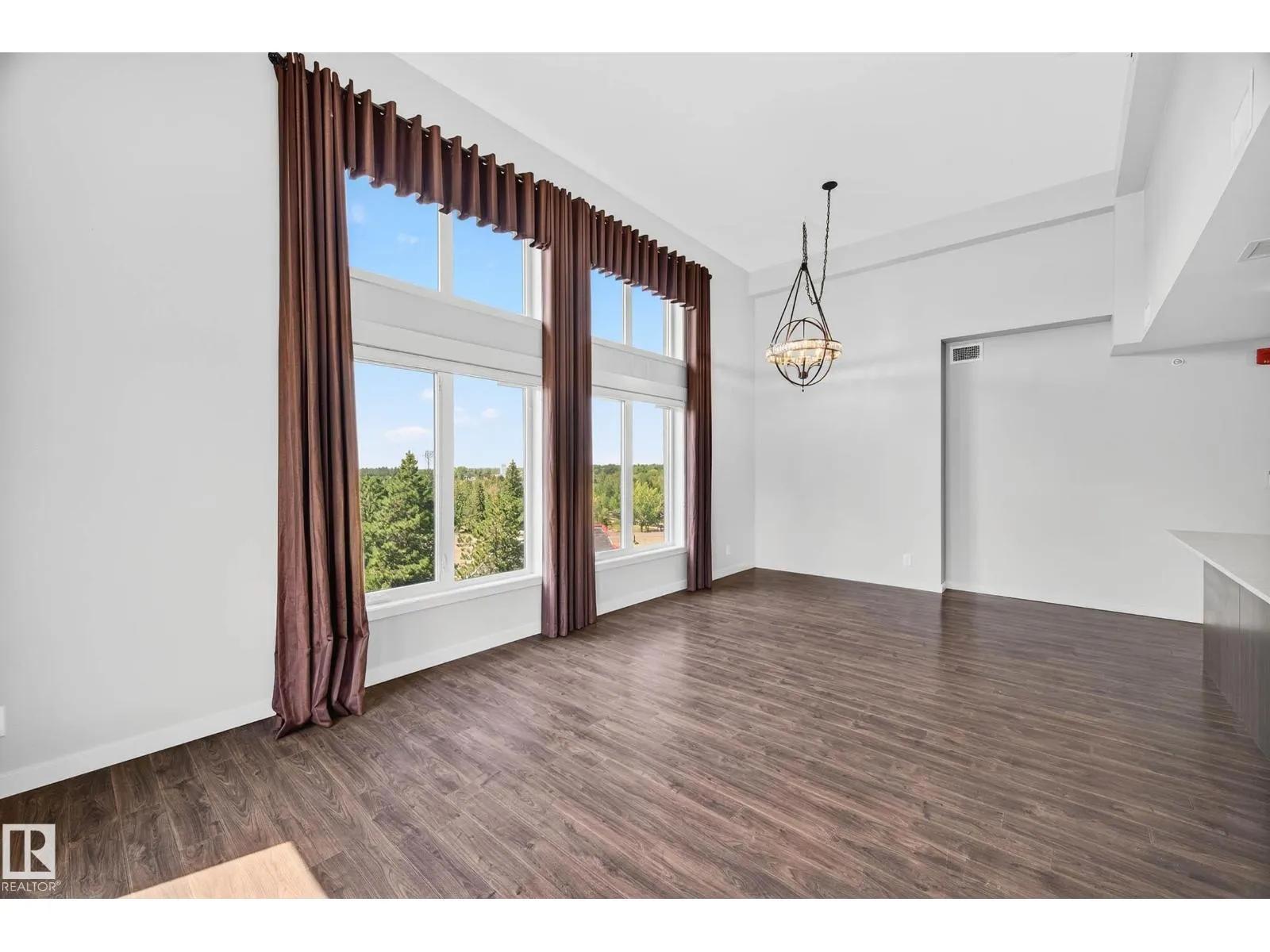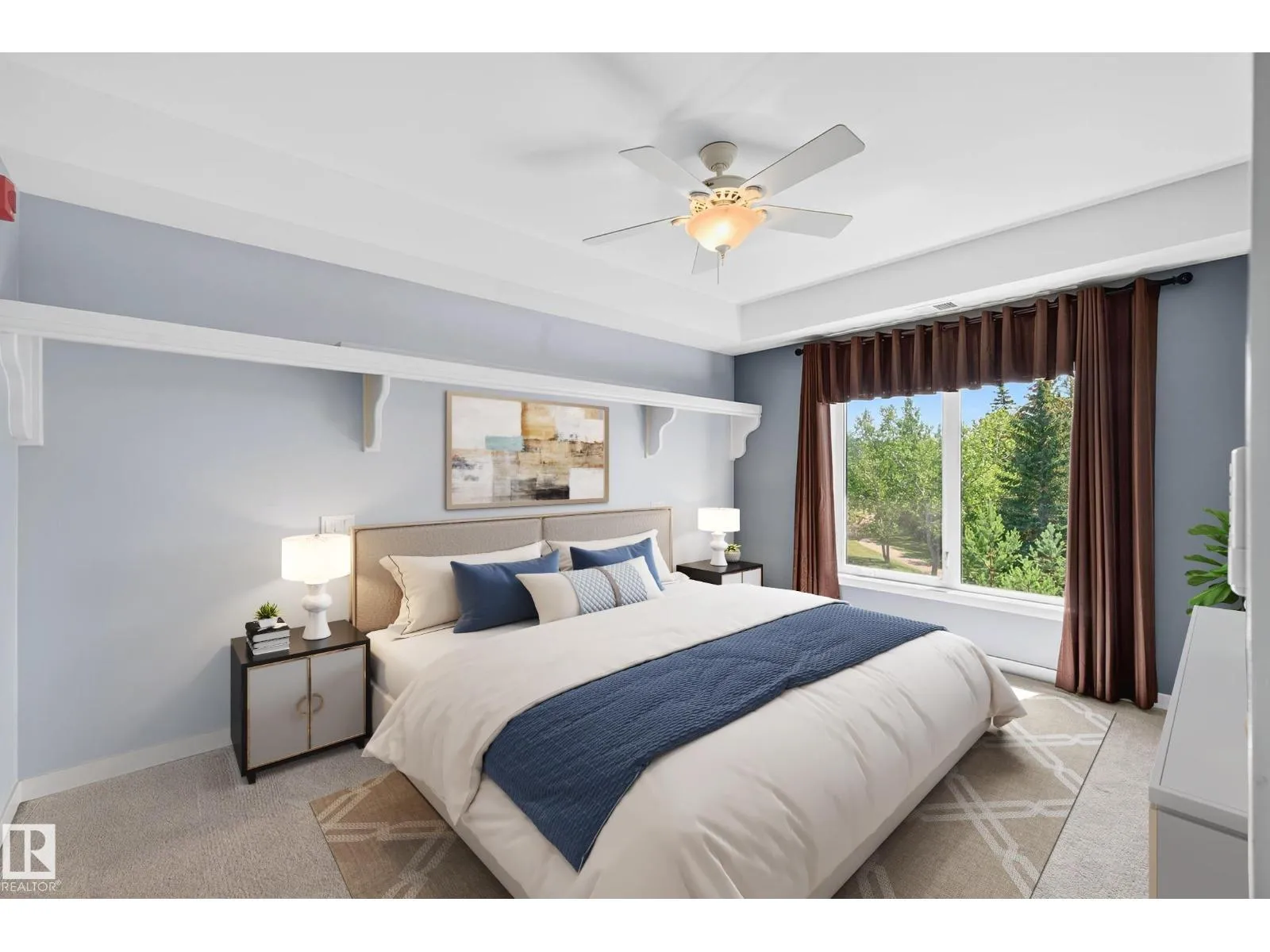 Penthouse end unit with fantastic view of Grenadier Park, and the City skyline. 3 bedrooms plus den with 13 ft ceilings, awesome kitchen with granite countertops and stainless appliances. The large primary bedroom includes shelving, walk in closet, 3 piece ensuite bath. Two more bedrooms and a den make this unit feel larger than life. Upgrades include fixtures, custom built shelving in all closets and pantry, remote control blinds, higher profile toilets, and extra drawers in vanities. Comes with 2 titled underground parking stalls plus storage space. The views from the balcony lit up with the lighted railings, are excellent! Great location with access to the Farmers Market, downtown St Albert and all amenities, public transit close by and easy access to Anthony Henday on Sir Winston Churchill Ave. Creme de la Creme! (id:27476)
