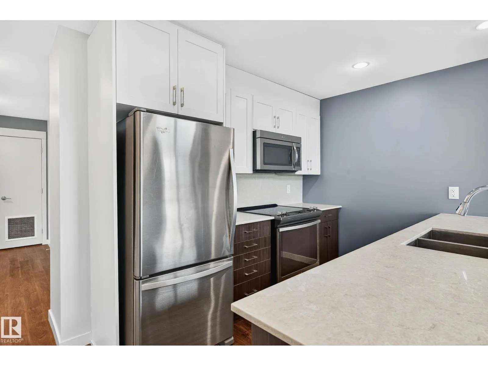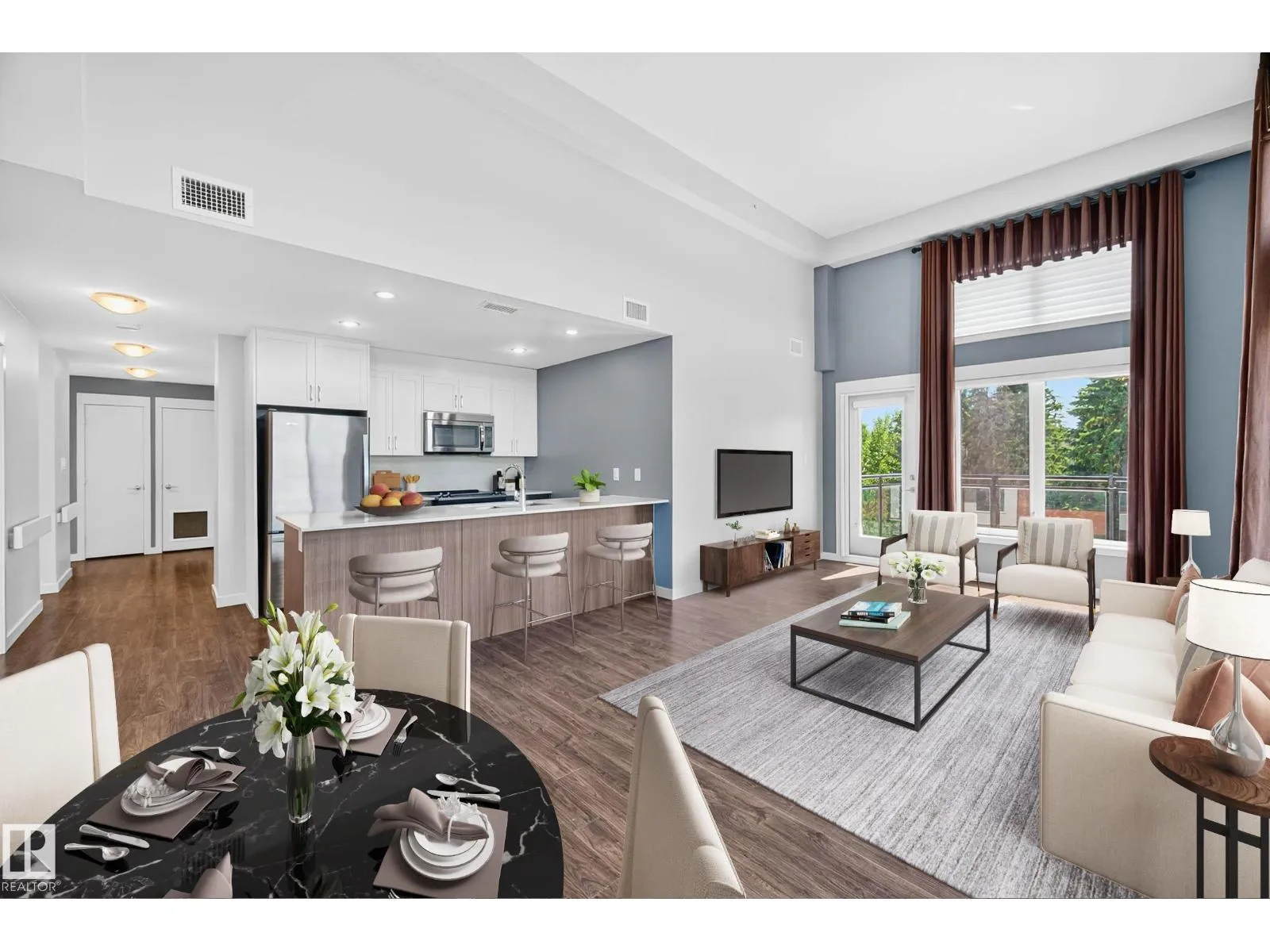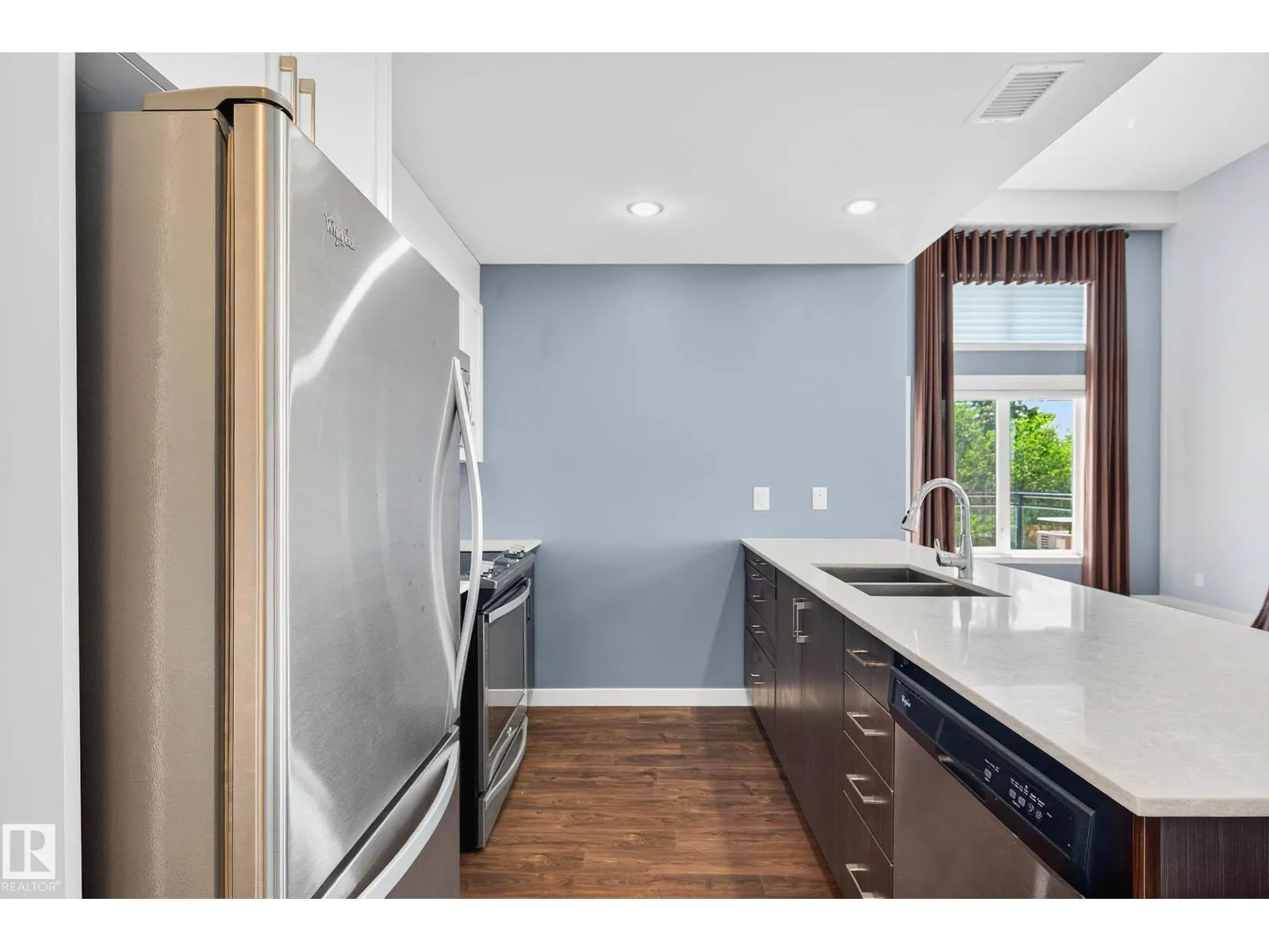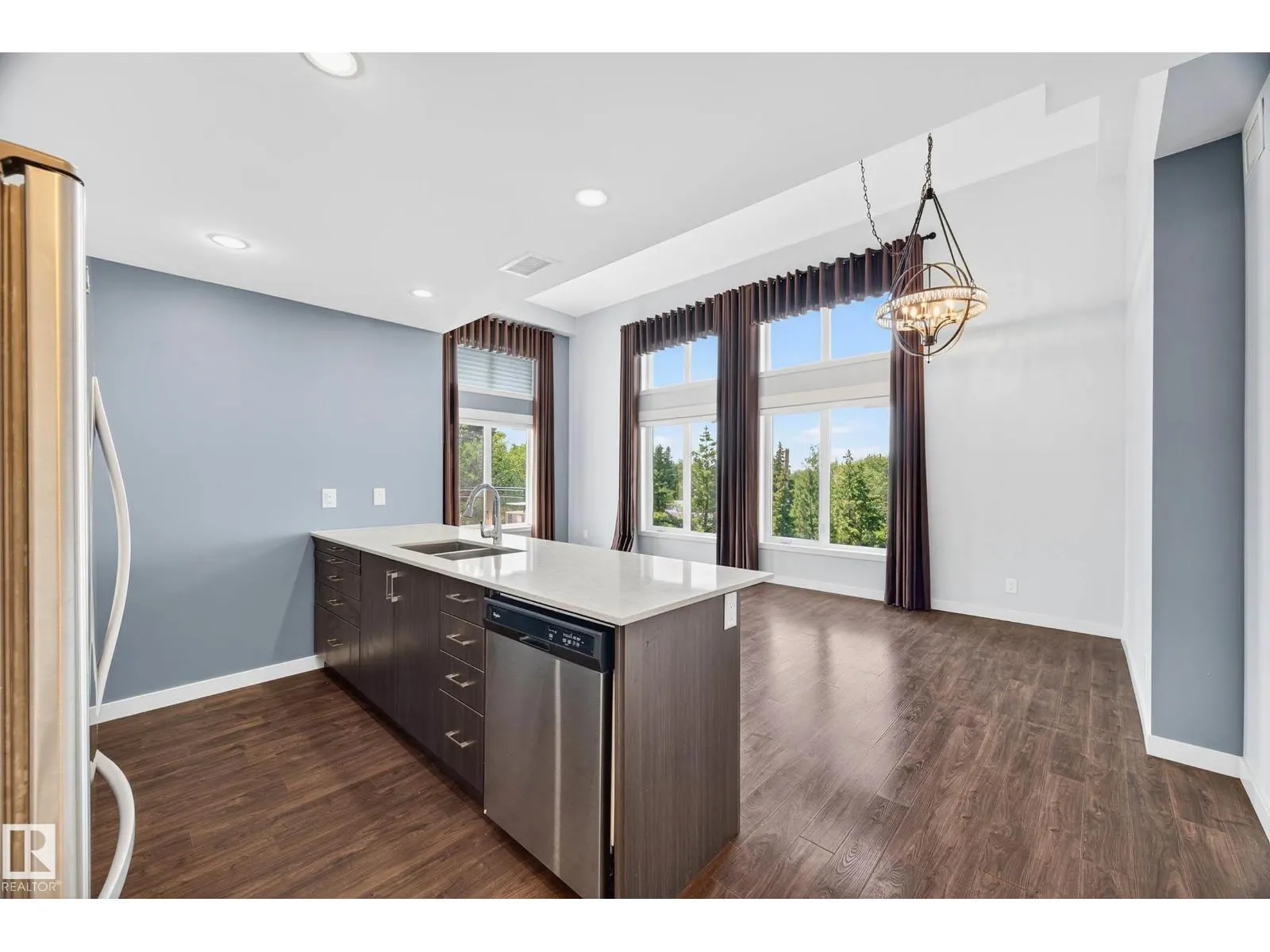 Penthouse end unit with fantastic view of Grenadier Park, and the City skyline. 3 bedrooms plus den with 13 ft ceilings, awesome kitchen with granite countertops and stainless appliances. The large primary bedroom includes shelving, walk in closet, 3 piece ensuite bath. Two more bedrooms and a den make this unit feel larger than life. Upgrades include fixtures, custom built shelving in all closets and pantry, remote control blinds, higher profile toilets, and extra drawers in vanities. Comes with 2 titled underground parking stalls plus storage space. The views from the balcony lit up with the lighted railings, are excellent! Great location with access to the Farmers Market, downtown St Albert and all amenities, public transit close by and easy access to Anthony Henday on Sir Winston Churchill Ave. Creme de la Creme! (id:27476)