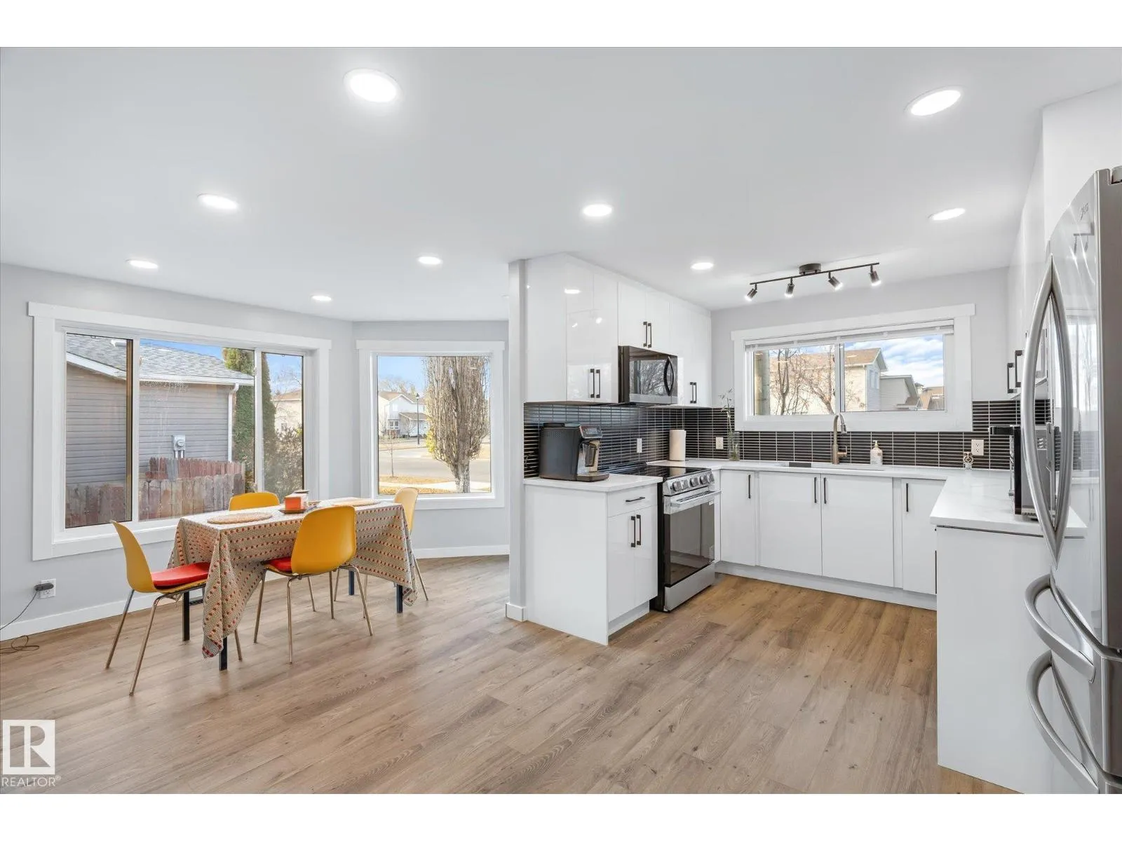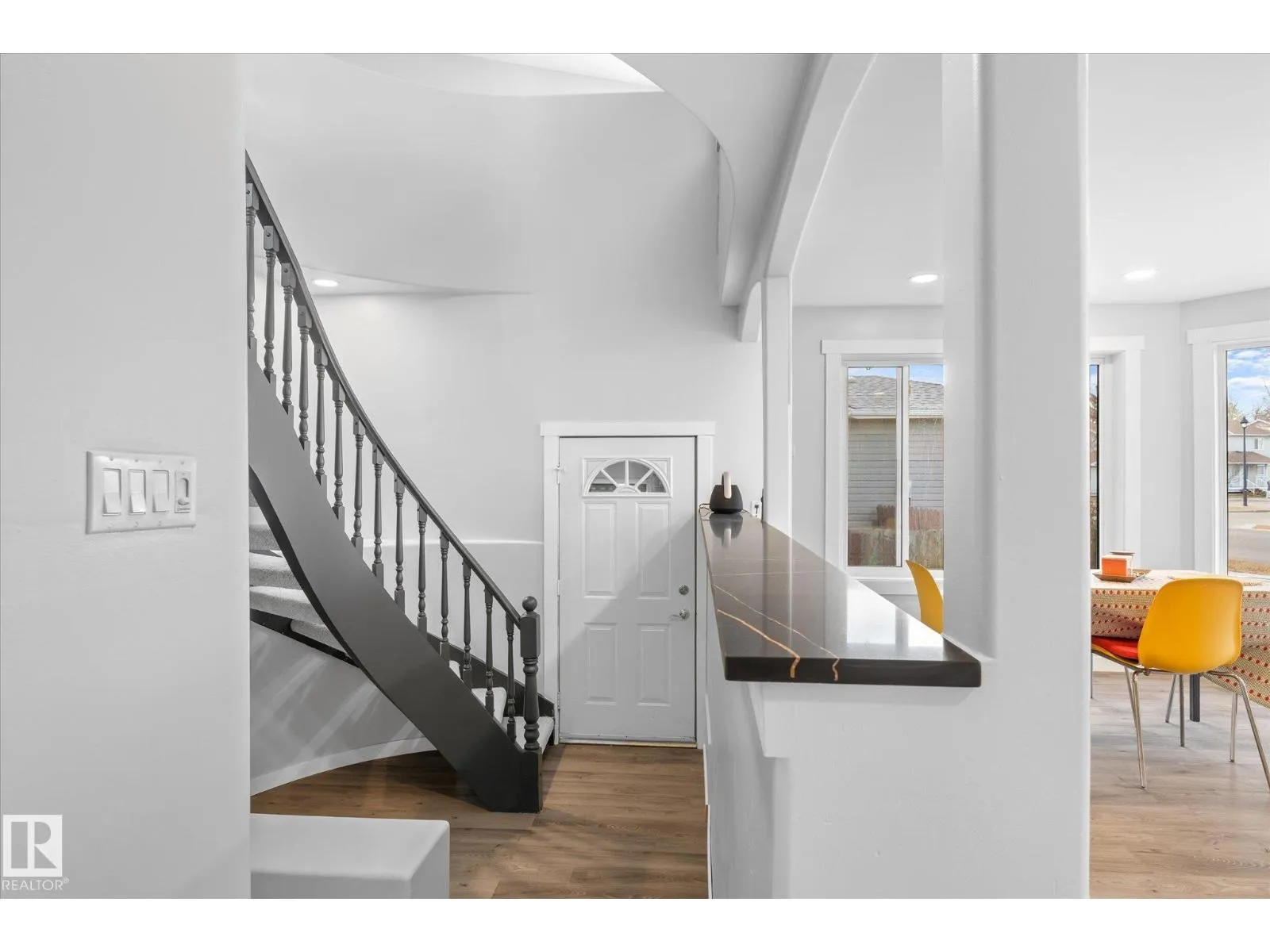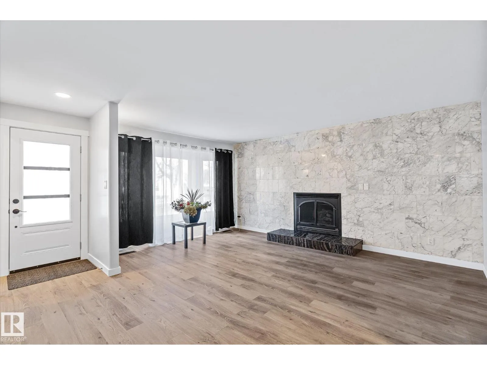 Beautifully renovated 4-bed, 3-bath home offering modern style and functionality. The main floor features 3 bedrooms, 2 bathrooms, an open-concept living area with elegant archways, newer flooring, and a marble-tiled fireplace. Enjoy the indoor hot tub for year-round relaxation. The bright kitchen boasts white cabinetry, quartz countertops, black backsplash, and stainless steel appliances. Upstairs offers a private bedroom, full bath, fireplace and large balcony. The basement, with side entrance, includes a full kitchen and private laundry. (id:27476)