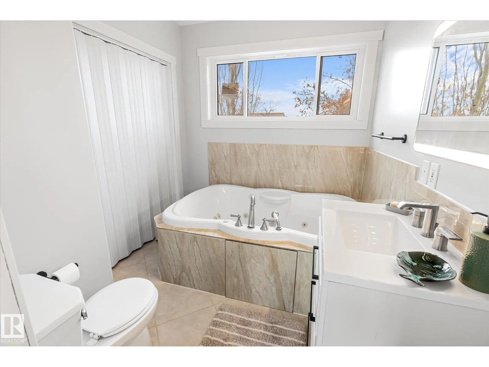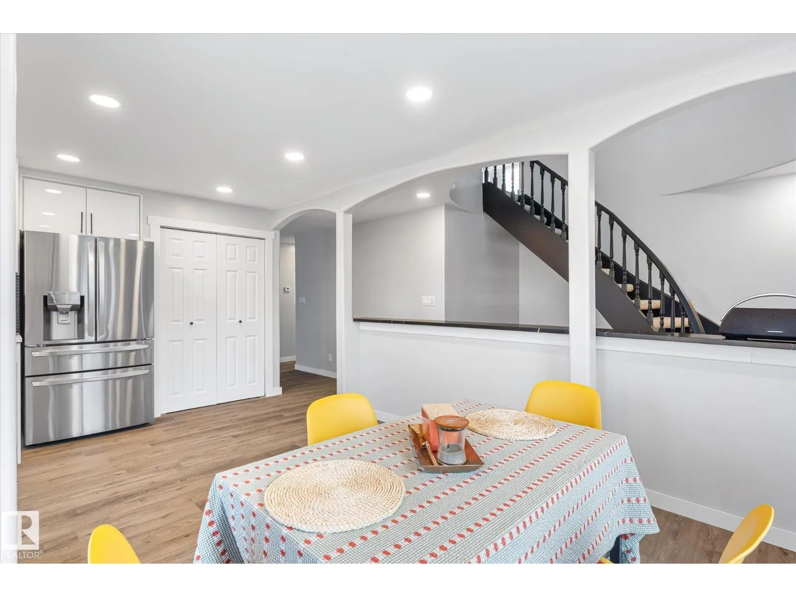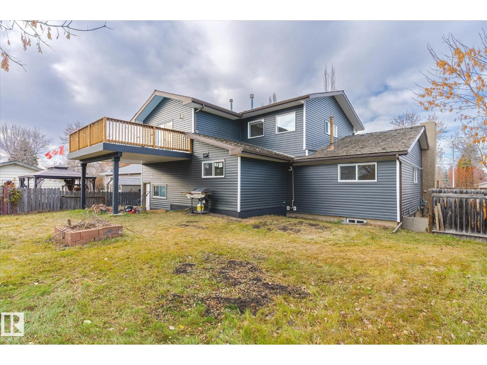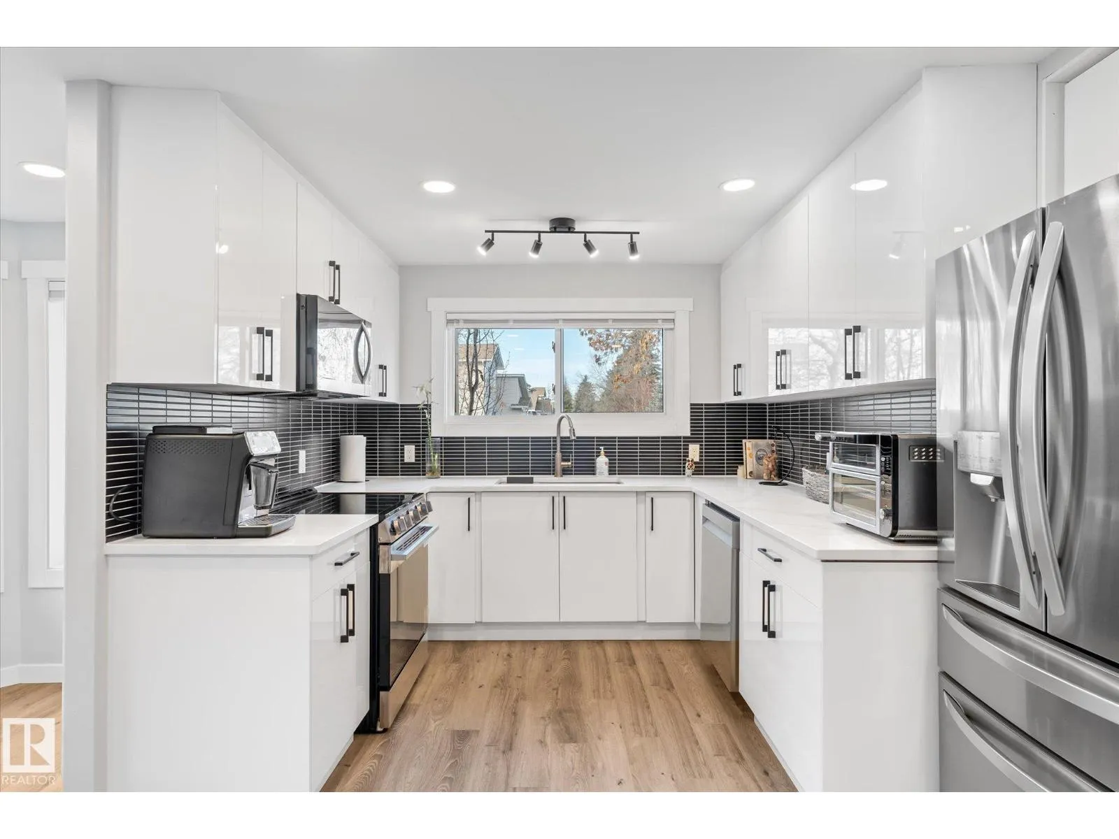 Beautifully renovated 4-bed, 3-bath home offering modern style and functionality. The main floor features 3 bedrooms, 2 bathrooms, an open-concept living area with elegant archways, newer flooring, and a marble-tiled fireplace. Enjoy the indoor hot tub for year-round relaxation. The bright kitchen boasts white cabinetry, quartz countertops, black backsplash, and stainless steel appliances. Upstairs offers a private bedroom, full bath, fireplace and large balcony. The basement, with side entrance, includes a full kitchen and private laundry. (id:27476)