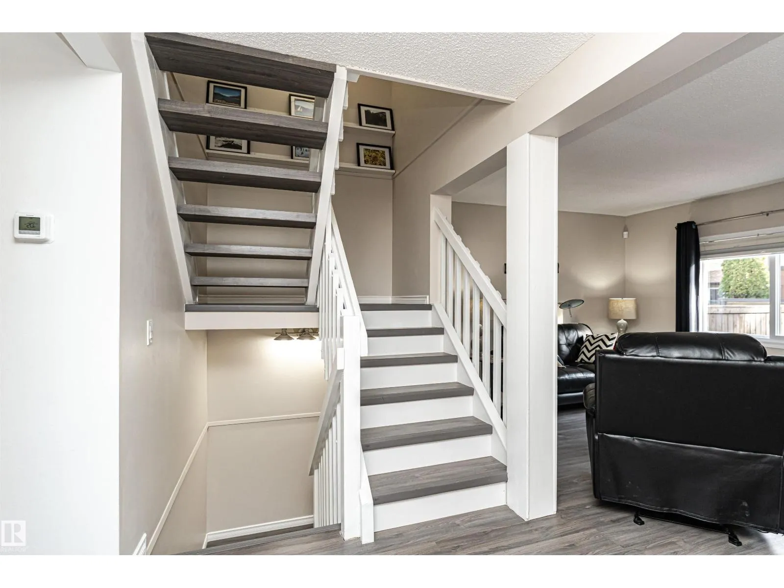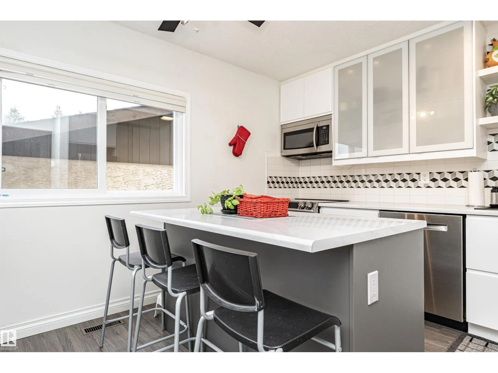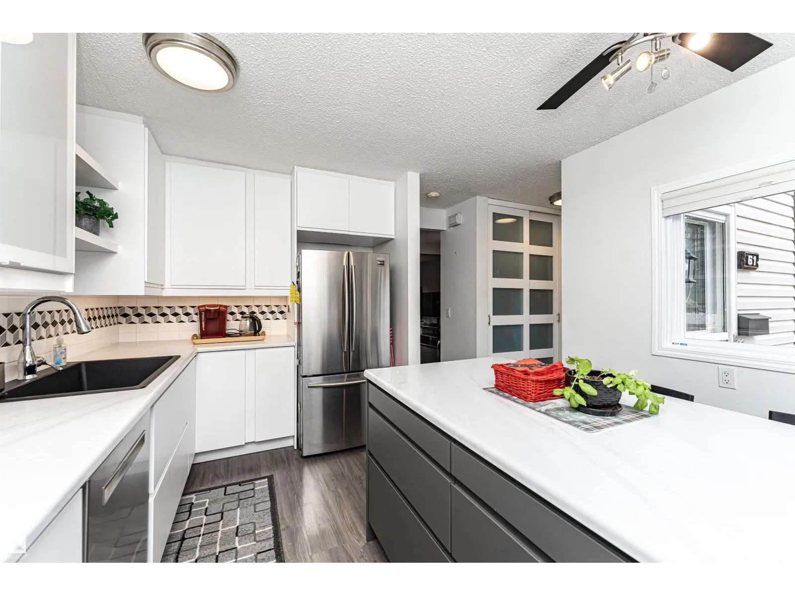 Welcome to 61 Forest Grove III, where style and comfort meet. Enjoy a beautifully renovated, sun-filled kitchen featuring ceiling-height soft-close white cabinetry, stainless steel appliances, a modern backsplash, and a generous island with ample storage. New laminate flooring flows throughout the home, including the fully finished lower level. The main floor offers an open-concept living/dining area and an updated ½ bath for your guests. Upstairs, you'll find two spacious bedrooms and a refreshed 4-pc bath. The primary suite is a relaxing retreat, easily fitting a king size bed and includes a large walk-in closet. The lower level adds a laundry room and a perfect media or workout space. Step outside to your private east-facing patio and yard, backing onto greenspace and mature trees, or stay cool inside with central A/C. The finishing touches are all new windows, a single garage and an extra parking pad. Close to schools, parks, and shopping and perfect for families and first-time buyers alike. (id:27476)