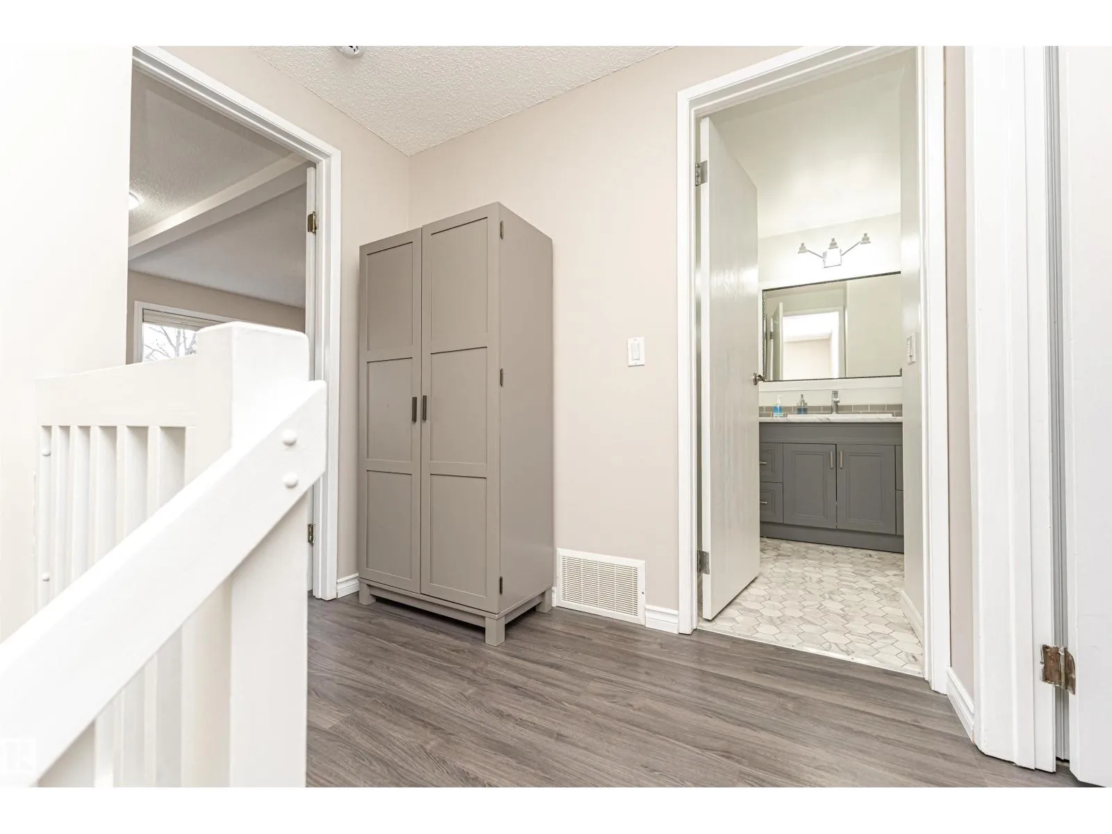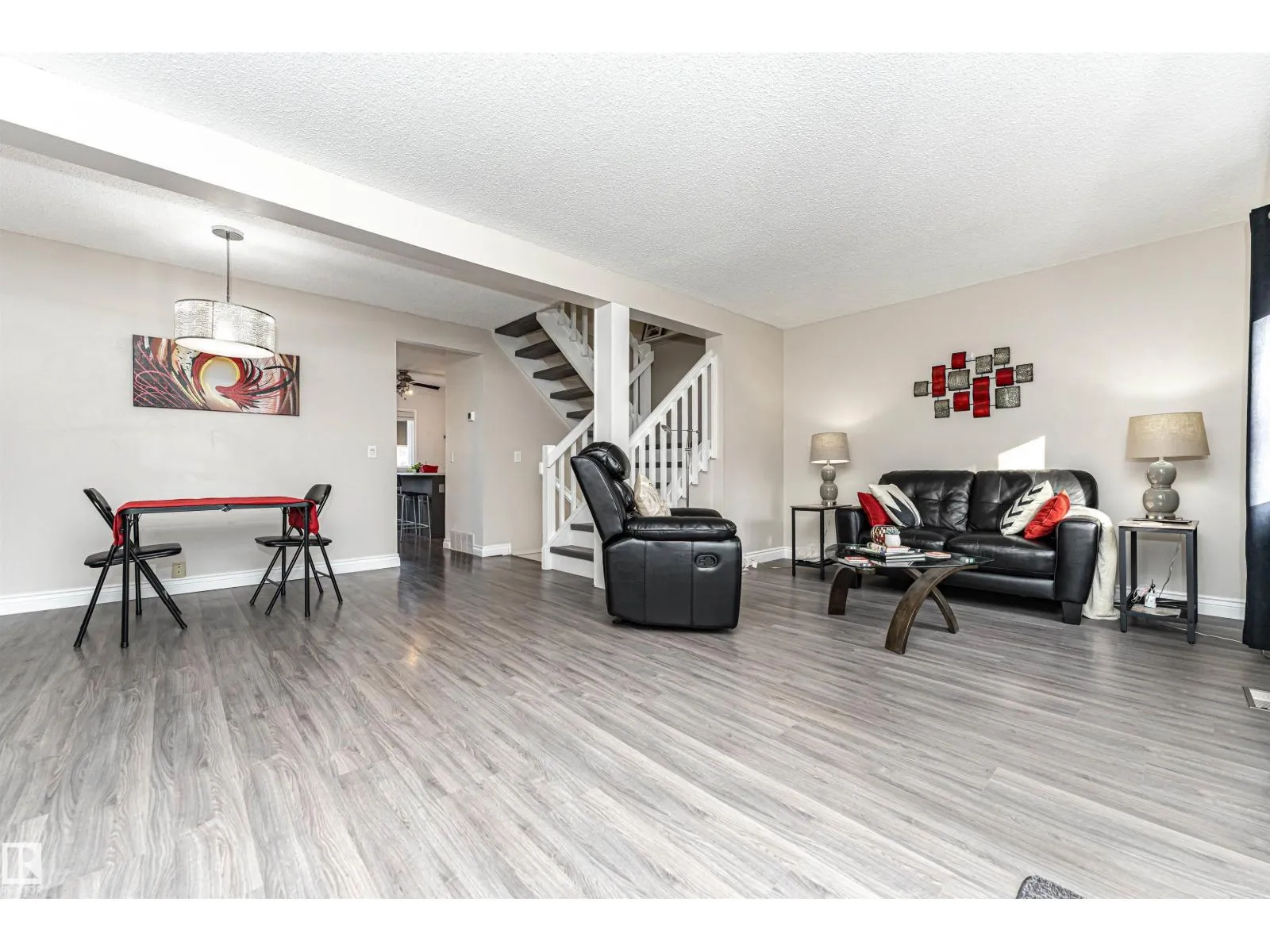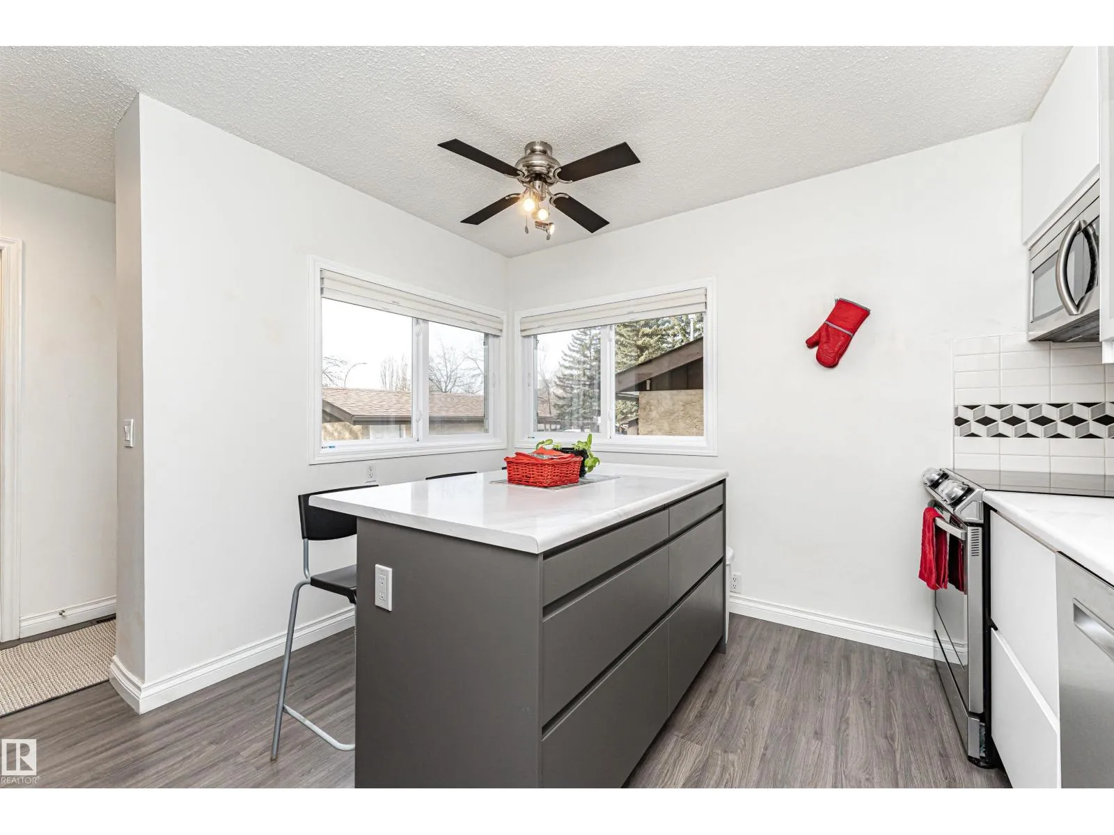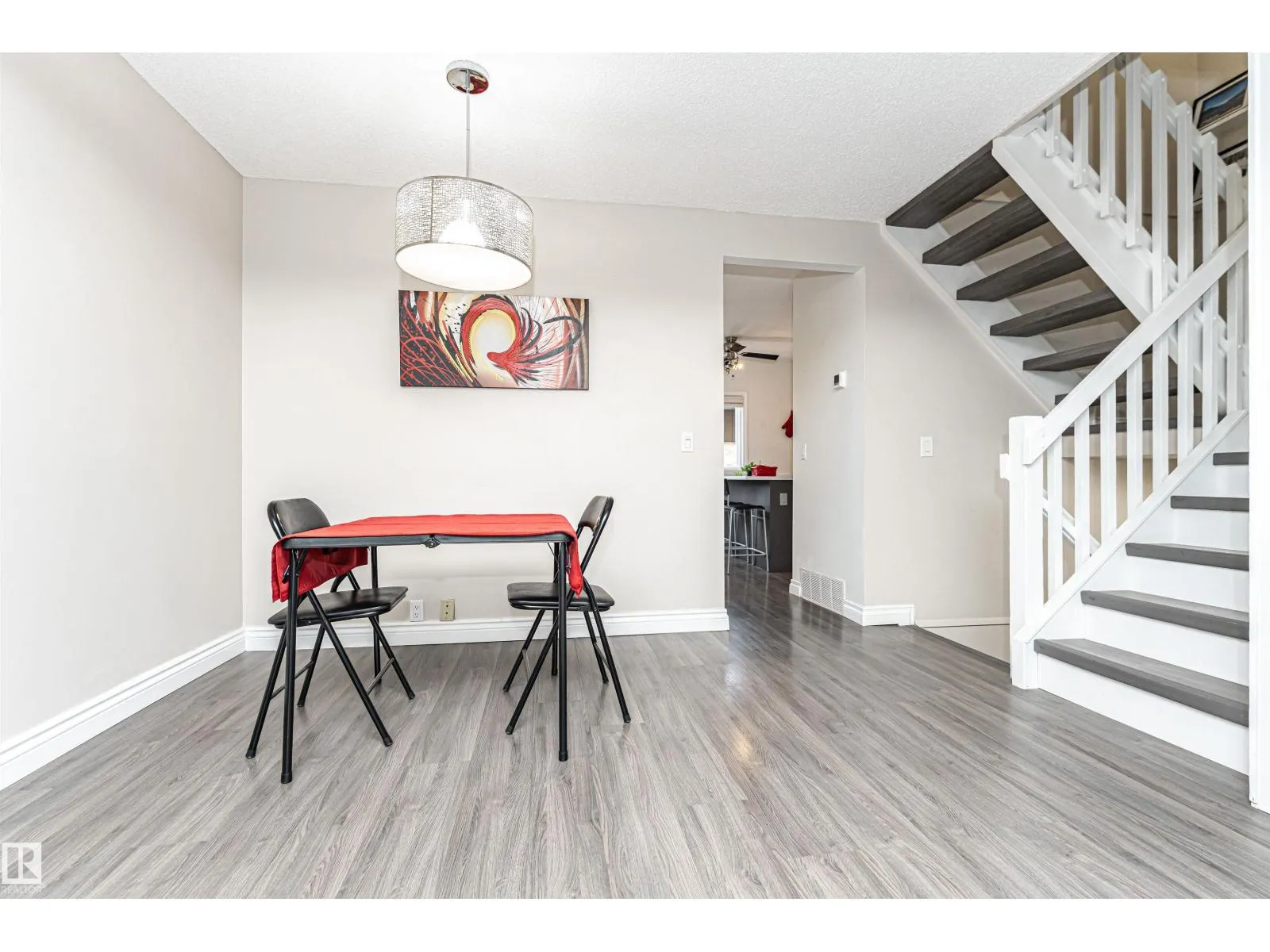 Welcome to 61 Forest Grove III, where style and comfort meet. Enjoy a beautifully renovated, sun-filled kitchen featuring ceiling-height soft-close white cabinetry, stainless steel appliances, a modern backsplash, and a generous island with ample storage. New laminate flooring flows throughout the home, including the fully finished lower level. The main floor offers an open-concept living/dining area and an updated ½ bath for your guests. Upstairs, you'll find two spacious bedrooms and a refreshed 4-pc bath. The primary suite is a relaxing retreat, easily fitting a king size bed and includes a large walk-in closet. The lower level adds a laundry room and a perfect media or workout space. Step outside to your private east-facing patio and yard, backing onto greenspace and mature trees, or stay cool inside with central A/C. The finishing touches are all new windows, a single garage and an extra parking pad. Close to schools, parks, and shopping and perfect for families and first-time buyers alike. (id:27476)
