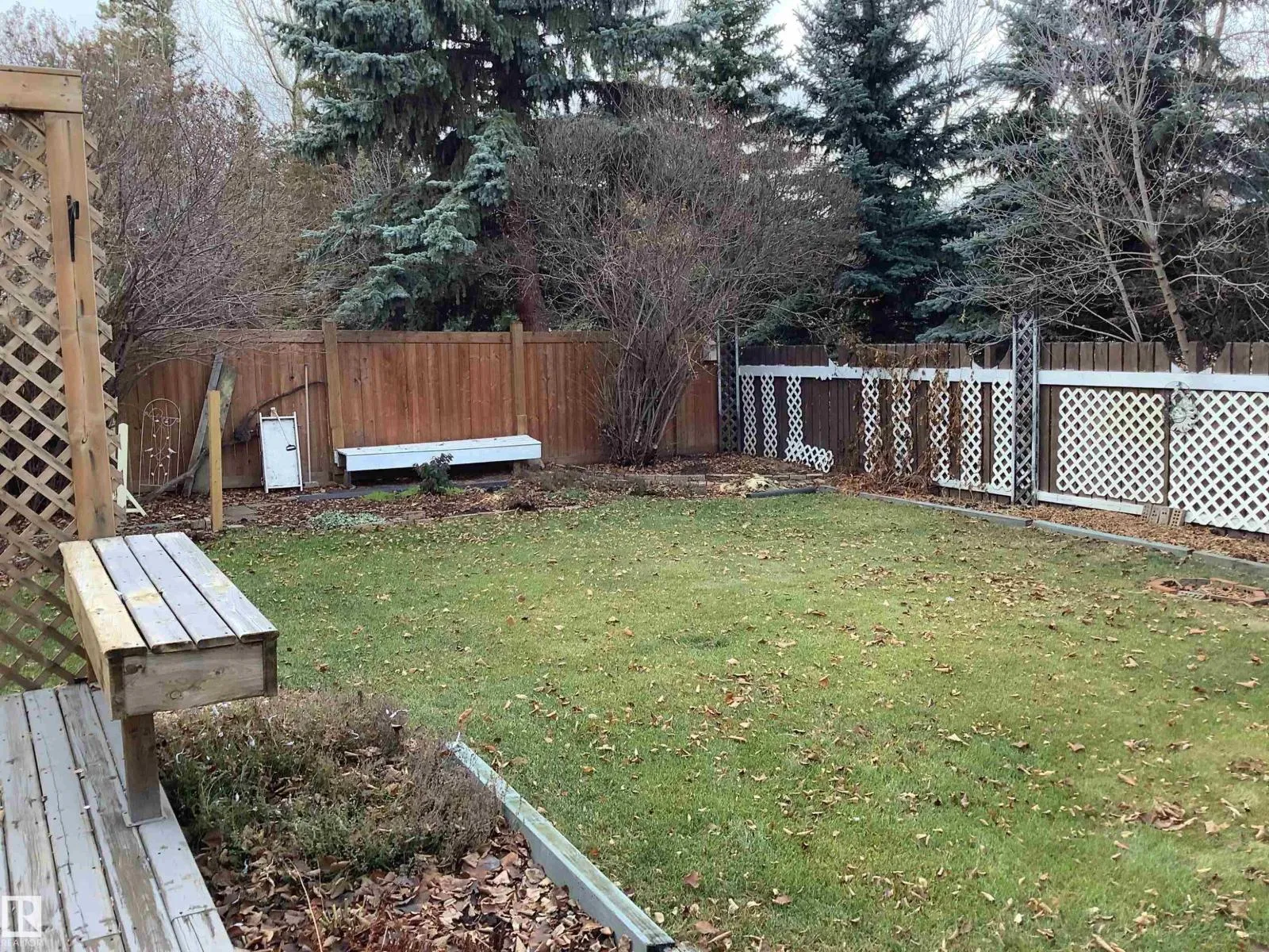Wonderful in Woodlands. This well kept home boasts many improvements including but not limited to, new Windows, Eavestroughs, Hot Water Tank (2025), Shingles and Deck (2021) and much more. Located close to Schools, Red Willow Park and a stones throw to Botanical Gardens literally. The main level includes a bright front living room with an office/den, the kitchen overlooks the family room with a wood burning fireplace. Upstairs the primary bedroom includes a walk-in closet and 3 piece bath plus 2 more bedrooms. The partially finished basement is great for hobbies or a play room for the kids. (id:27476)