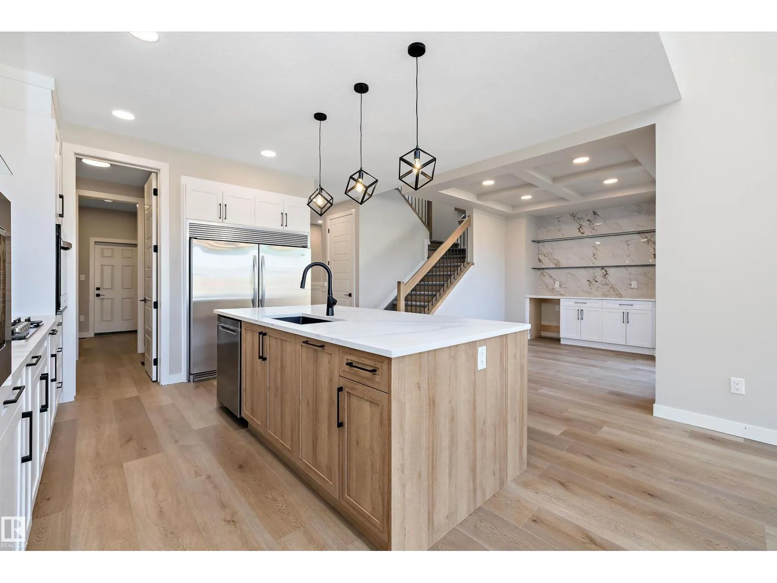 Welcome to this beautiful 2168 SQFT award winning OXFORD model by BLACKSTONE HOMES in Cherot, in St. Albert offering the exceptional architectural & magnificent PARIS Playground making this neighbourhood unique. This model won the best home with BILD awards 2024. As you enter, you will be impressed by the huge foyer, main floor den, dining room with bar, great room offering open to below 18 feet ceiling, linear fireplace with tiles/wood finish, chef's dream kitchen offering fridge/freezer combo, soft closing cabinets with huge island, built in appliances, much needed mudroom with built ins & bench. On 2nd floor you will find 3 bedrooms, 2 baths, laundry room, bonus room overlooking the great room. Master bedroom offers luxury ensuite with double sink, frameless upgraded shower, stand alone tub & huge WIC. Other features - 9' main/basement ceiling, Seprate entrance, upgrade quartz , MDF Shelving, black plumbing & fixtures, rear deck & New Home Warranty. Close to all amenities and Ray Gibbons Dr. (id:27476)