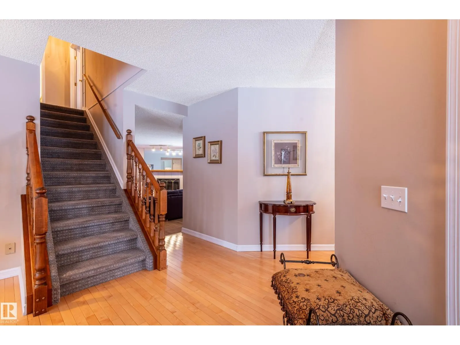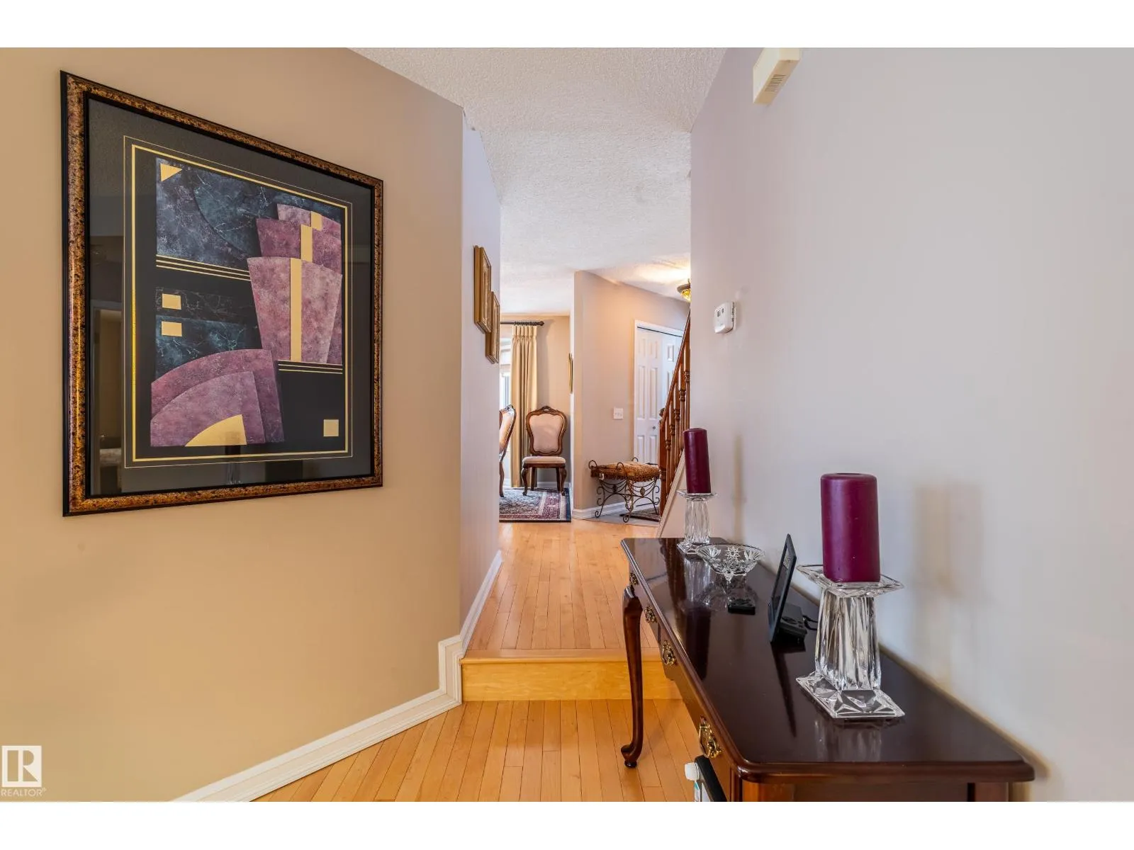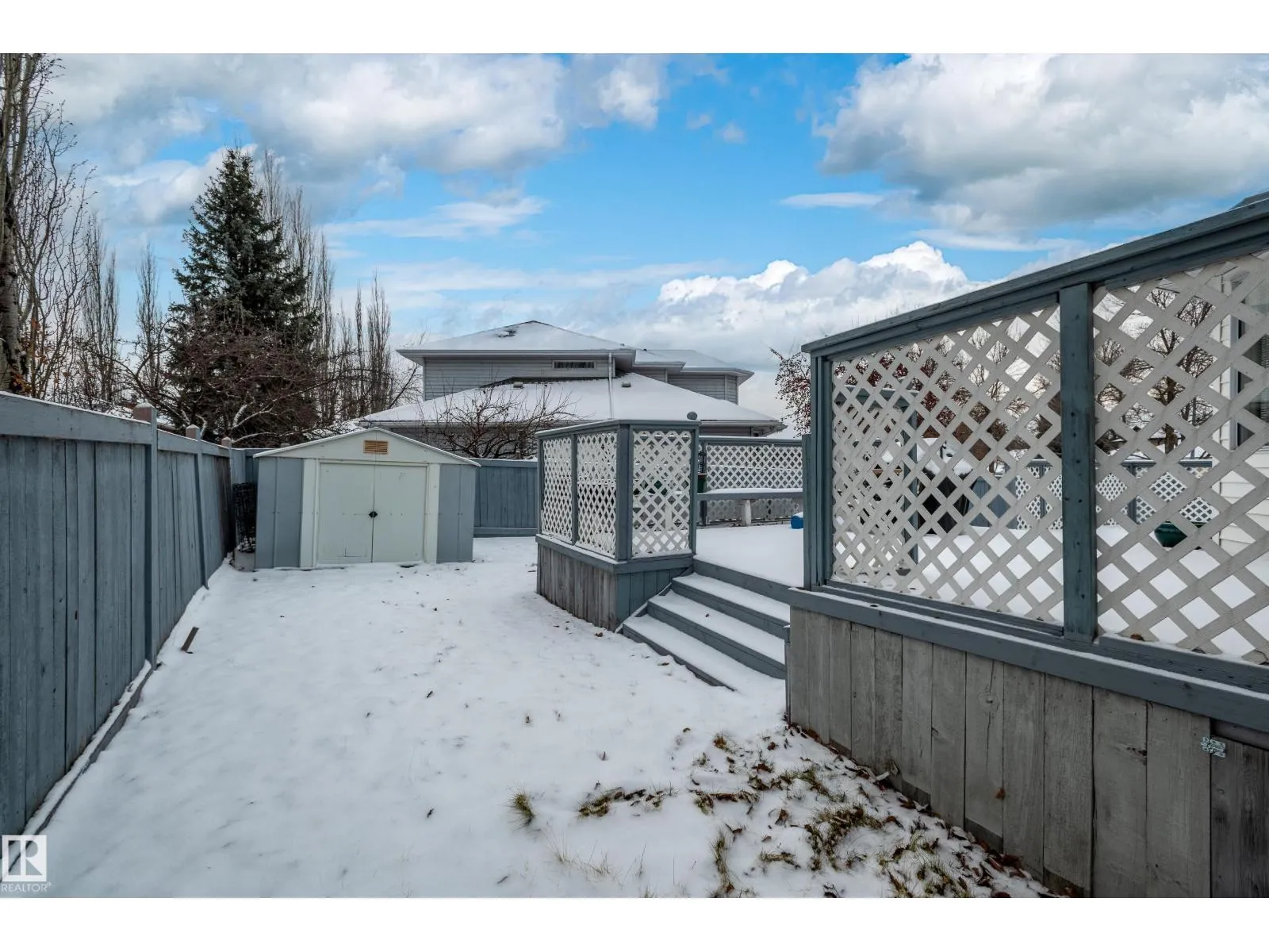Attractive and spacious 2073 sq ft two storey in beautiful Heritage Lakes, St. Albert's southernmost community. Excellent curb appeal with brick accents and a lovely patio area out front for morning coffees. Formal living room and dining room that have enough space to accommodate larger furniture. The kitchen has been upgraded with granite counters and s/s appliances. The breakfast nook has a garden door to a large deck area and fenced back yard. There is a main floor family room with wood burning fireplace, plus a handy main floor bedroom, 2 piece bath and laundry room. The upper level features 3 bedrooms including the primary suite with 4 piece ensuite and full walk-in closet. There is another 4 piece bath upstairs as well. The lower level is ready for future development. There is copper plumbing throughout plus central air conditioning. Only steps away is a walking trail and several playgrounds nearby. Quick and easy access to all commuter routes. (id:27476)