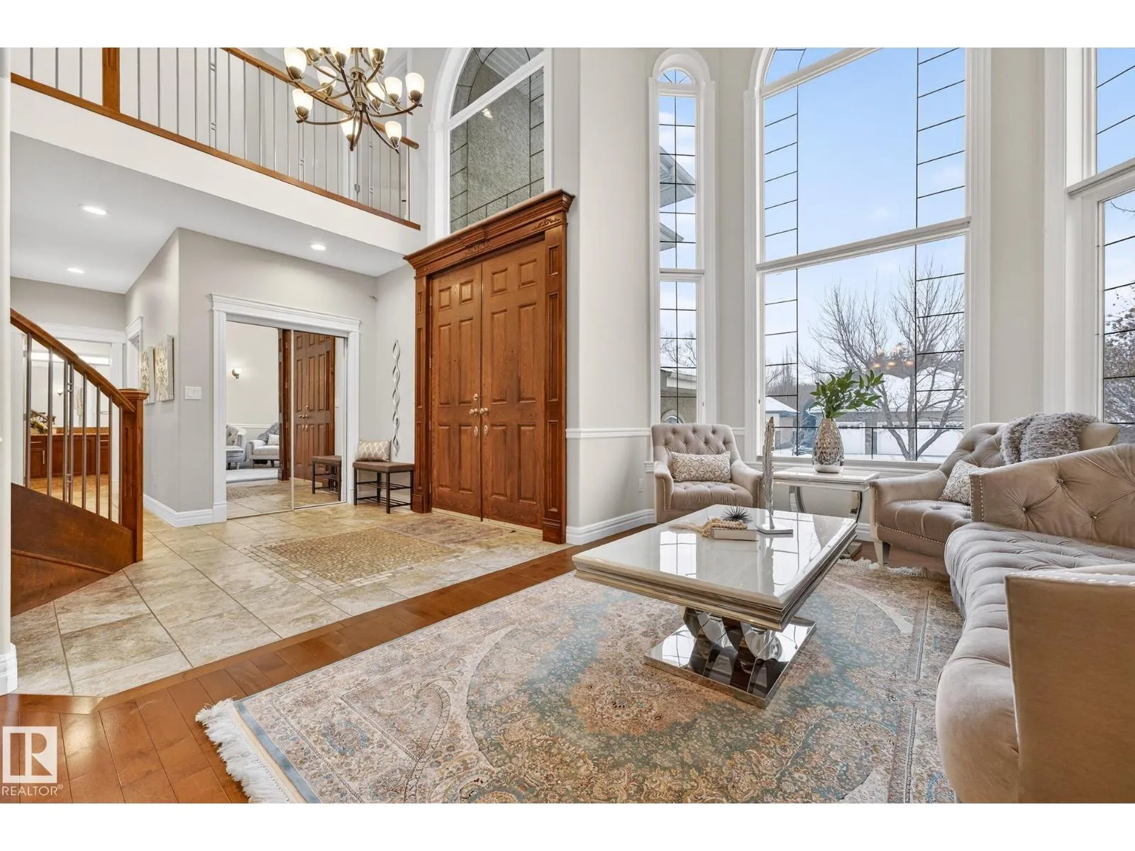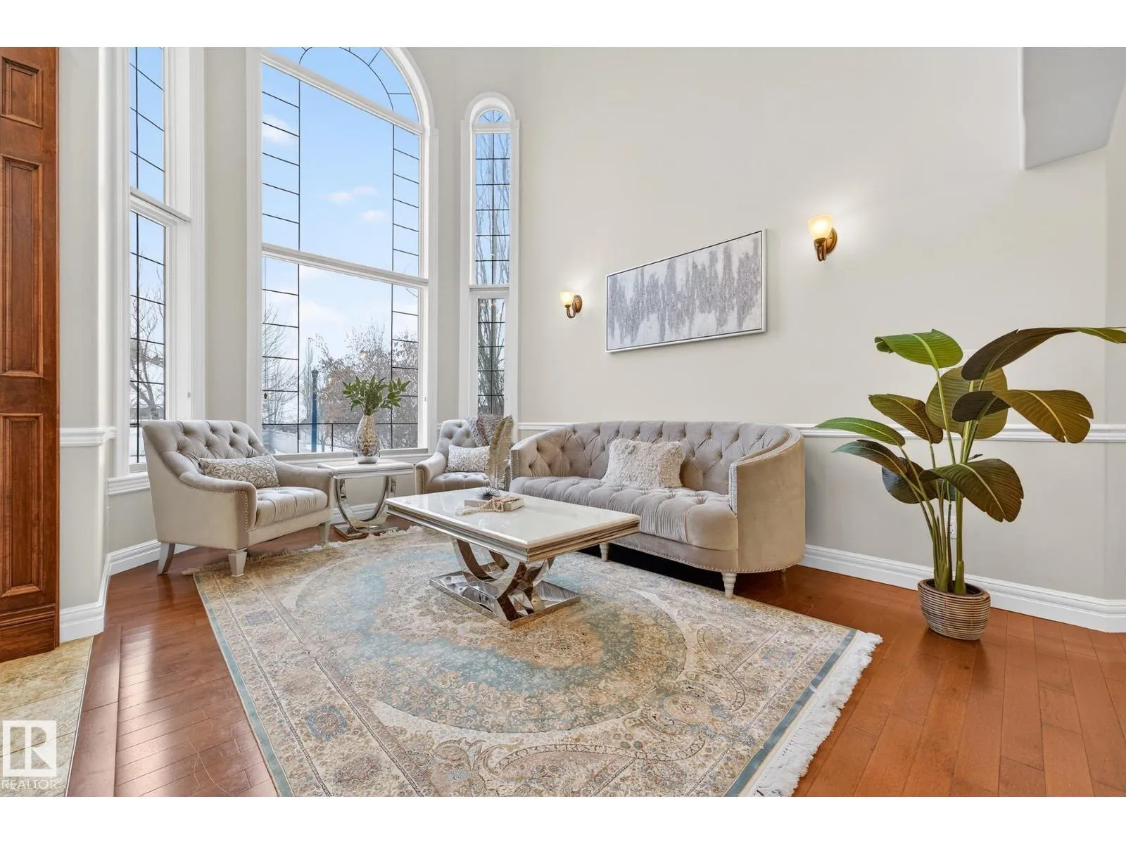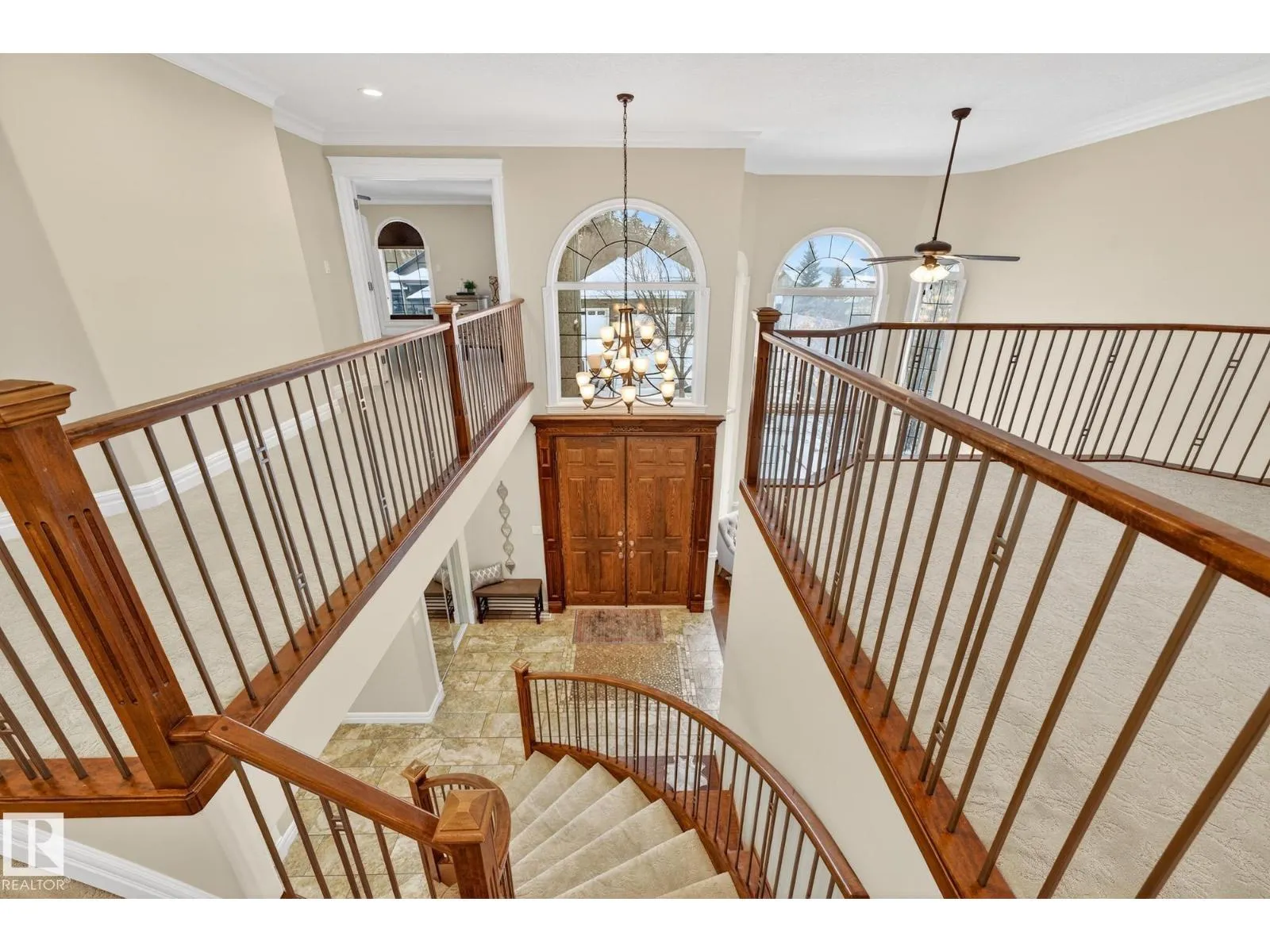 Welcome to this STUNNING SHOWPIECE home in PRESTIGIOUS Lacombe Park Estates, where luxury design & exceptional craftsmanship come together. A dramatic GRAND CURVED STAIRCASE, COFFERED CEILINGS & SOARING WINDOWS set an unforgettable tone the moment you step inside. The formal living & dining areas offer an elegant space to entertain. The gourmet kitchen features GRANITE countertops, s/s appliances, large island & beautiful tile backsplash. The bright dining nook flows into the family room with COZY GAS F/P. The main floor includes a bedroom/den, full 4pce bath & laundry. Upstairs, the winding staircase leads to a SPACIOUS LOFT & IMPRESSIVE PRIMARY RETREAT with French doors, PRIVATE BALCONY & 5pce SPA-LIKE ENSUITE. 3 addt'l generous bedrooms complete the upper level - 2 connected by JACK & JILL 4pce bath, plus another full 4pce bath. A TRIPLE CAR GARAGE & beautifully designed layout further elevate this outstanding property. The perfect opportunity to live in one of St. Albert's most coveted neighbourhoods! (id:27476)