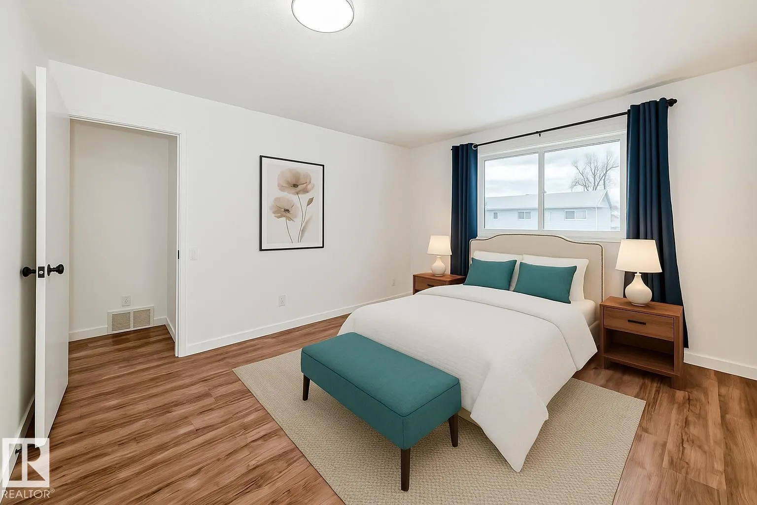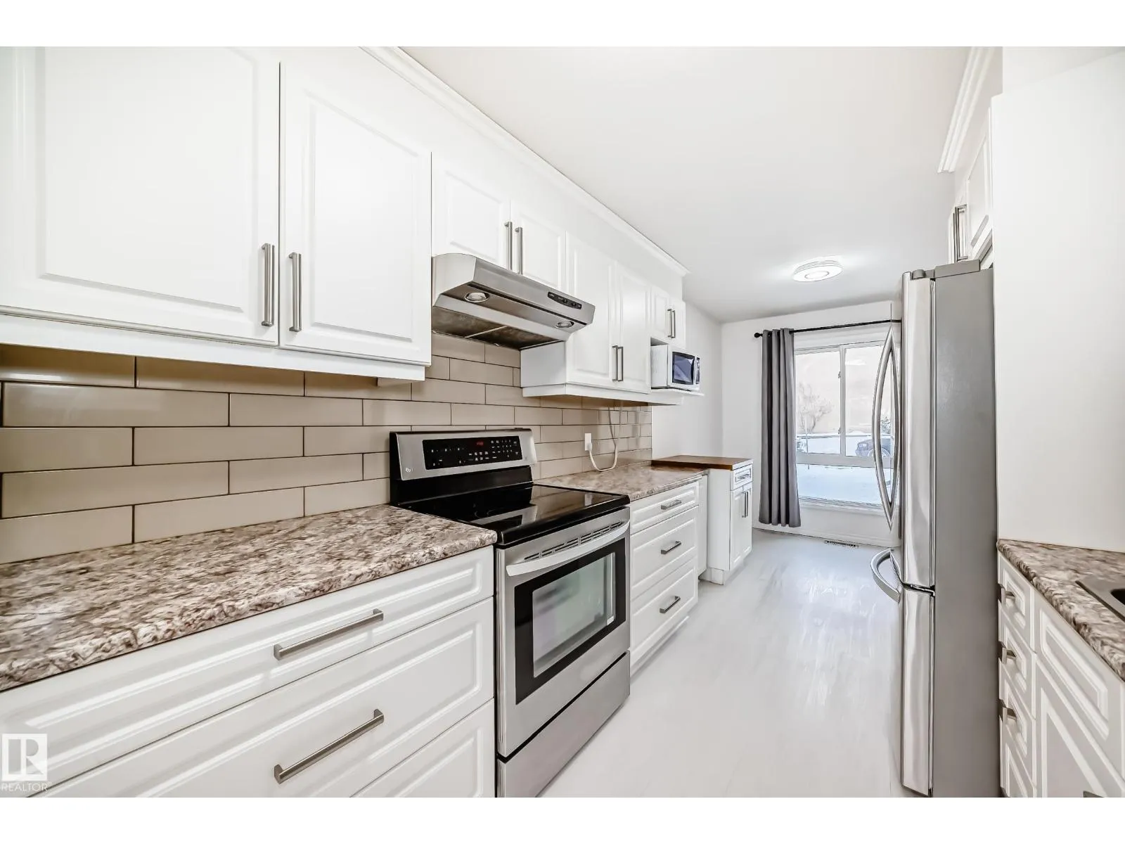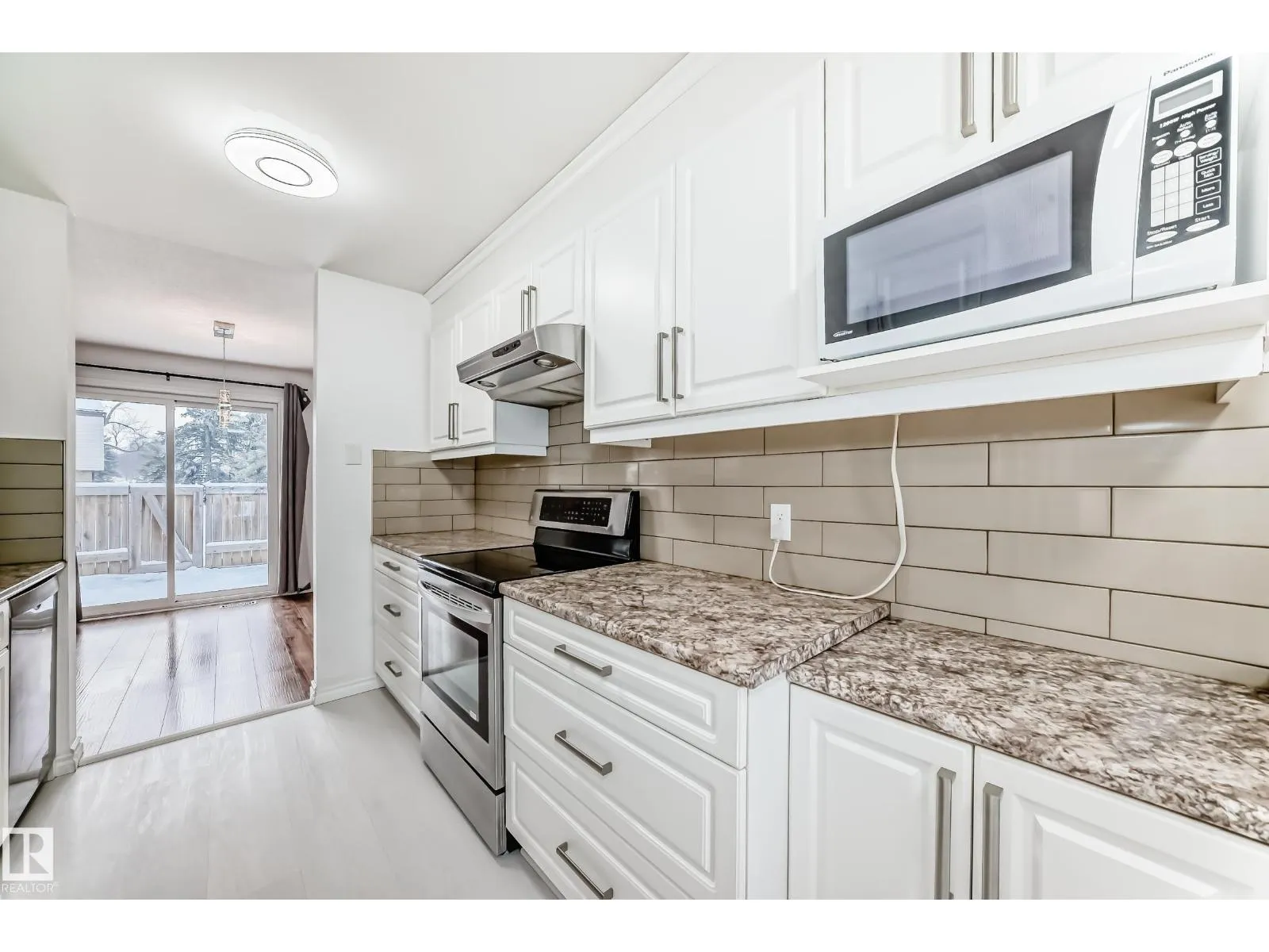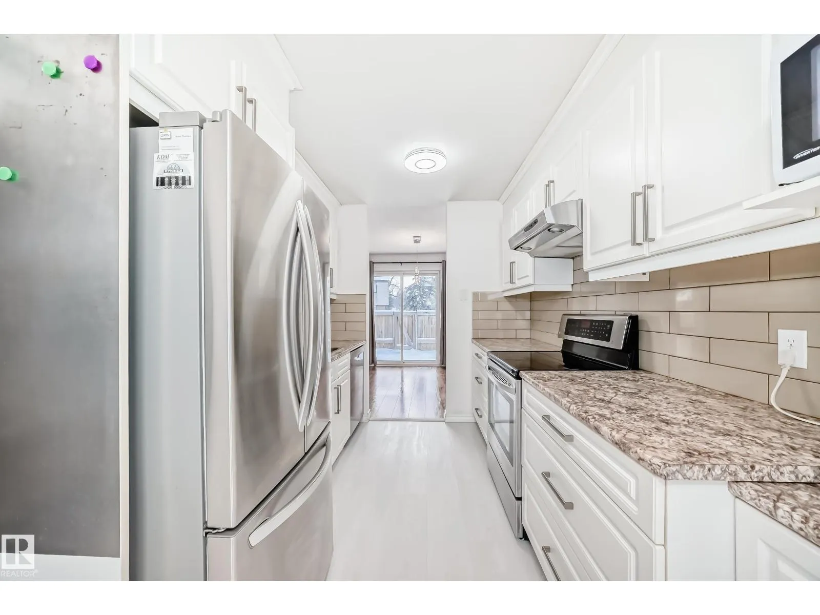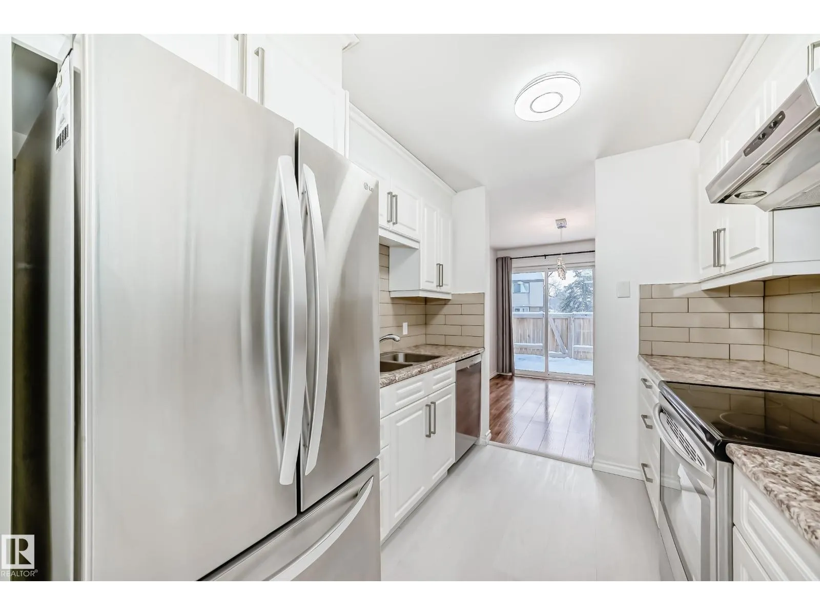 Renovated end unit with many improvements! 3 Bedrooms, 1.5 Bath. Already done: new roof ( 2024) windows done (2021), new dishwasher (2024), new HWT (2023), new recessed lighting, newer paint and flooring throughout! New garage door opener with WIFI! (2024). Nice vibe and layout for this well-located townhome in desirable St. Albert! First-time home owners will love the affordability of this almost 1300 square foot home with an attached single garage. Blank canvas in the basement, customizable for your needs. Enjoy a lovely, sunny and south-facing fenced backyard with raised garden beds & patio. Pets possible with board approval. Put down roots here, welcome home! ( some photos virtually staged) (id:27476)