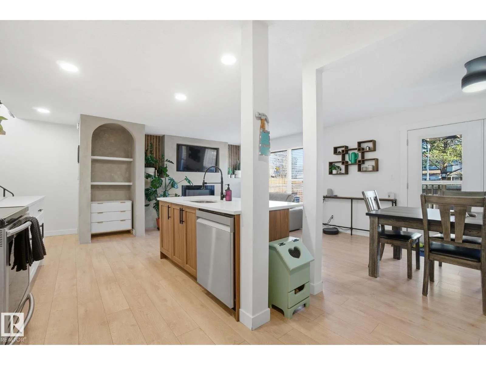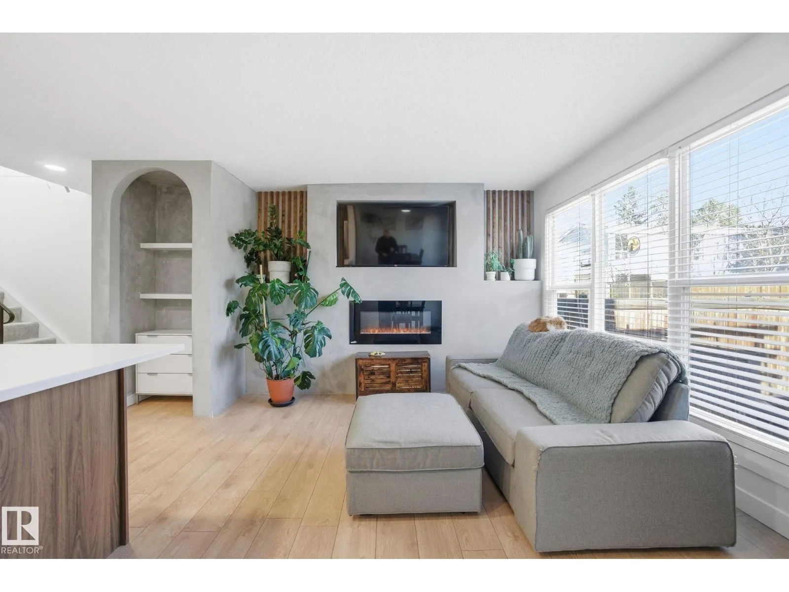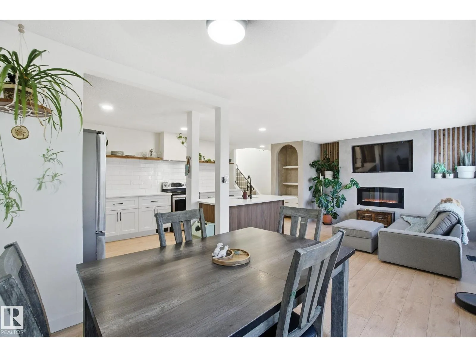 Start the new year in your new home! 3 bedroom + Den, 1 1/2 bathroom home in the convenient and desirable neighbourhood of Grandin (The Gardens) - known for the beautiful parkland, trails and quick access to the Anthony Henday & Edmonton. This beautifully renovated and modern 2-storey townhome in Grandin Vilage features a modern OPEN KITCHEN with gorgeous centre island, two-tone cabinets, extra storage space, sparkling backsplash & feature shelving. The adjoining living/dining rooms feature built-in shelving & a built-in electric fireplace to cozy up to during those chily winter nights. Large windows & patio doors invite ample natural light and lead into the backyard that features a private deck with pergola, and yard space to play in. Upstairs, there are 3 bedrooms & an updated 4-piece bathroom. The basement is fuly finished giving you the perfect movie room, games room and Den! Enjoy a snow free vehicle with your very own 12' X 22' single attached garage PLUS driveway parking for 2. (id:27476)