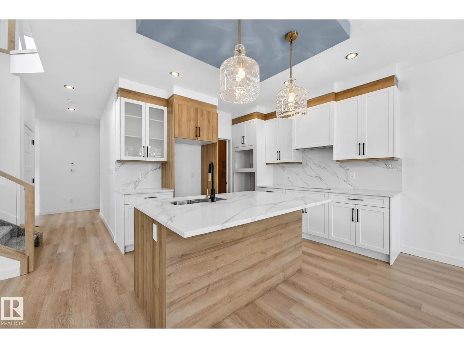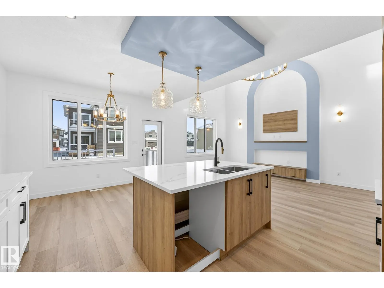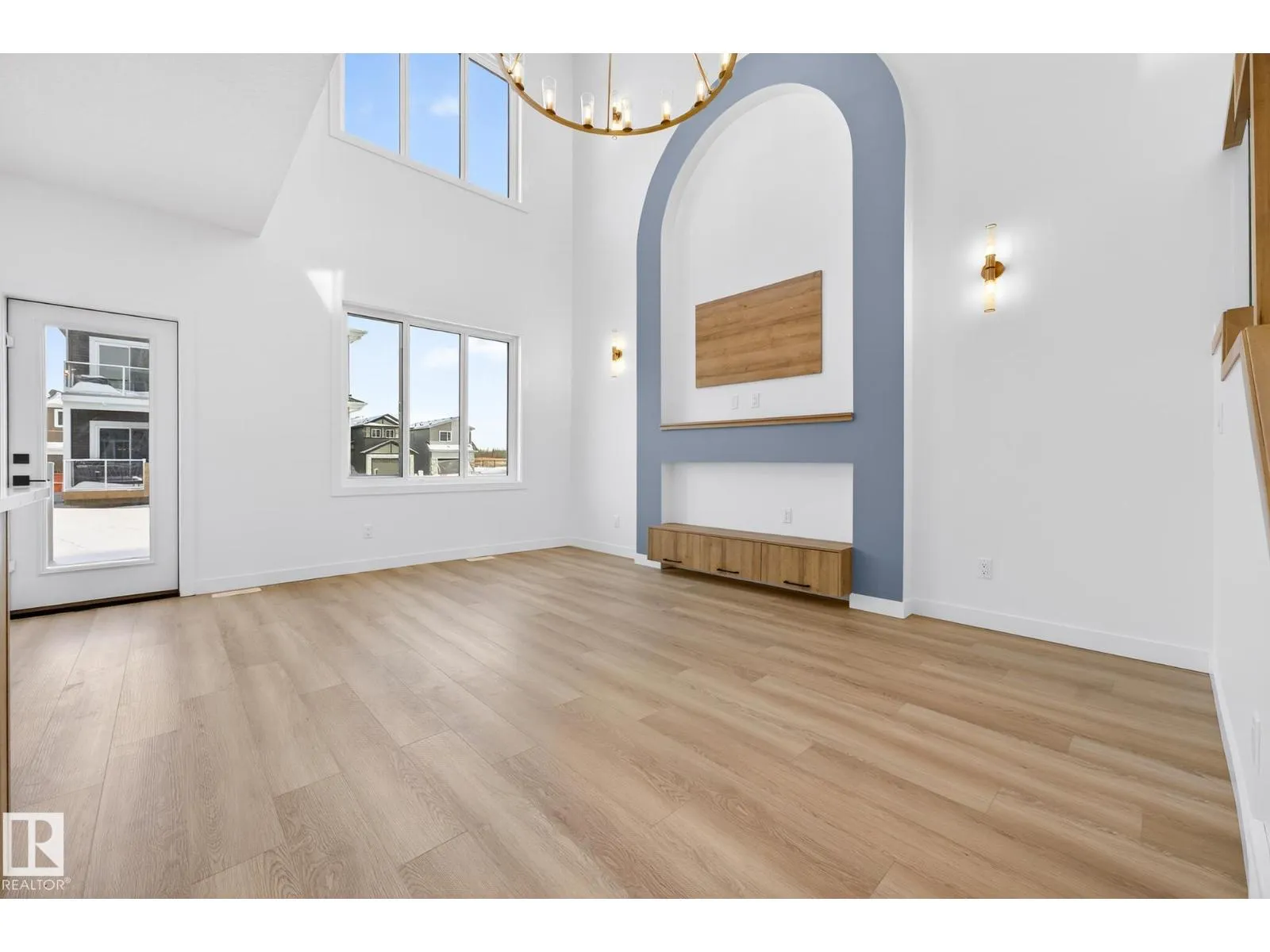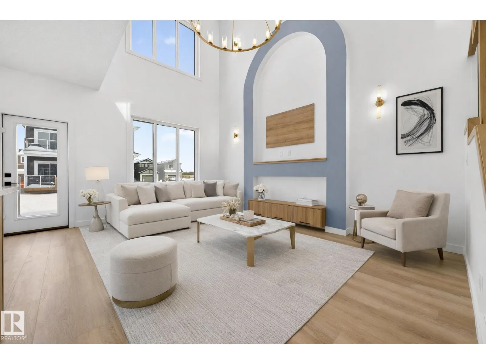 Facing the walking path that leads to a beautiful pond this 2116 Sq Ft 3 Bedroom 2-Storey Open to Below is a show stopper and the perfect family home! The Open Concept Main Floor Boasts Beautiful vinyl plank flooring, Large Den, Adjacent 3-piece Bath, White Modern Cabinetry, Full Appliance Pkg, Quartz Counter Tops, Large Island, Fireplace Feature Wall, Large Mudroom with storage leads to a Walk Through Pantry with cabinetry, Living Room boast large Windows, Coffered Ceiling showcasing a beautiful 18' Open to Below View from the Second Floor. Gorgeous Primary Suite with Coffered Ceiling and Large Ensuite with Soaker Tub, Large Tiled Shower with Double Sink! Spacious Bonus Room with coffered Ceiling, two more large bedrooms, Laundry Closet and Full Bath! Basement is unfinished but with side entrance and 9' Ceiling the potential is endless! (id:27476)