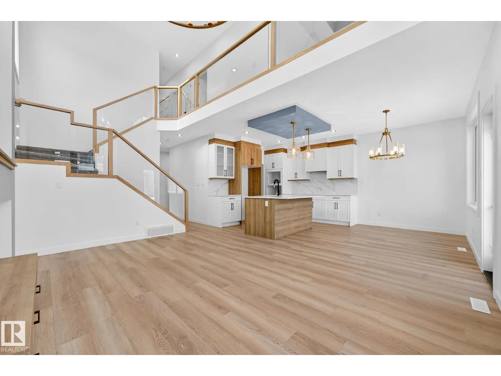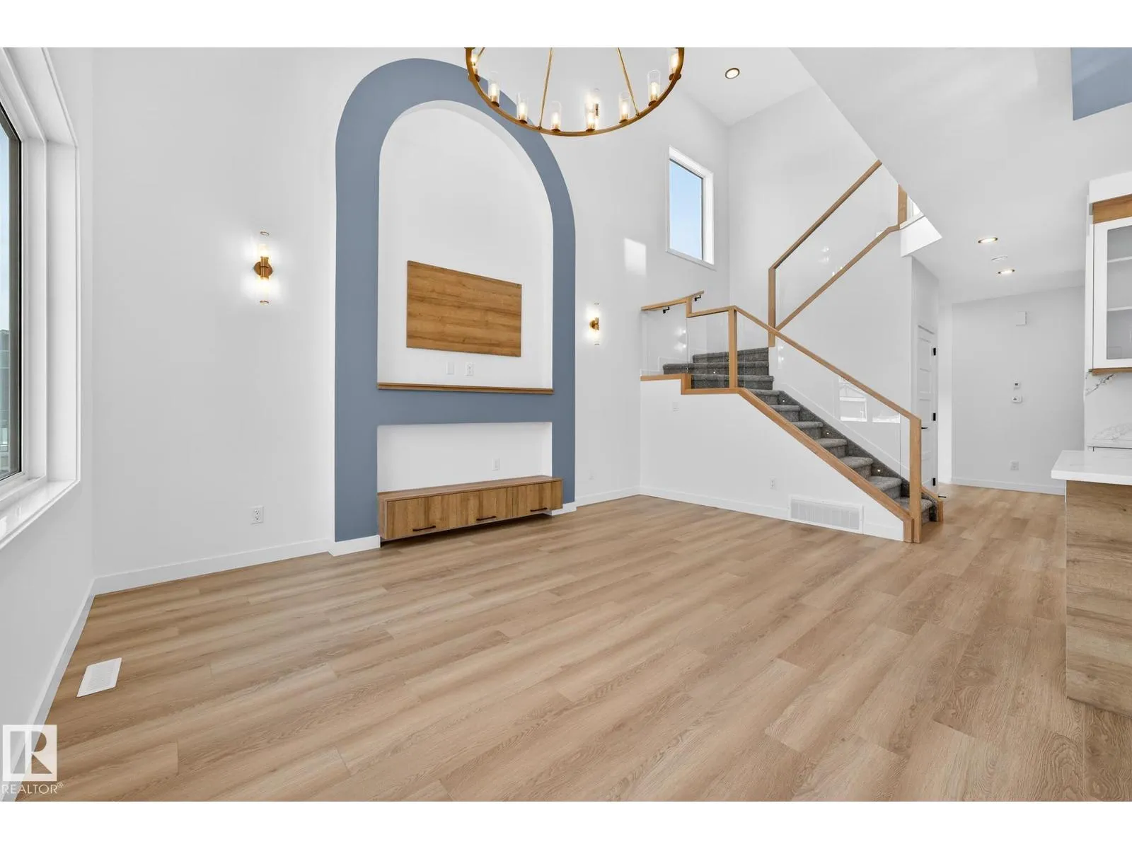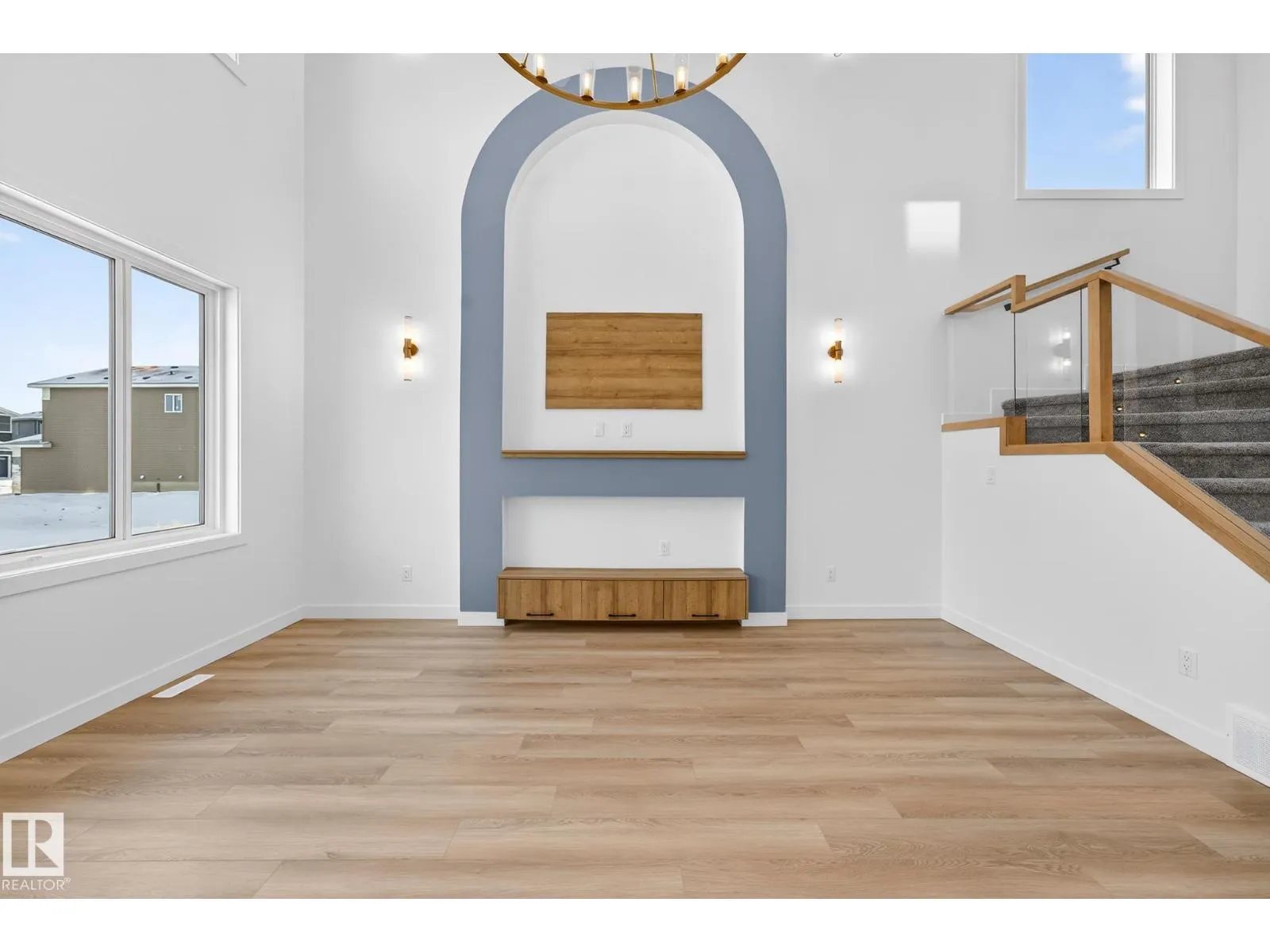 Facing the walking path that leads to a beautiful pond this 2116 Sq Ft 3 Bedroom 2-Storey Open to Below is a show stopper and the perfect family home! The Open Concept Main Floor Boasts Beautiful vinyl plank flooring, Large Den, Adjacent 3-piece Bath, White Modern Cabinetry, Full Appliance Pkg, Quartz Counter Tops, Large Island, Fireplace Feature Wall, Large Mudroom with storage leads to a Walk Through Pantry with cabinetry, Living Room boast large Windows, Coffered Ceiling showcasing a beautiful 18' Open to Below View from the Second Floor. Gorgeous Primary Suite with Coffered Ceiling and Large Ensuite with Soaker Tub, Large Tiled Shower with Double Sink! Spacious Bonus Room with coffered Ceiling, two more large bedrooms, Laundry Closet and Full Bath! Basement is unfinished but with side entrance and 9' Ceiling the potential is endless! (id:27476)