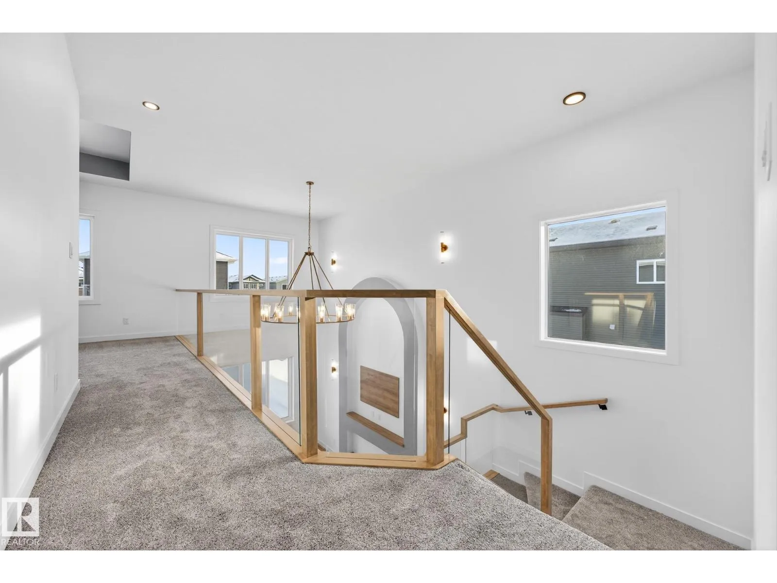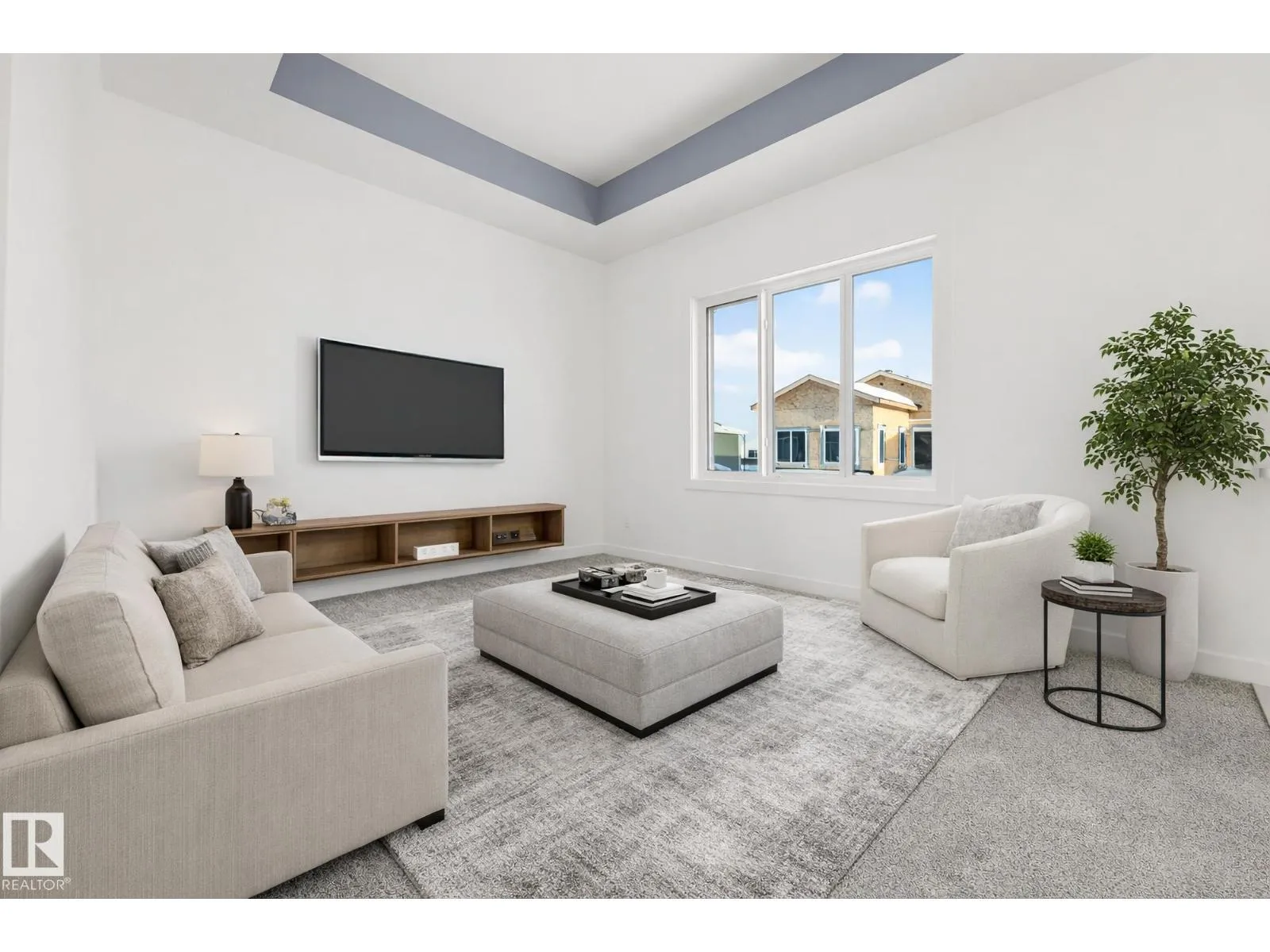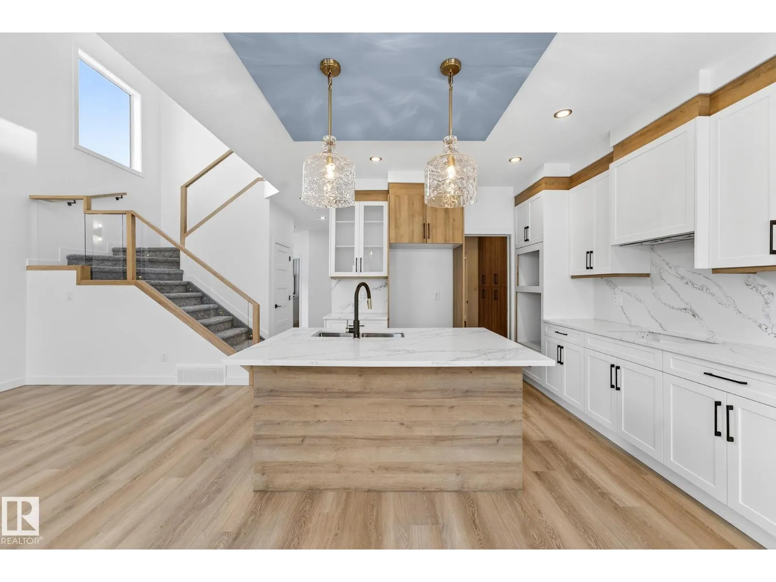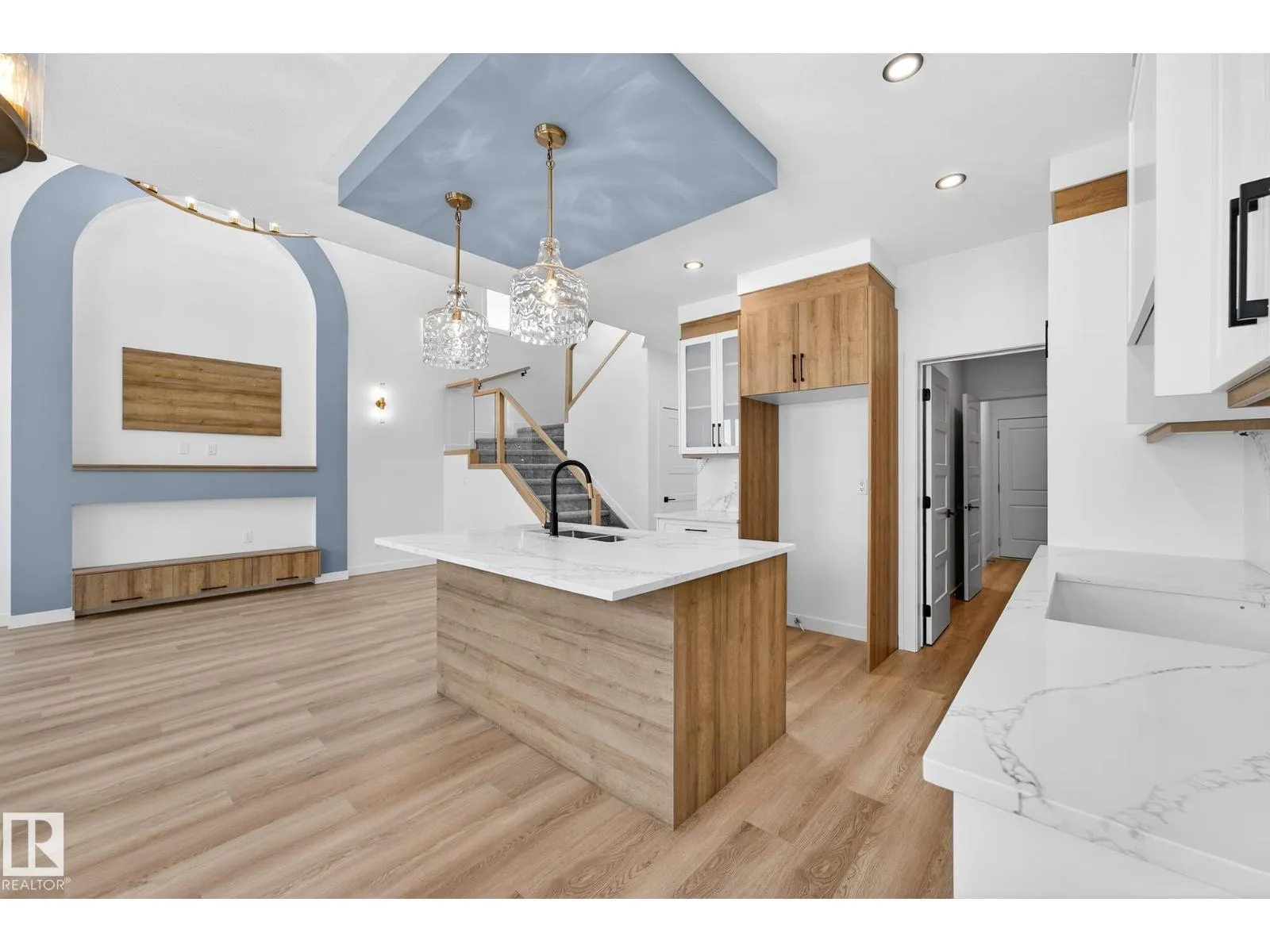 Facing the walking path that leads to a beautiful pond this 2116 Sq Ft 3 Bedroom 2-Storey Open to Below is a show stopper and the perfect family home! The Open Concept Main Floor Boasts Beautiful vinyl plank flooring, Large Den, Adjacent 3-piece Bath, White Modern Cabinetry, Full Appliance Pkg, Quartz Counter Tops, Large Island, Fireplace Feature Wall, Large Mudroom with storage leads to a Walk Through Pantry with cabinetry, Living Room boast large Windows, Coffered Ceiling showcasing a beautiful 18' Open to Below View from the Second Floor. Gorgeous Primary Suite with Coffered Ceiling and Large Ensuite with Soaker Tub, Large Tiled Shower with Double Sink! Spacious Bonus Room with coffered Ceiling, two more large bedrooms, Laundry Closet and Full Bath! Basement is unfinished but with side entrance and 9' Ceiling the potential is endless! (id:27476)