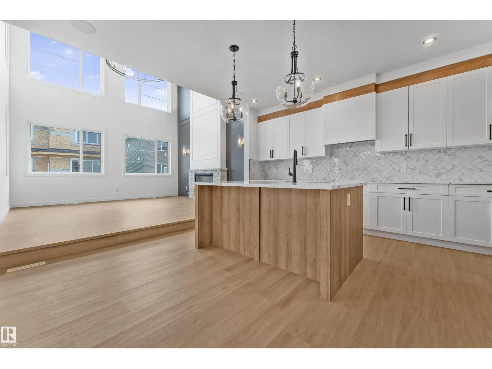 Stunning home with luxury Upgrades. Open-to-above living room with lot of windows, fireplace & beautiful feature wall. A convenient main-floor bedroom with a full bathroom is perfect for guests or extended family. The heart of the home is its modern kitchen, flowing into a dining area and expansive deck, ideal for summer gatherings. Upstairs beautiful bonus room with fireplace & feature wall, perfect for family entertainment, along with a private office/gym. The spacious primary suite with stunning ceiling & wall design offers a custom ensuite with a soaking tub, dual vanities, and a walk-in closet. Two additional bedrooms share a full bath. An upper balcony adds a peaceful retreat for morning coffee or evening relaxation. Every corner of this home has been thoughtfully designed, checking all the boxes for style, comfort, luxury and convenience. (id:27476)