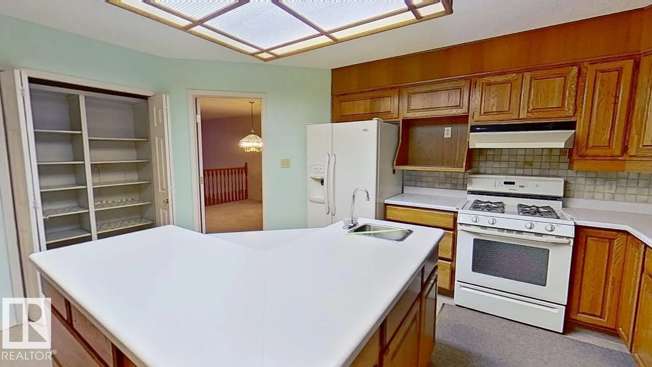 Location, location, locationâ¦. This lovely 5 bedroom (4 up and 1 down) is located in a quiet crescent in a Erin Ridge; one of St. Albertâs premier neighbourhoods. Across the street is a playground. This spacious home is ideal for todayâs growing family with a total of 5 bedrooms. Located on a pie-shaped lot, there is lots of room for the kids to play in a parklike back yard. Over 2550 square feet above grade and the fully finished basement adds an additional 1450 square feet. Large dining room is ideal for entertaining. The kitchen opens up to a family with a magnificent wood burning fireplace. Watch the sun set from the enclosed sunroom at the back of the house.The main floor bedroom could be used as an office. All three upstairs bedroom are a good size. Enjoy the master bedroom with its Jacuzzi and large walk in closet.The fully finished basement features a large guest bedroom with an ensuite , laundry room, storage room and second family room. There are 2 high efficiency furnaces and A/C.Move in now! (id:27476)