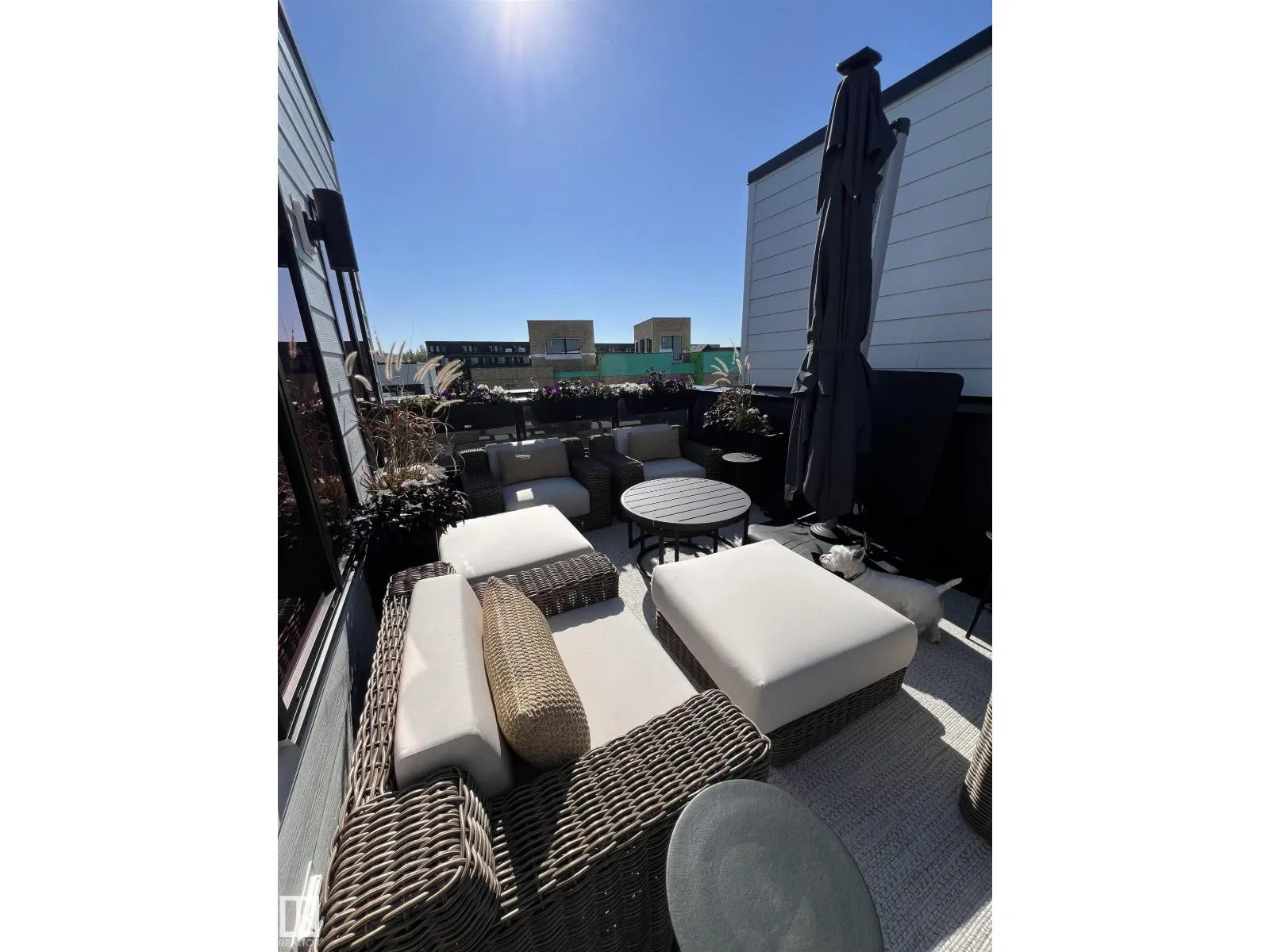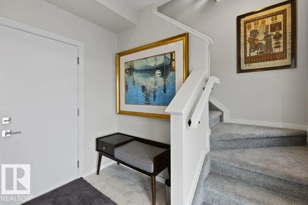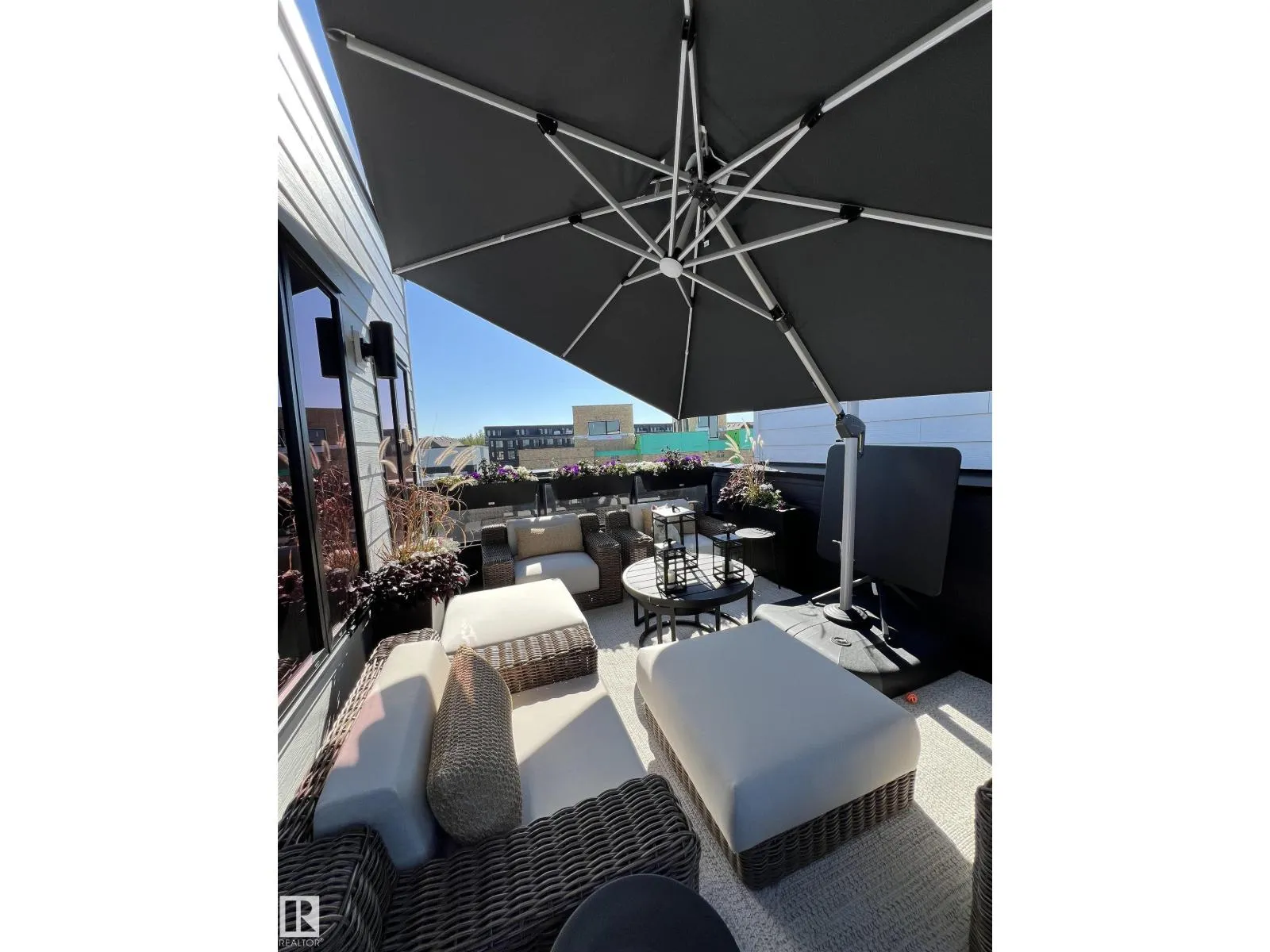 Welcome to Midtown by Averton, a luxurious townhome community like no other in St. Albert. With over $150,000 in UPGRADES, ROOF TOP PATIO & the best views in the complex this gorgeous 3-storey home is BETTER THAN NEW. Featuring 2 bedrooms both w/luxurious ensuites & custom closets, chef inspired kitchen and elegant dining area. Upgrades include a custom kitchen w/extra cabinet storage, floating shelves, Professional Series Kitchen Aid appliance package, bar fridge, gas stove, luxury vinyl plank flooring, whole house soft water system, Air Conditioning, charcoal & UV Light Air Filtration, exquisite imported light fixtures, Kohler intelligence toilet, Kohler sinks & hand towel bars plus Hunter Douglas Silhouette blinds. Top it off with a completely finished double attached garage w/ POLYASPARTIC COATED FLOOR & TESLA EV CHARGING UNIT. Enjoy a luxurious, low maintenance lifestyle like no other. Say goodbye to shoveling snow, cutting grass & building maintenance. But don't wait, this home will not last! (id:27476)