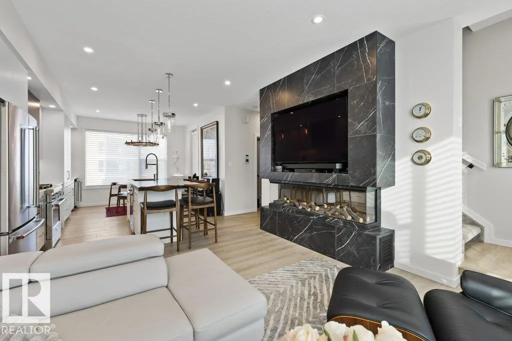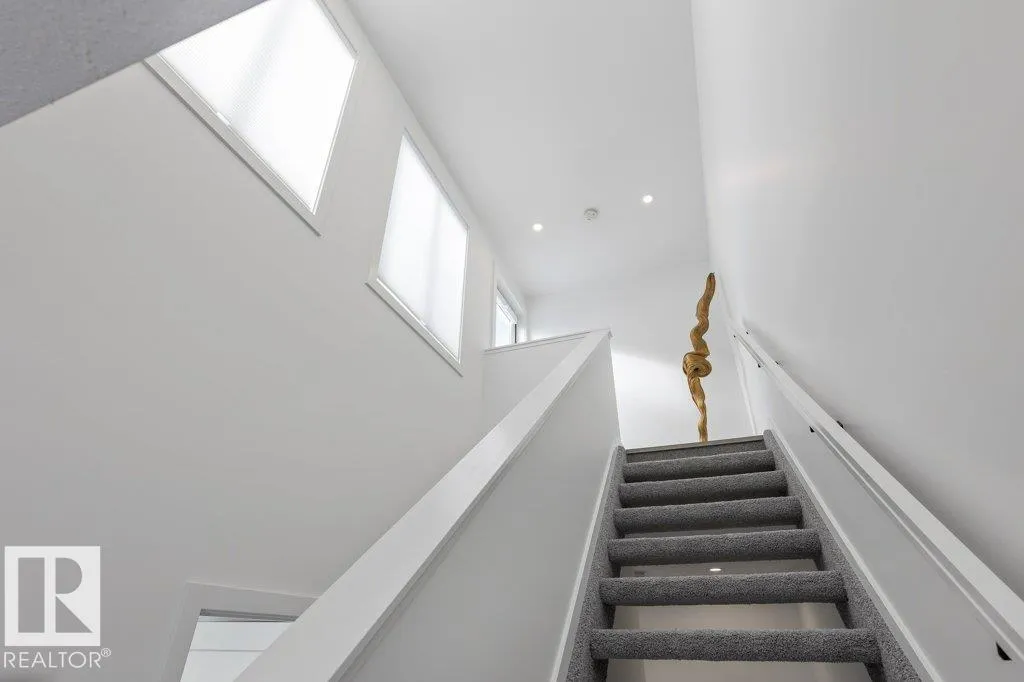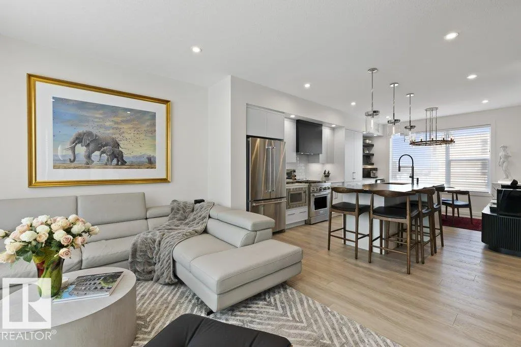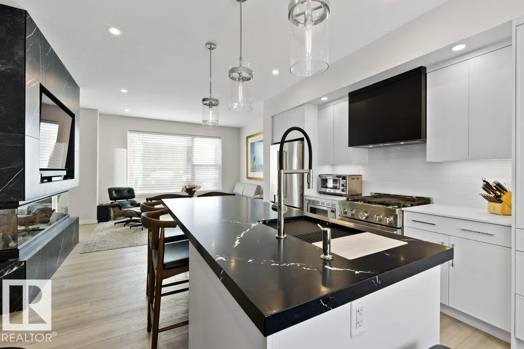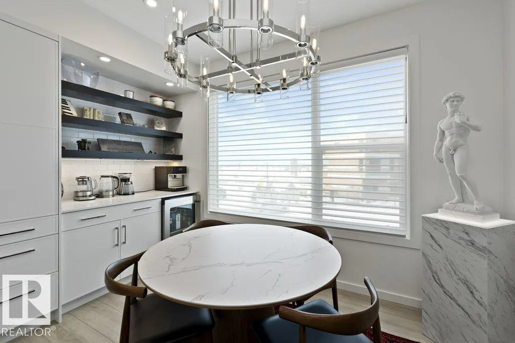 Welcome to Midtown by Averton, a luxurious townhome community like no other in St. Albert. With over $150,000 in UPGRADES, ROOF TOP PATIO & the best views in the complex this gorgeous 3-storey home is BETTER THAN NEW. Featuring 2 bedrooms both w/luxurious ensuites & custom closets, chef inspired kitchen and elegant dining area. Upgrades include a custom kitchen w/extra cabinet storage, floating shelves, Professional Series Kitchen Aid appliance package, bar fridge, gas stove, luxury vinyl plank flooring, whole house soft water system, Air Conditioning, charcoal & UV Light Air Filtration, exquisite imported light fixtures, Kohler intelligence toilet, Kohler sinks & hand towel bars plus Hunter Douglas Silhouette blinds. Top it off with a completely finished double attached garage w/ POLYASPARTIC COATED FLOOR & TESLA EV CHARGING UNIT. Enjoy a luxurious, low maintenance lifestyle like no other. Say goodbye to shoveling snow, cutting grass & building maintenance. But don't wait, this home will not last! (id:27476)