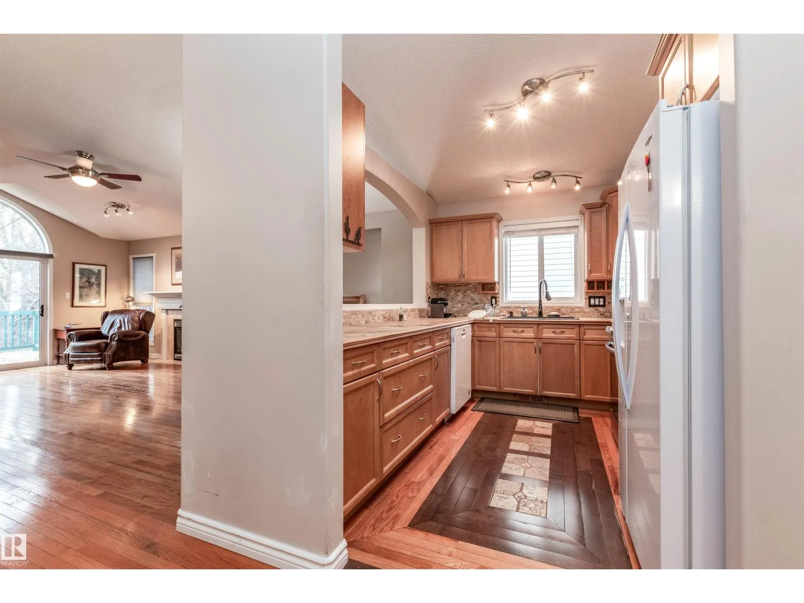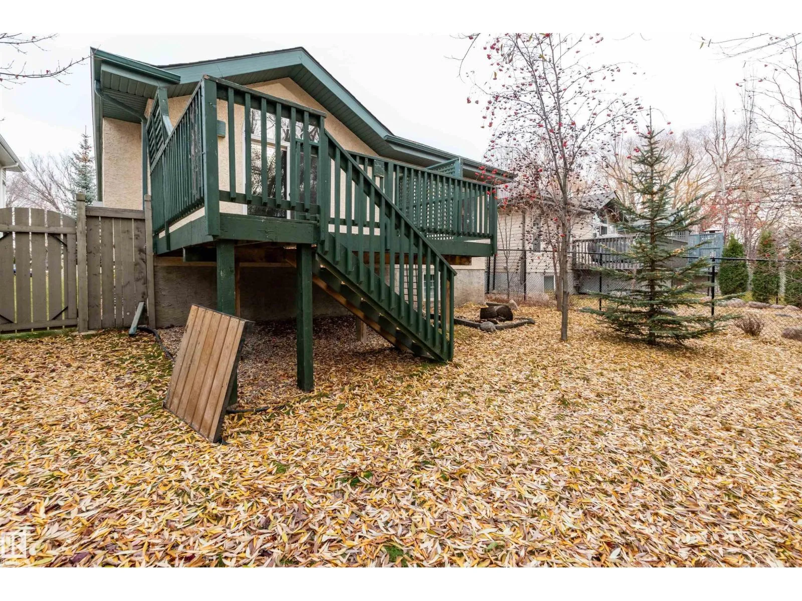 BACKS ONTO PARK! INCREDIBLE TREED SETTING! This lovely bungalow offers a prime location, functionality and value! Welcome to Eldorado Drive in St. Albert! Featuring an open concept with 1309 square feet plus an almost fully finished basement (unfinished storage space). Generous entry way, beautiful kitchen with dining area, and a spacious living room with gleaming hardwood floors and gas fireplace. The Primary Bedroom has its own private 3-piece ensuite with tub plus a walk-in closet. The second bedroom is on the main floor as well. Convenient main floor laundry & a 3 piece bathroom. The basement boasts 9 ft ceilings, vinyl plank flooring, a large family room, 3rd bedroom, flex space, 3-piece bathroom and storage space. Lovely deck with gas hook up for bbq and a private & fenced backyard with a gate. NEW SHINGLES (2024), NEW motor in the furnace (2025), and a NEW thermostat (2025). Double attached garage and great curb appeal! IMMEDIATE POSSESSION is available! Visit REALTOR® website for more information. (id:27476)