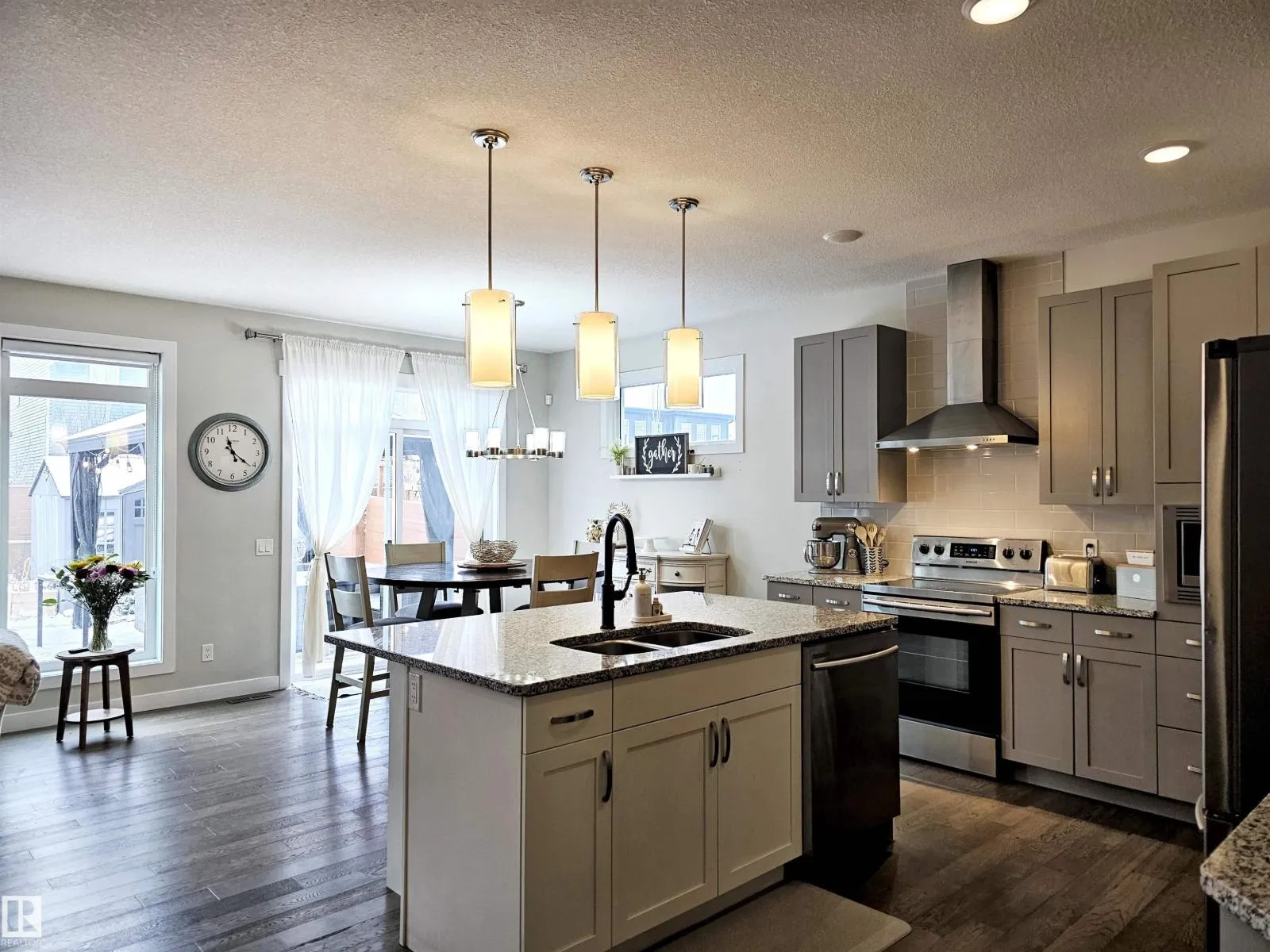 Discover the bright, beachy charm of Jensen Lakes! This stunning 2-storey family home offers over 2,375 sq.ft. plus a fully finished basement. The open-concept main floor features a modern kitchen with stainless steel appliances, granite countertops, a walk-thru pantry, oversized island, and wet bar. The great room with fireplace accent wall flows into a spacious dining areaâperfect for entertaining. Upstairs offers 4 bedrooms, a bonus room, laundry, and a primary suite with walk-in closet, fireplace, and a spa-like 5-piece ensuite. The basement includes a large family room, 5th bedroom and full bath. Enjoy the TRIPLE TANDEM garage, central A/C, permanent exterior LED lighting, and landscaped yard with a large deck. Walk to two new schools, parks, playgrounds, and enjoy exclusive access to the private Jensen Lakes beach! (id:27476)