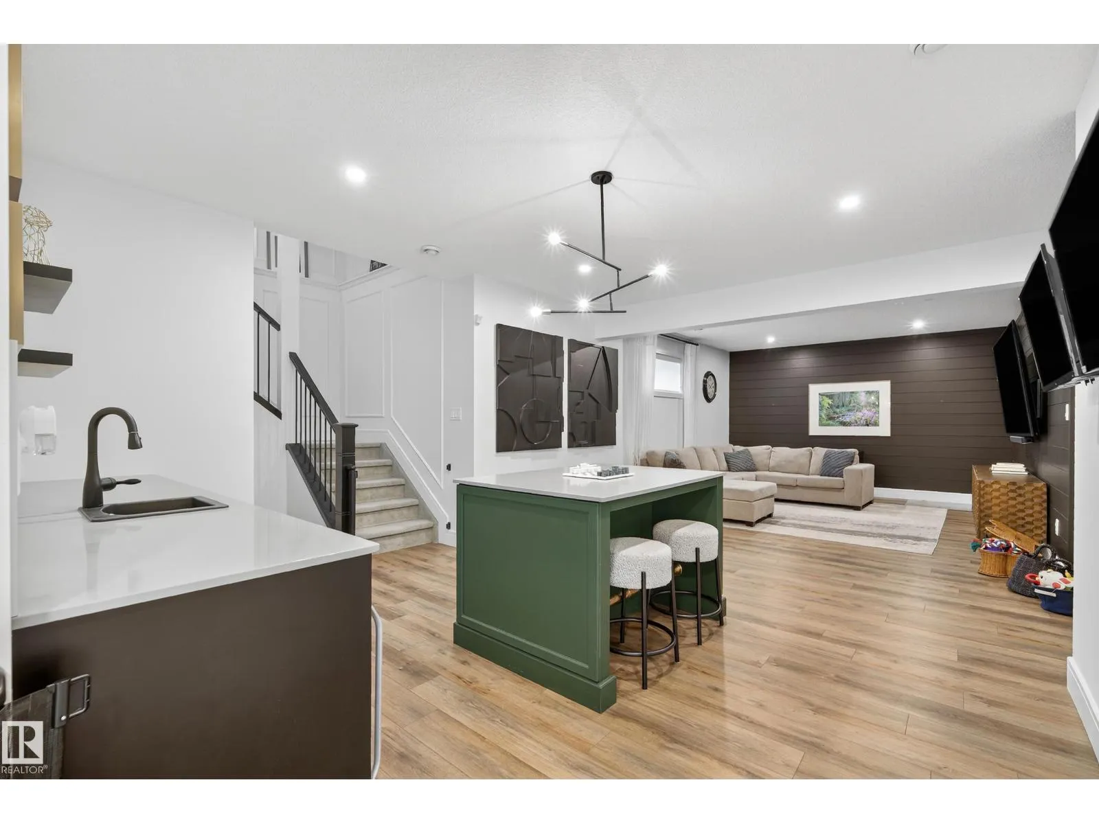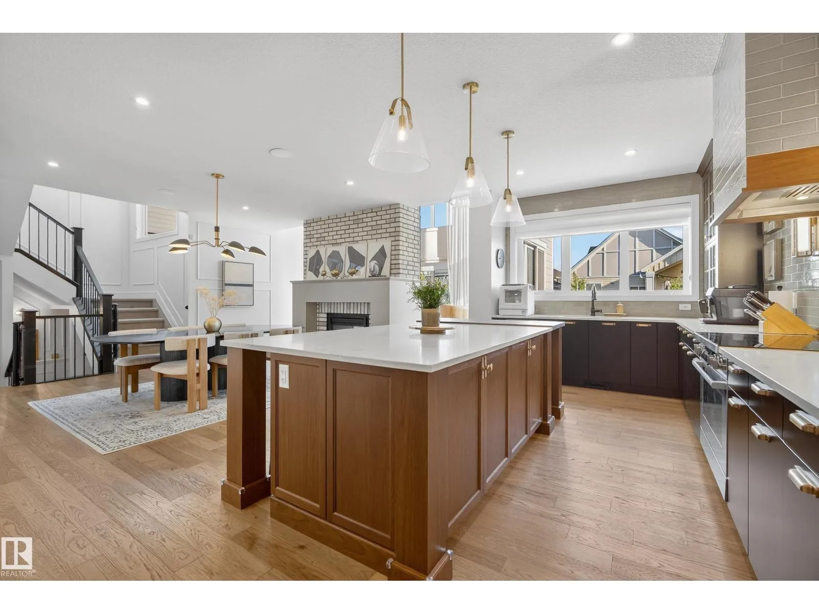This stunning property is a former SHOWHOME is located in the beautiful community of Jensen Lakes! This property comes LAKE ACCESS and luxurious living on a fully landscaped, corner lot. Step inside to an impressive OPEN TO BELOW layout with VAULTED ceilings, a striking TWO SIDED GAS FIREPLACE, and massive windows that flood the home with natural light. The kitchen is every chef's dream featuring a huge island, newer appliances, abundant cabinetry, gas range stovetop, perfect for entertaining your guests. Upstairs, there are 3 bedrooms, 5 pc bath and a massive family room. The primary suite a spacious 5 pc ensuite, walk in closet and spacious laundry room. Retreat to the basement to relax and enjoy the beautiful wet bar, rec room, wine cellar and 2 additional bedrooms. Enjoy outdoor living with a large deck overlooking a large backyard. Stylish, bright and beautifully finished!! This home truly has it all! (id:27476)