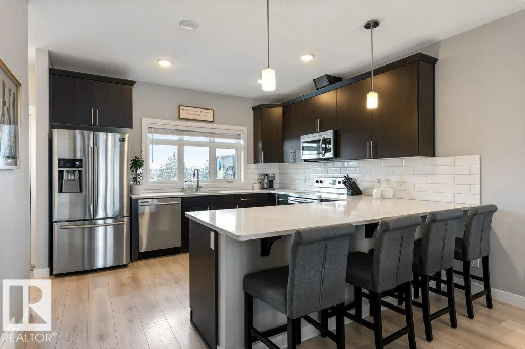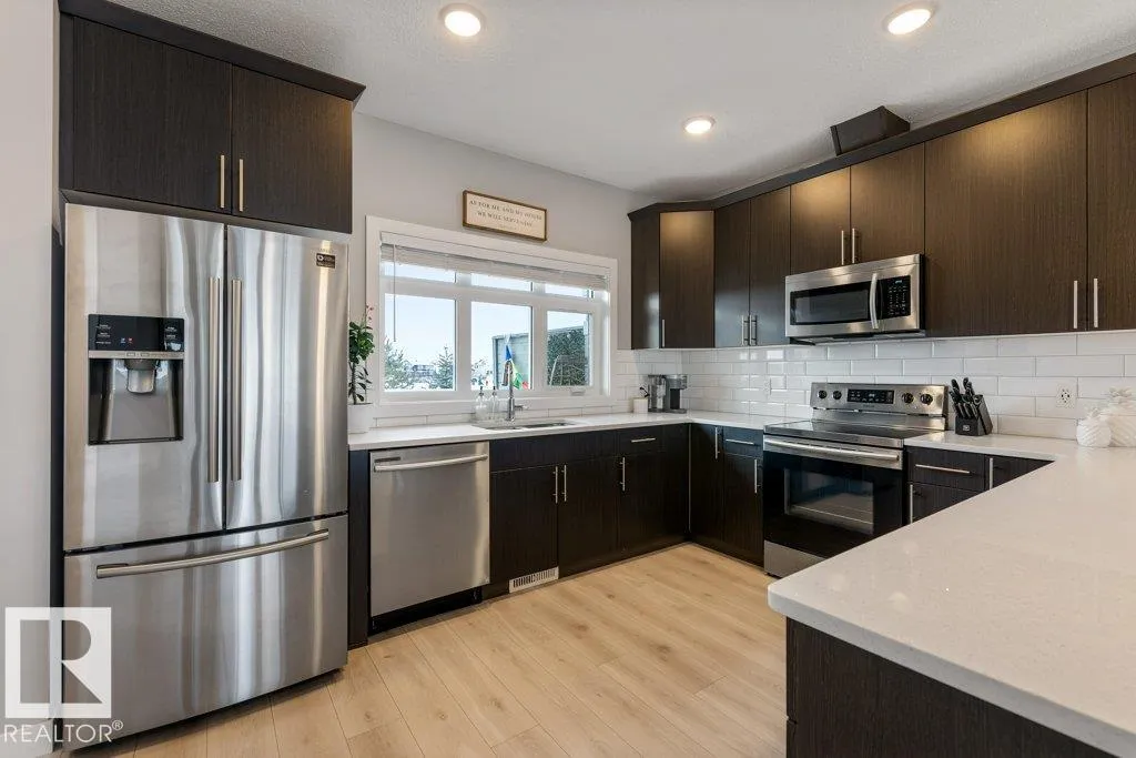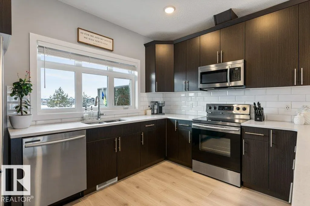 Welcome to this over 1700 sqft END UNIT backing the PARK! This home is absolutely immaculate top to bottom! The main floor is bright and open with 9â ceilings and large windows. This thoughtful design features a kitchen perfect for any chef with an abundance of counter space, wall pantry, QUARTZ counter tops and stainless steel appliances. There is a large dining space which is open to the inviting great room - perfect for entertaining! Upstairs has three bedrooms, main 4pce bathroom and second floor laundry room with extra storage! The primary bedroom has a walk through closet to a 3pce ENSUITE. There is a DOUBLE tandem Garage, additional storage, CENTRAL A/C, large private yard with deck overlooking green space. This one is a must see! (id:27476)
