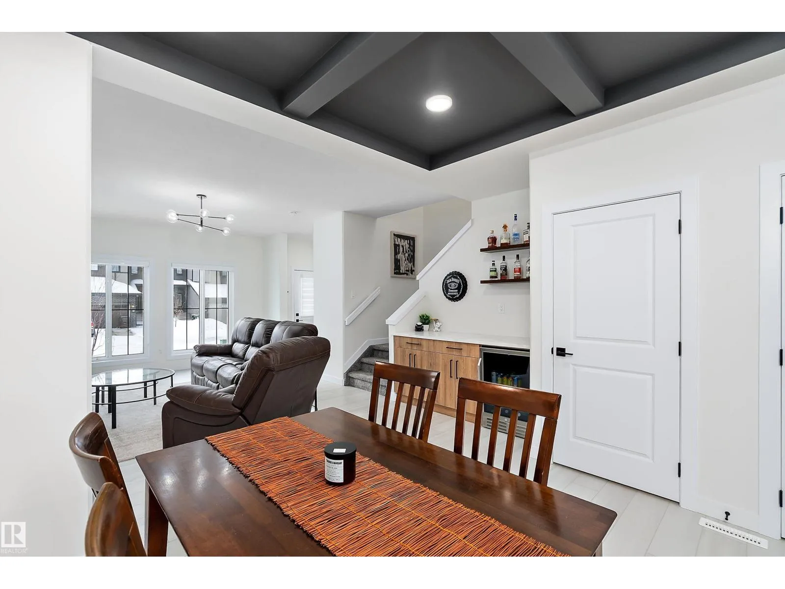 Welcome home! From the moment you enter, youâre greeted by a spacious foyer that opens into a bright great room and dining area with a beautiful coffered ceiling perfect for family meals and gatherings. The kitchen is designed for everyday living and entertaining, featuring full-height soft-close cabinetry, upgraded quartz countertops, and quality appliances. The main floor also includes a built-in bar with beverage cooler and a linear fireplace with a stylish feature wall, ideal for cozy nights in. Upstairs offers three large bedrooms, two full bathrooms, a bonus room for family movie nights or kidsâ play space, and convenient upper-floor laundry. The generous primary bedroom features a lovely ensuite and a spacious walk-in closet. 9â ceilings on both the main floor and basement and separate entrance. Fully landscaped with air conditioning and a double detached garage. Located in a fantastic family-friendly neighbourhood close to Ray Gibbons Drive, parks, amenities, and the incredible Paris Playground. (id:27476)