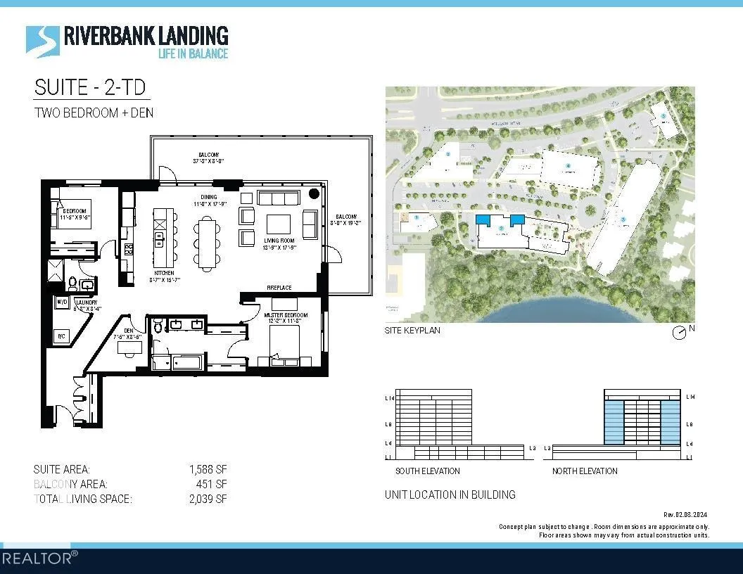 Introducing Riverbank Landing! An exciting live-work-play development nestled along the banks of the beautiful Sturgeon River Valley. Concrete and steel construction offers superior privacy and fire safety. This spacious (1,588 sf) corner 2 Bedroom plus Den suite offers premium features throughout including: 9 ft ceilings, oversized window walls on two sides, quartz countertops, plank and porcelain tile flooring, cozy linear fireplace, 451 sf wrap-around balcony with gas & water. Each suite has dedicated fresh-air supply, forced air heating and A/C! Includes underground parking and storage with the option to upgrade to a private double garage. Riverbank Landing's well designed amenities have your new lifestyle in mind with: an impressive 2 story lobby, spacious event centre, fitness/yoga room, owner's lounge with roof-top patio, guest suite, car wash & business centre. Only steps to Mercato Italian Market, boutique shopping, restaurants, professional services and the tranquil Red Willow Trail system. (id:27476)