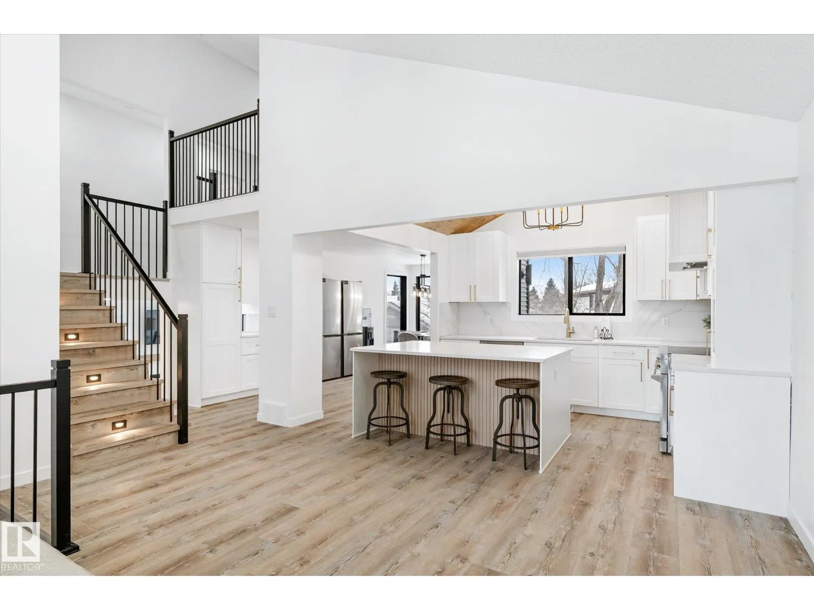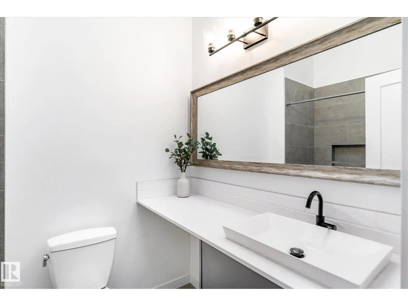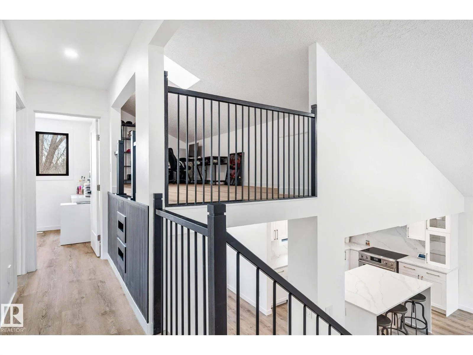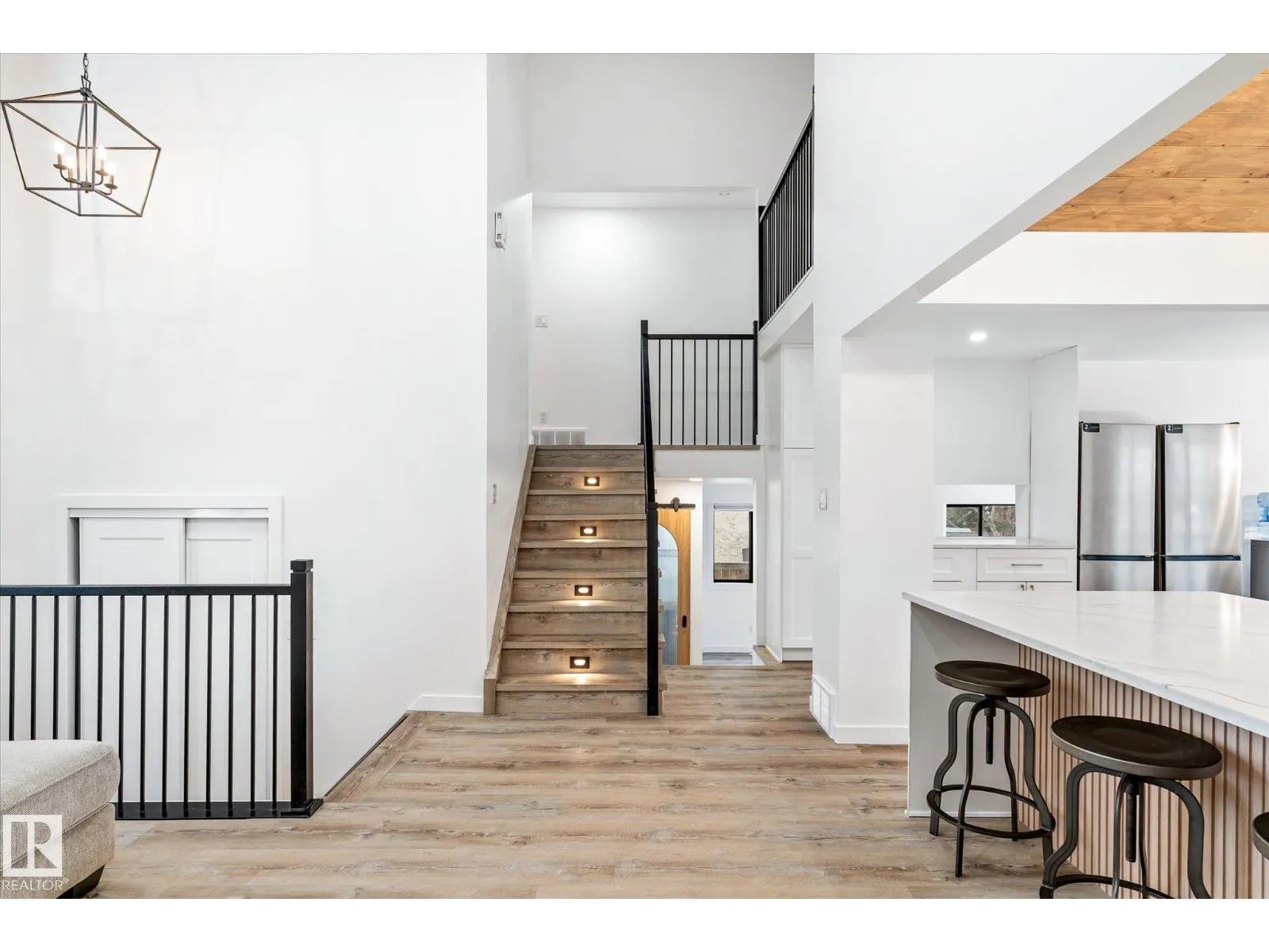 Welcome to the desired family community of St. Albert's Woodlands! Walking distance for children to schools, park & tennis courts! This gorgeous modern 5 BED, 3.5 BATH home has everything and more. The main floor has high vaulted ceilings, living space with large windows, vinyl plank flooring throughout, stunning kitchen that is a chefs dream, large quartz island, finishing off the main floor you have the dining area leading to your deck that overlooks your massive backyard. The lower level offers a family room perfect for your media, bedroom and 2 piece bath, the mudroom leads to your double attached heated garage and side entrance. The second level has 4 bedrooms, 4 piece bath and a loft perfect for children, completing the second floor you have the master suite that dreams are made of with walk-in closet, double sinks, complete with your own balcony! The lower level is complete with a bar, 3 piece bathroom and partial walk-out with access to your backyard. (id:27476)
