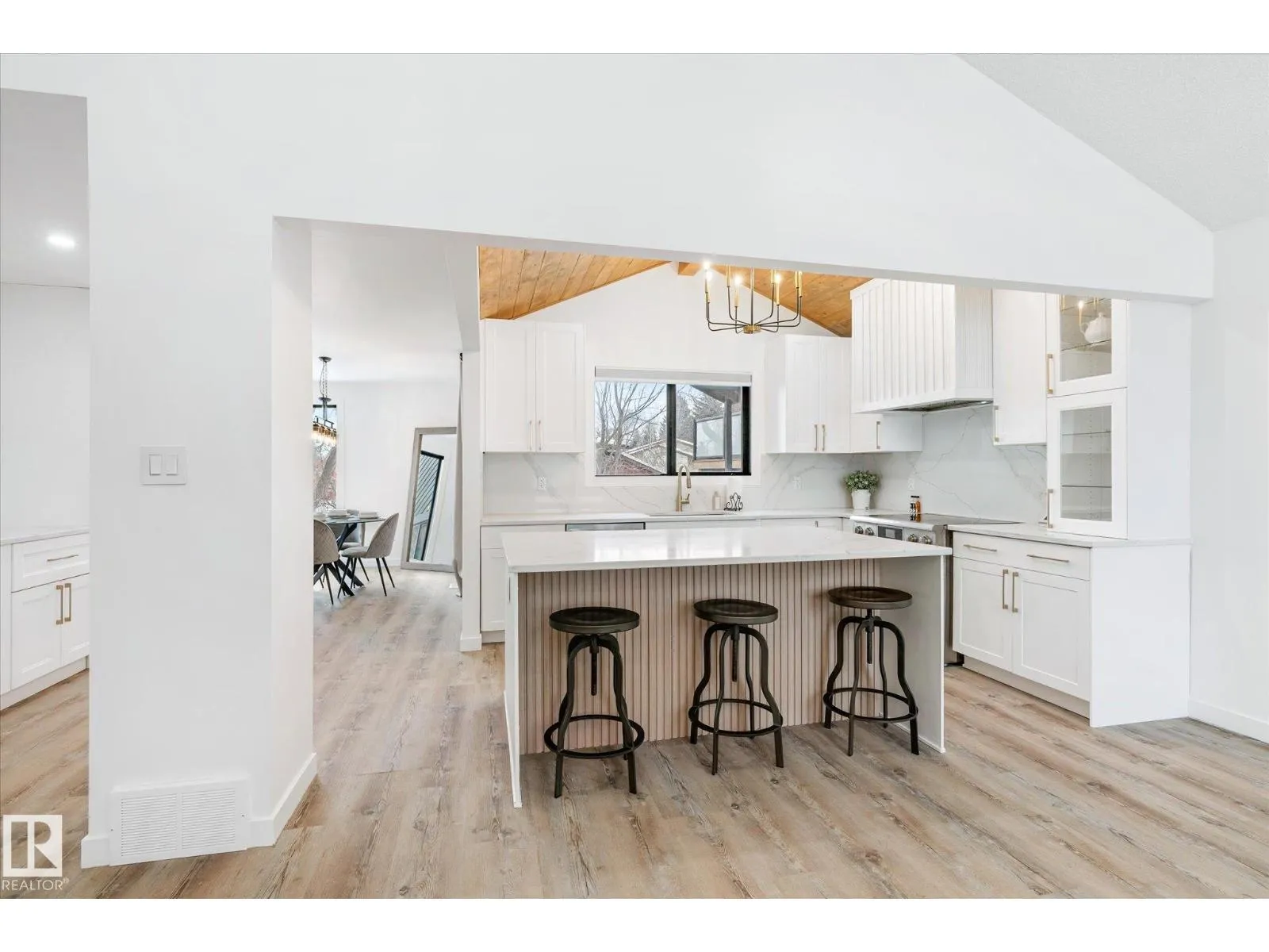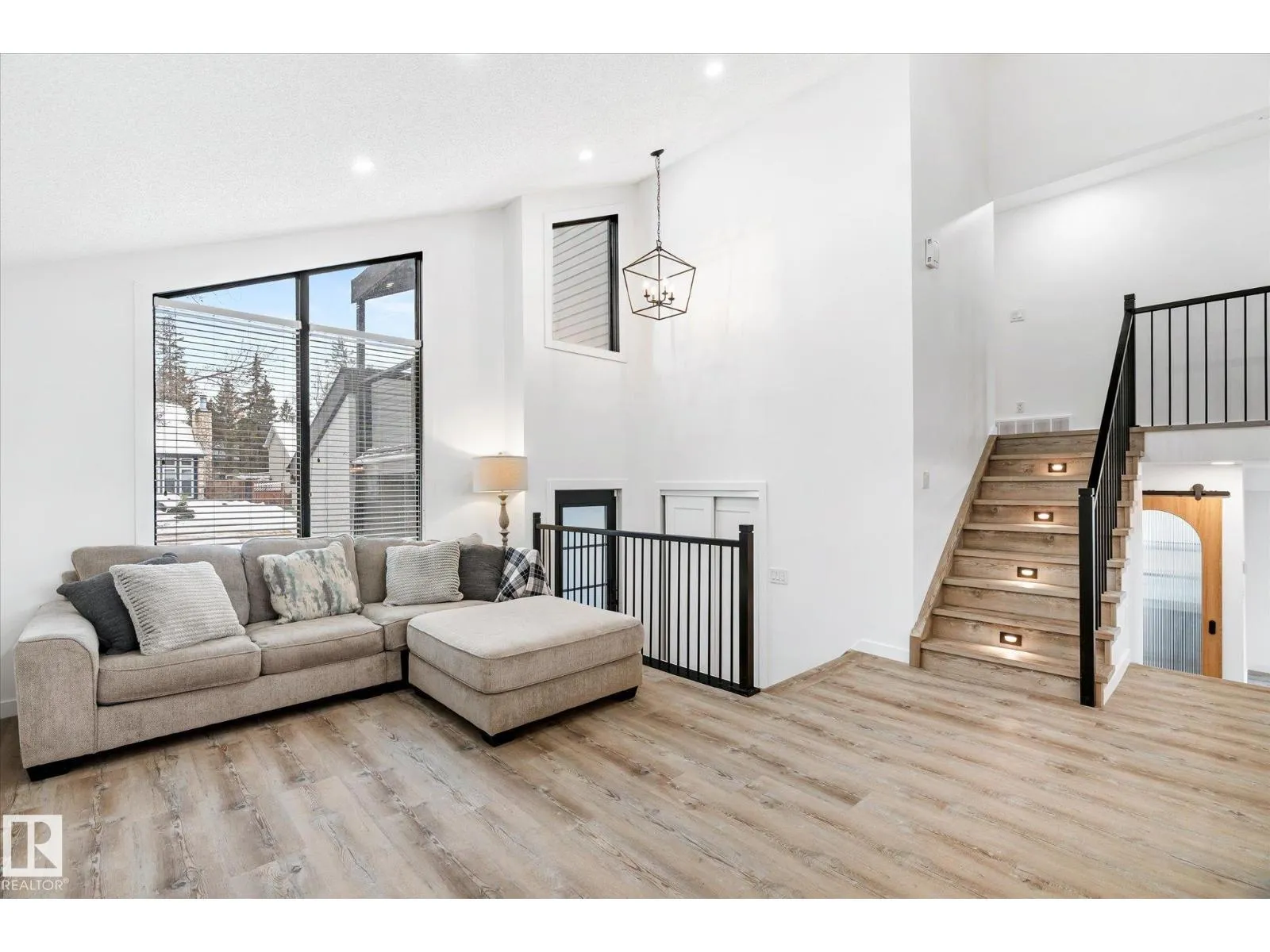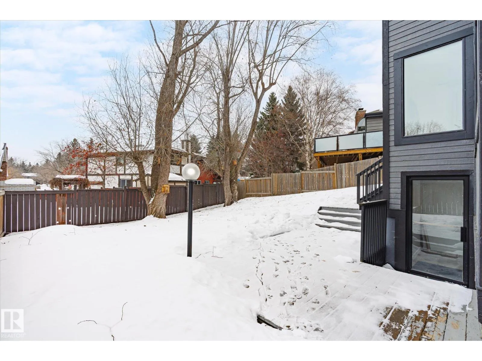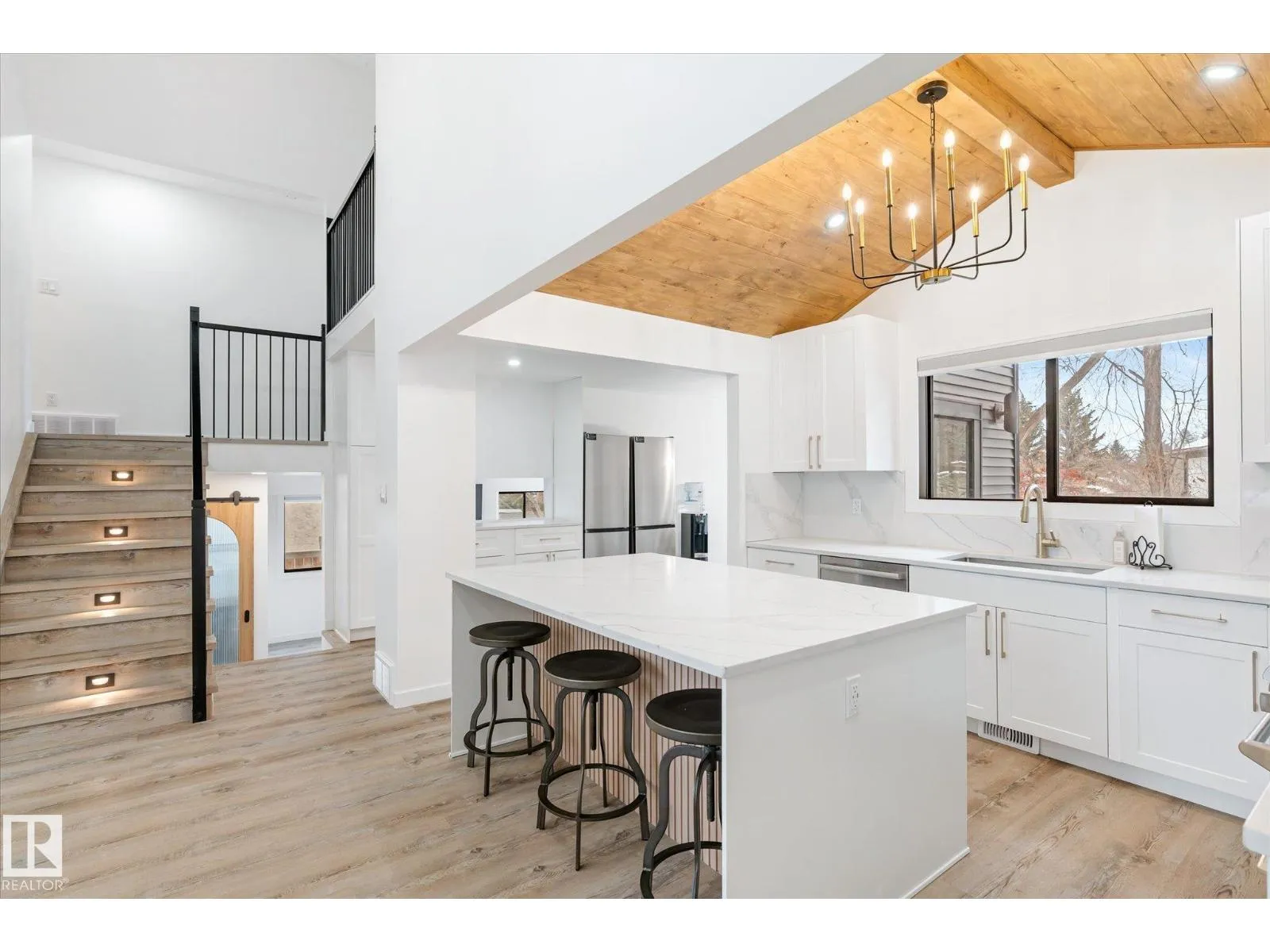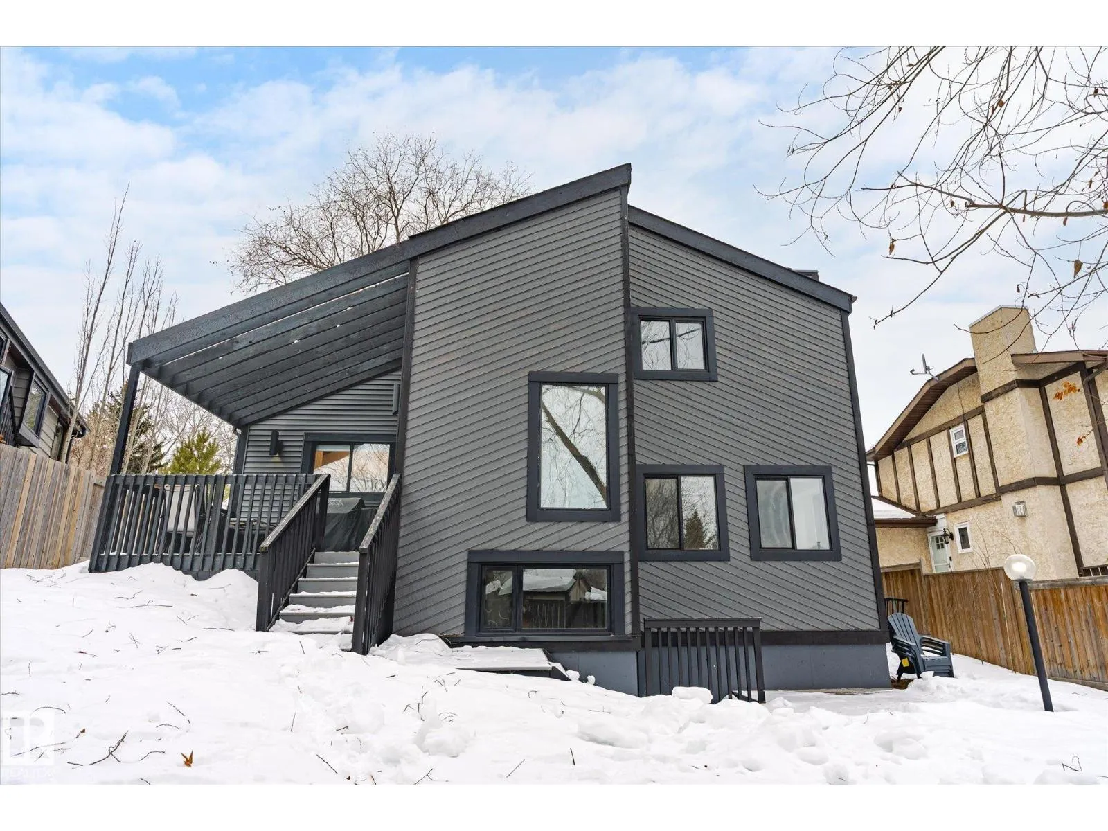 Welcome to the desired family community of St. Albert's Woodlands! Walking distance for children to schools, park & tennis courts! This gorgeous modern 5 BED, 3.5 BATH home has everything and more. The main floor has high vaulted ceilings, living space with large windows, vinyl plank flooring throughout, stunning kitchen that is a chefs dream, large quartz island, finishing off the main floor you have the dining area leading to your deck that overlooks your massive backyard. The lower level offers a family room perfect for your media, bedroom and 2 piece bath, the mudroom leads to your double attached heated garage and side entrance. The second level has 4 bedrooms, 4 piece bath and a loft perfect for children, completing the second floor you have the master suite that dreams are made of with walk-in closet, double sinks, complete with your own balcony! The lower level is complete with a bar, 3 piece bathroom and partial walk-out with access to your backyard. (id:27476)