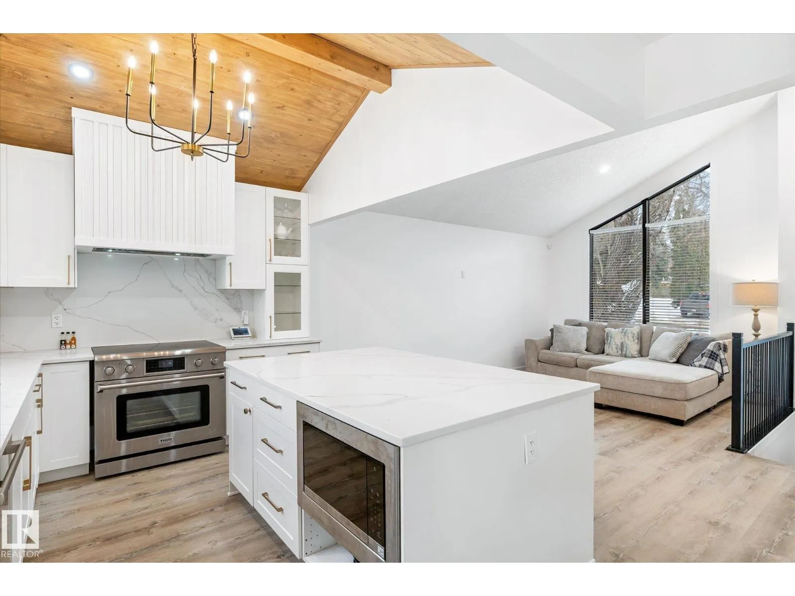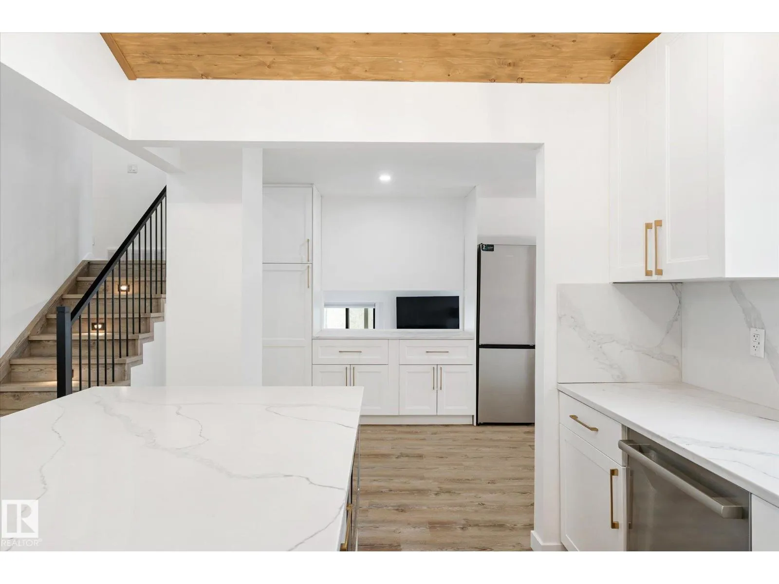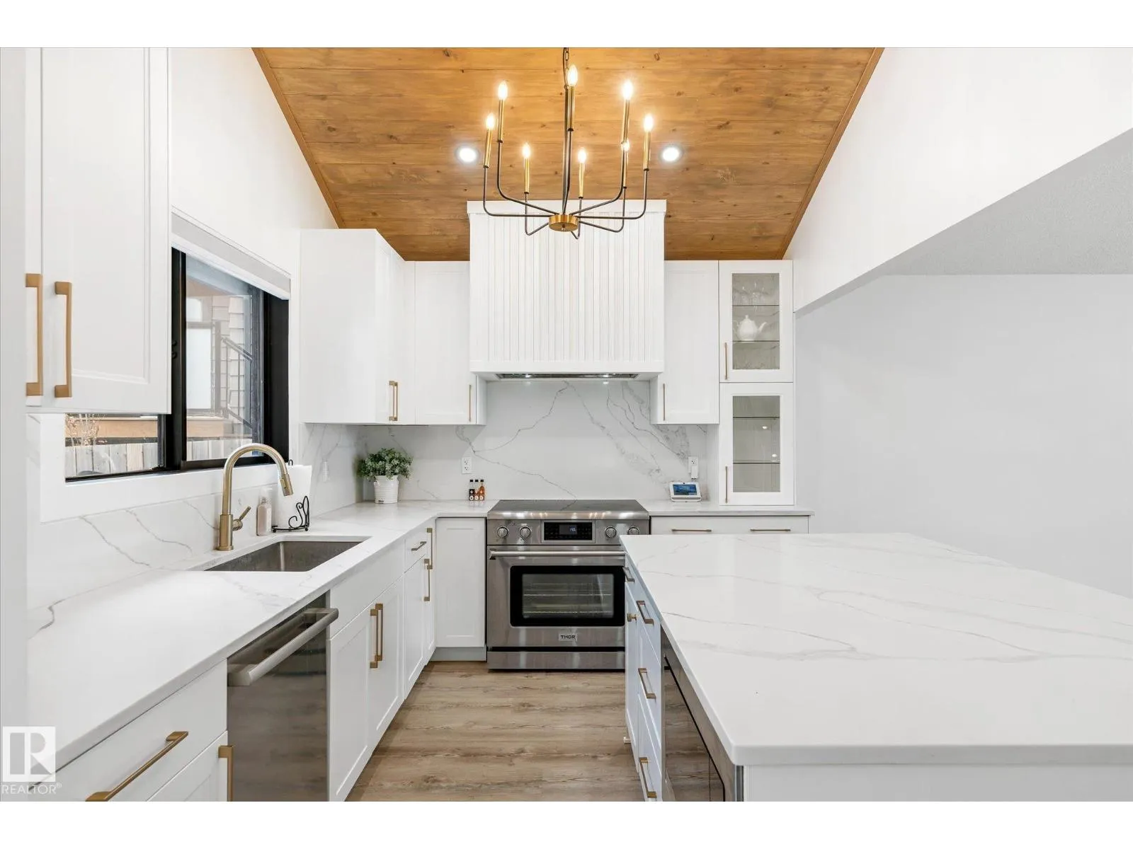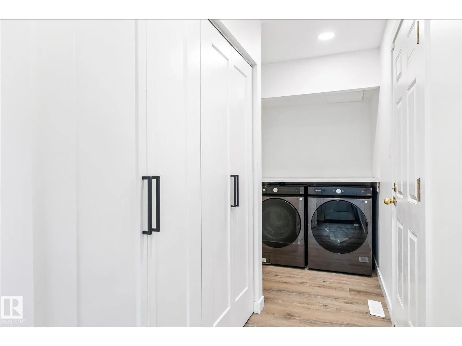 Welcome to the desired family community of St. Albert's Woodlands! Walking distance for children to schools, park & tennis courts! This gorgeous modern 5 BED, 3.5 BATH home has everything and more. The main floor has high vaulted ceilings, living space with large windows, vinyl plank flooring throughout, stunning kitchen that is a chefs dream, large quartz island, finishing off the main floor you have the dining area leading to your deck that overlooks your massive backyard. The lower level offers a family room perfect for your media, bedroom and 2 piece bath, the mudroom leads to your double attached heated garage and side entrance. The second level has 4 bedrooms, 4 piece bath and a loft perfect for children, completing the second floor you have the master suite that dreams are made of with walk-in closet, double sinks, complete with your own balcony! The lower level is complete with a bar, 3 piece bathroom and partial walk-out with access to your backyard. (id:27476)